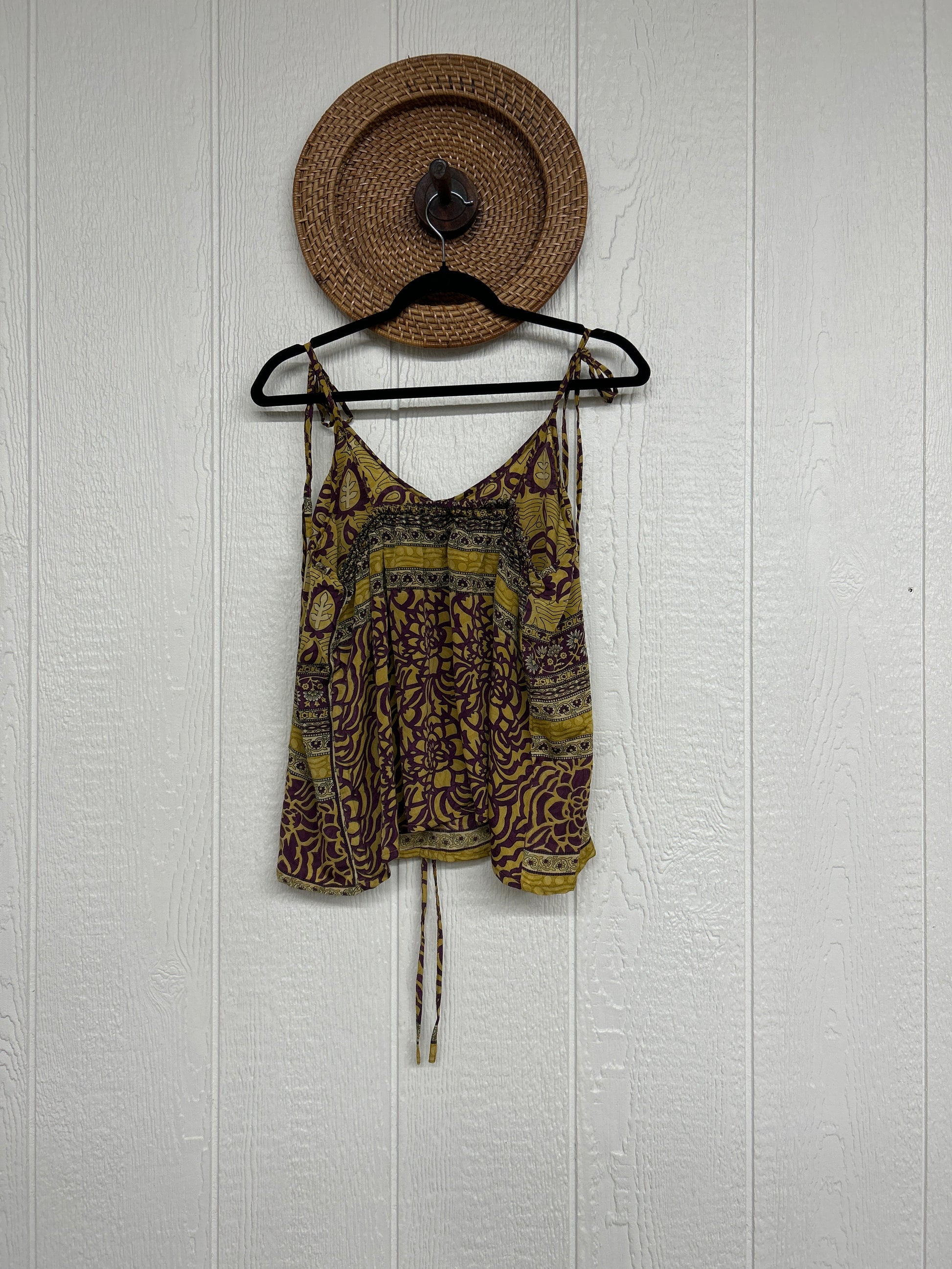 Our Rasgulla Butterfly Tank Top Features adjustable tie straps and a cinch front tie in the front which makes the top customizable for any of your favorite bottoms. Crafted from our ultra lux rasgulla silk this dreamy top is bound to be your new vibey go to! The back also features stretchy elastic for added comfort.