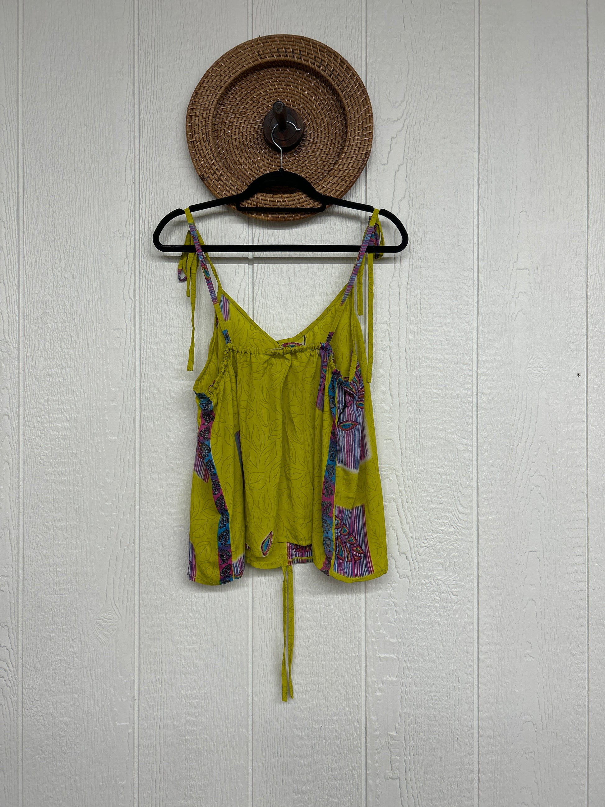 Our Rasgulla Butterfly Tank Top Features adjustable tie straps and a cinch front tie in the front which makes the top customizable for any of your favorite bottoms. Crafted from our ultra lux rasgulla silk this dreamy top is bound to be your new vibey go to! The back also features stretchy elastic for added comfort.