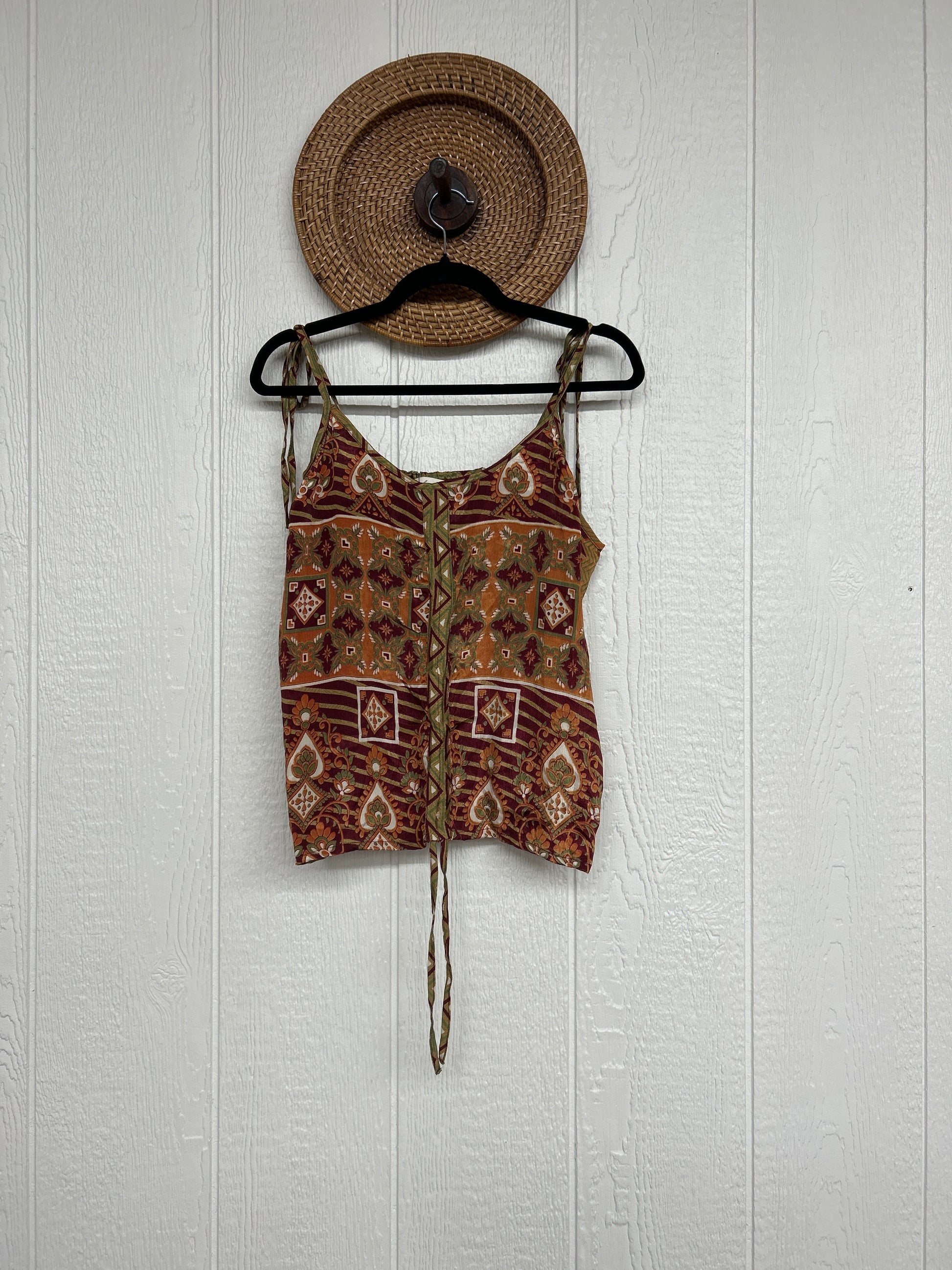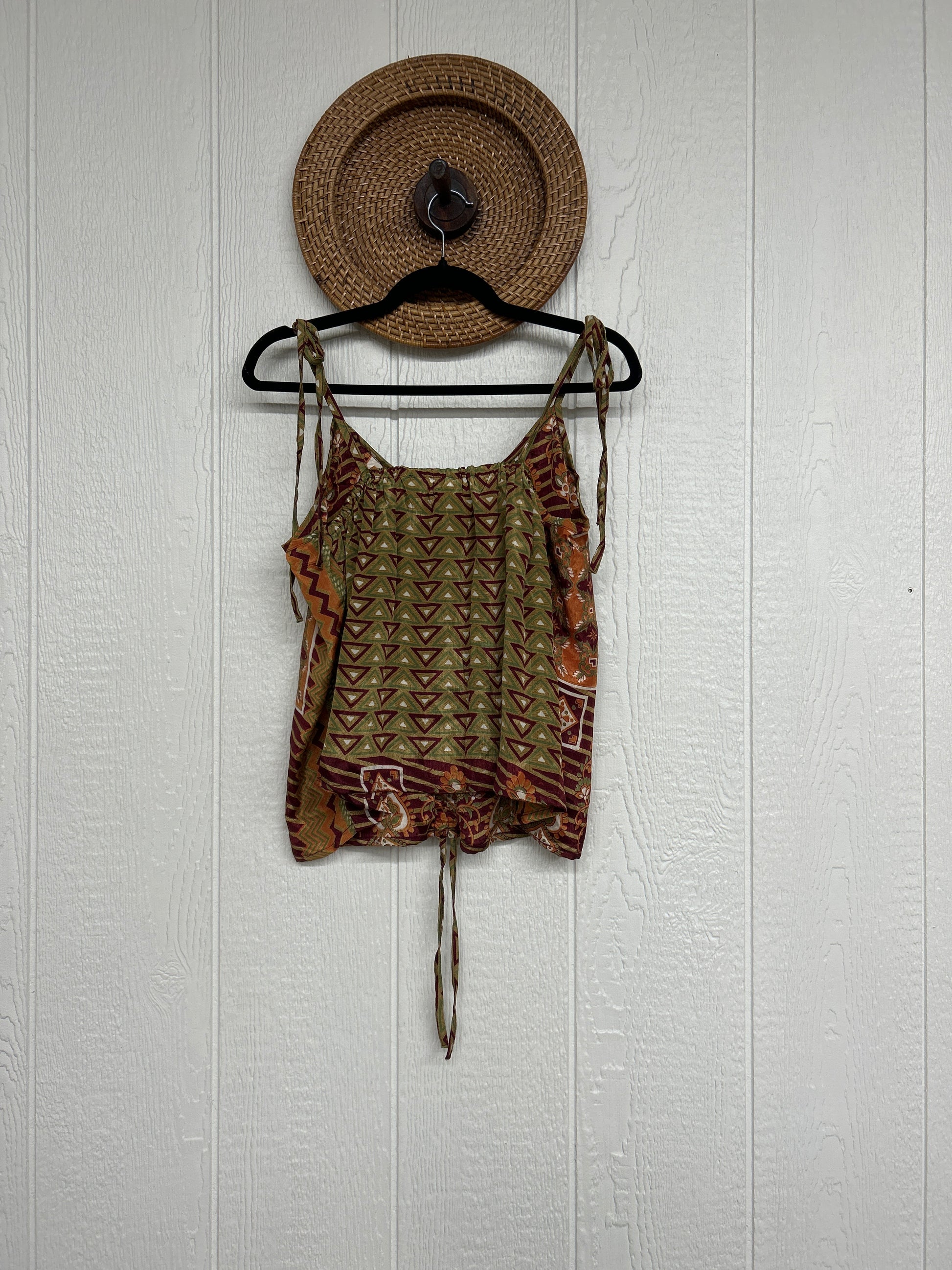 Our Rasgulla Butterfly Tank Top Features adjustable tie straps and a cinch front tie in the front which makes the top customizable for any of your favorite bottoms. Crafted from our ultra lux rasgulla silk this dreamy top is bound to be your new vibey go to! The back also features stretchy elastic for added comfort.