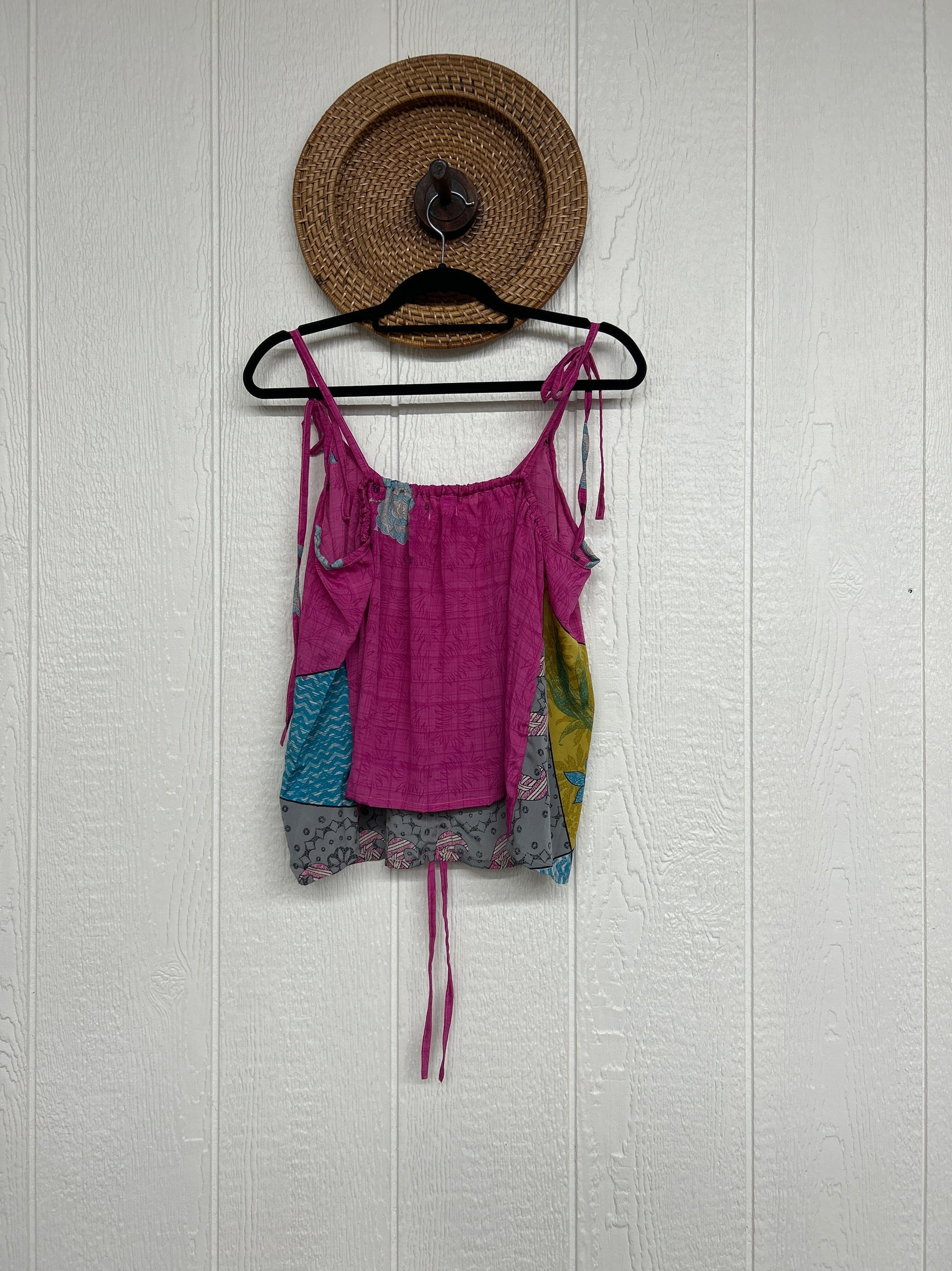 Our Rasgulla Butterfly Tank Top Features adjustable tie straps and a cinch front tie in the front which makes the top customizable for any of your favorite bottoms. Crafted from our ultra lux rasgulla silk this dreamy top is bound to be your new vibey go to! The back also features stretchy elastic for added comfort.