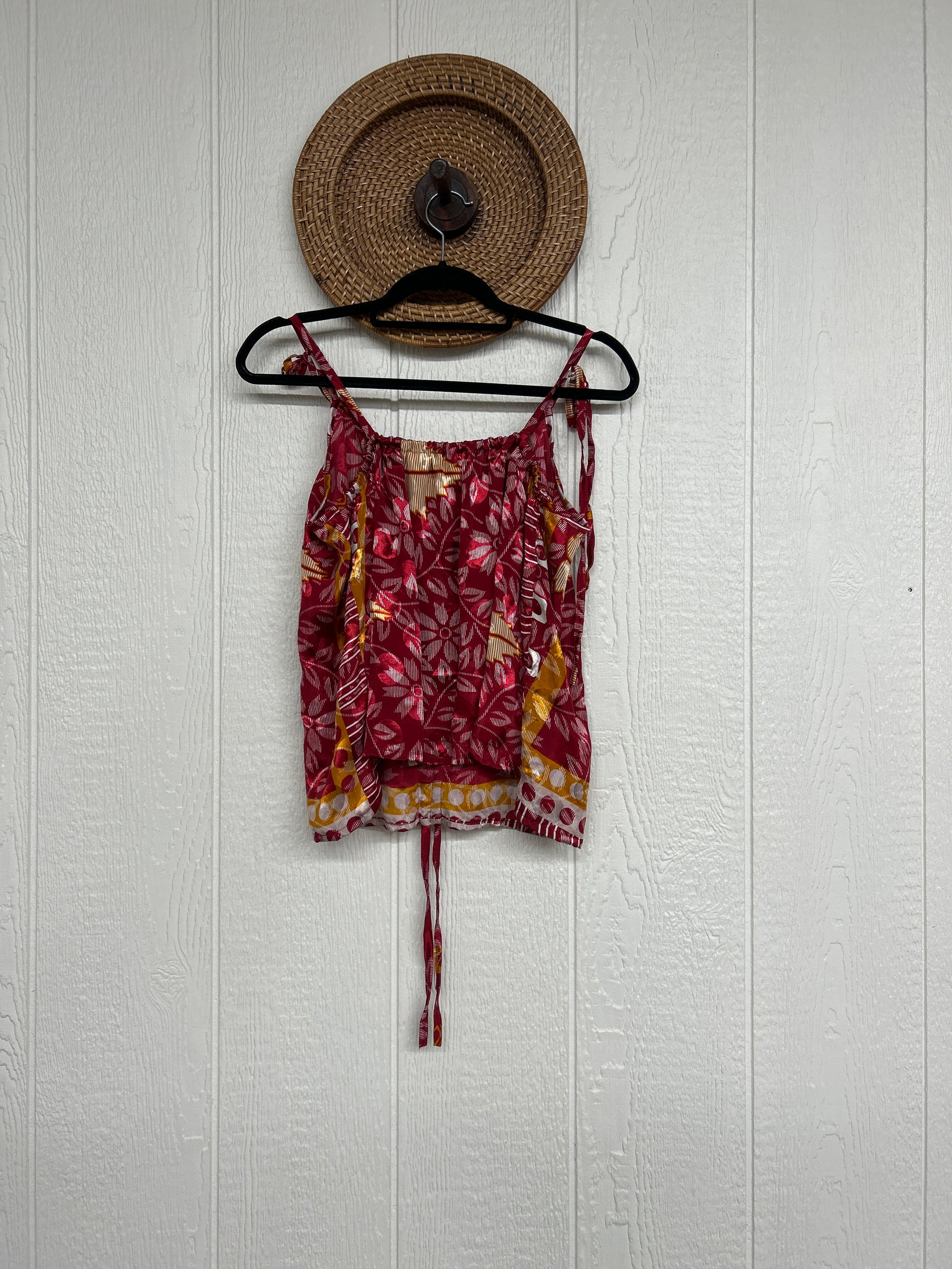 Our Rasgulla Butterfly Tank Top Features adjustable tie straps and a cinch front tie in the front which makes the top customizable for any of your favorite bottoms. Crafted from our ultra lux rasgulla silk this dreamy top is bound to be your new vibey go to! The back also features stretchy elastic for added comfort.