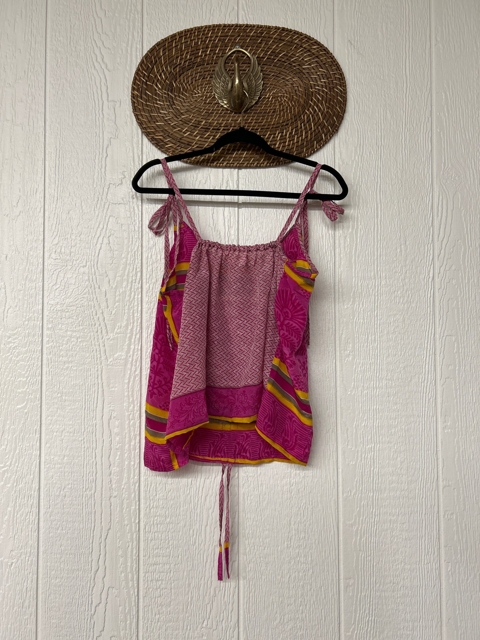 Our Rasgulla Butterfly Tank Top Features adjustable tie straps and a cinch front tie in the front which makes the top customizable for any of your favorite bottoms. Crafted from our ultra lux rasgulla silk this dreamy top is bound to be your new vibey go to! The back also features stretchy elastic for added comfort.