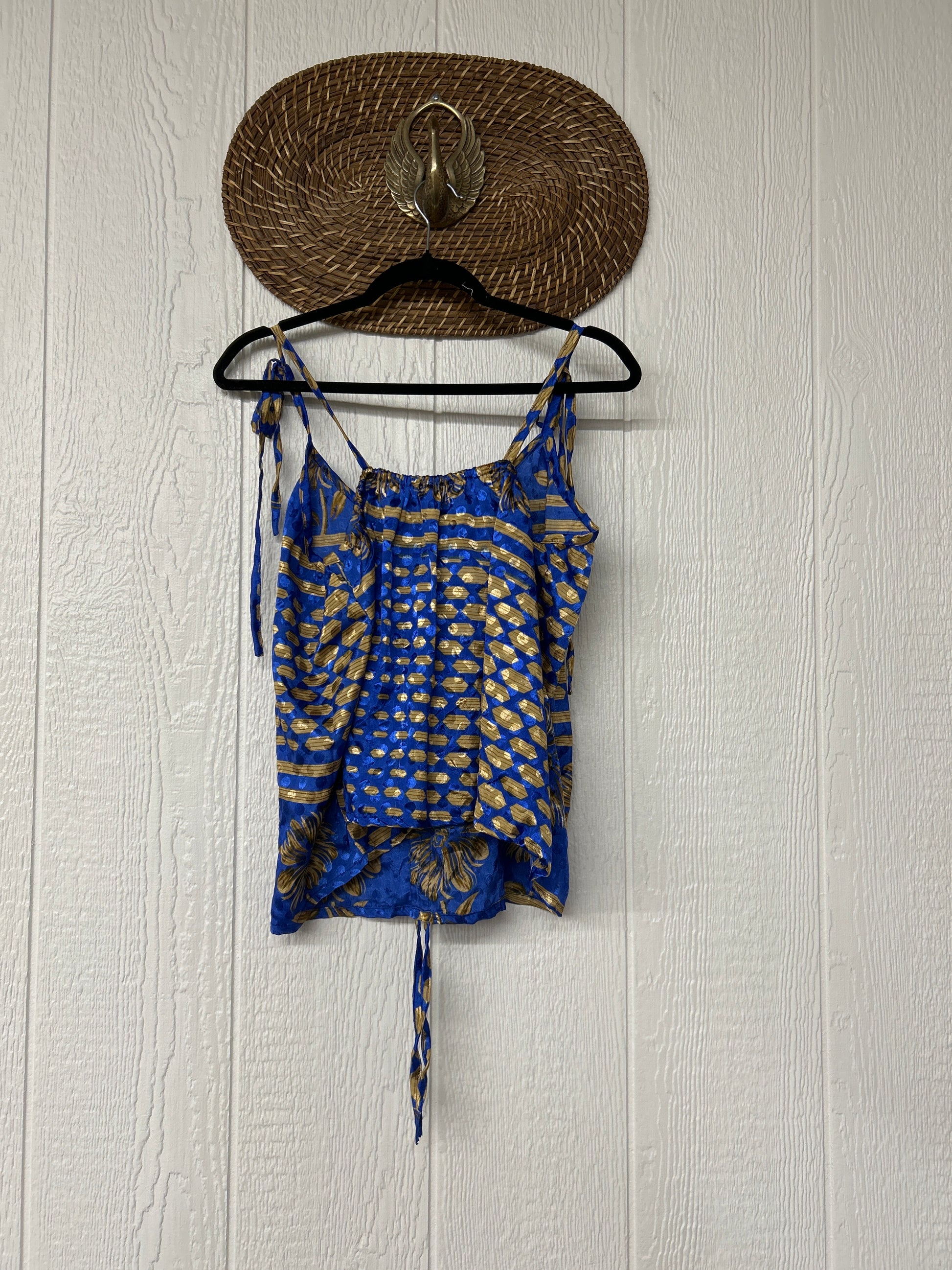 Our Rasgulla Butterfly Tank Top Features adjustable tie straps and a cinch front tie in the front which makes the top customizable for any of your favorite bottoms. Crafted from our ultra lux rasgulla silk this dreamy top is bound to be your new vibey go to! The back also features stretchy elastic for added comfort.