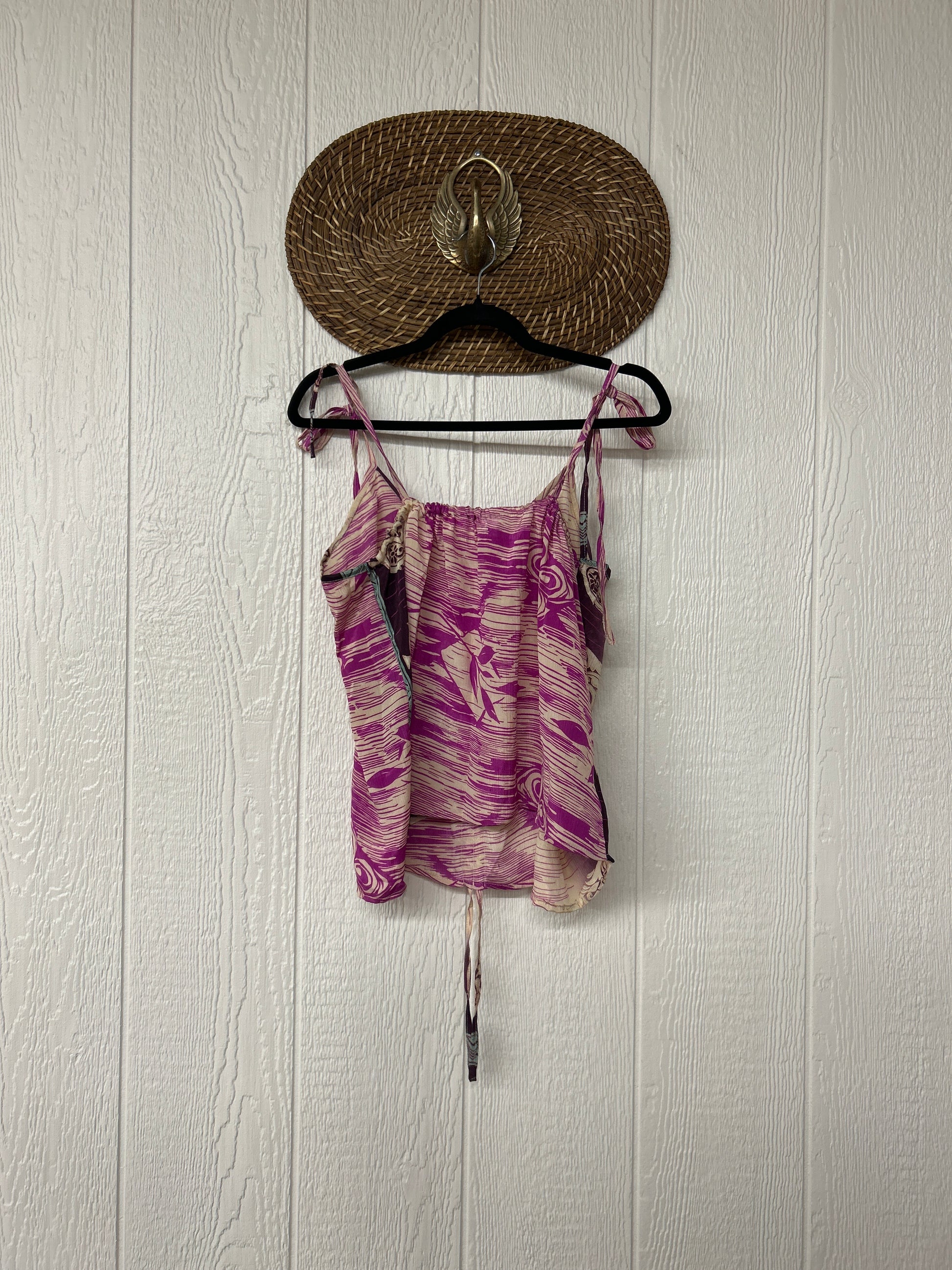 Our Rasgulla Butterfly Tank Top Features adjustable tie straps and a cinch front tie in the front which makes the top customizable for any of your favorite bottoms. Crafted from our ultra lux rasgulla silk this dreamy top is bound to be your new vibey go to! The back also features stretchy elastic for added comfort.