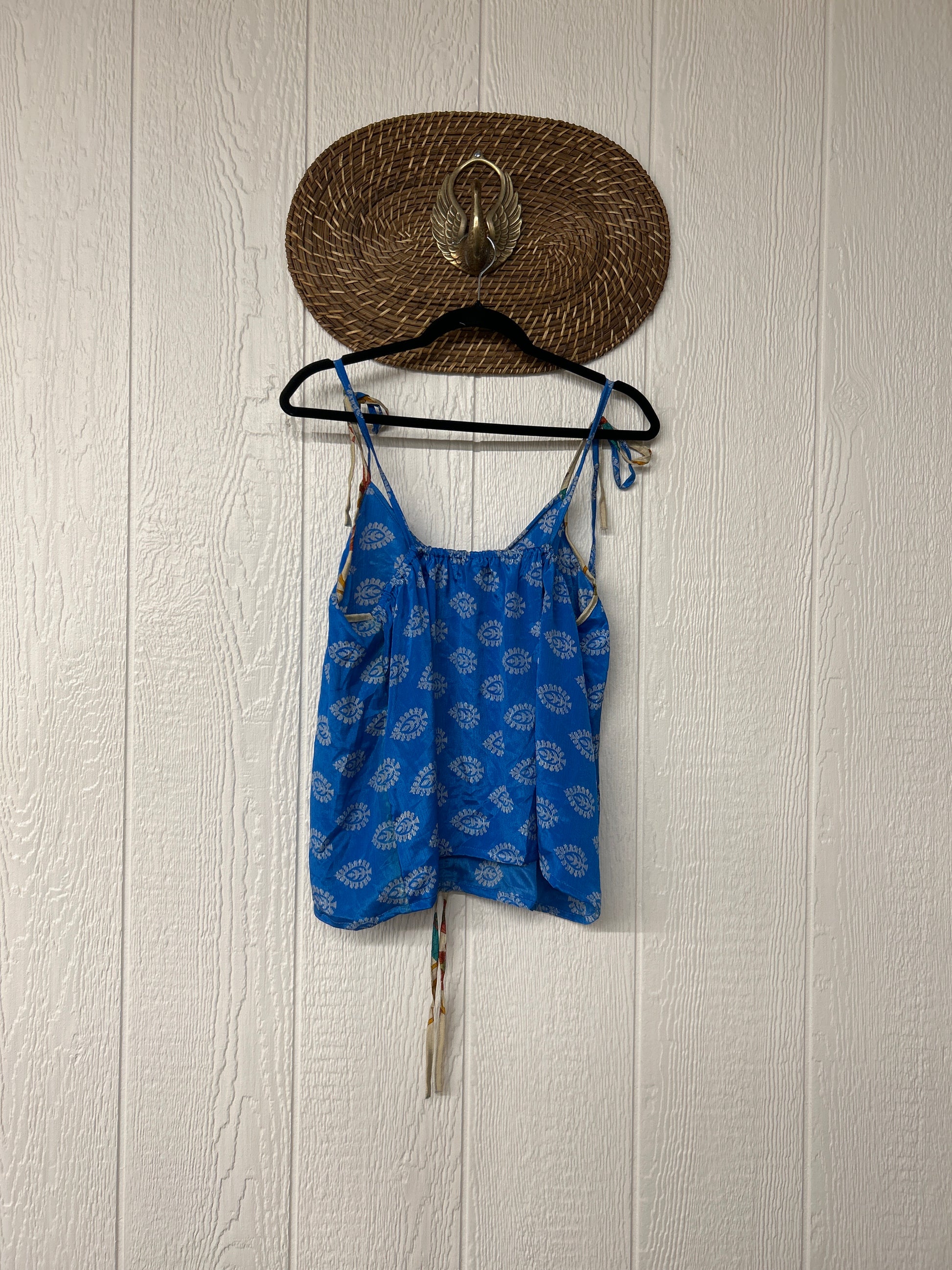 Our Rasgulla Butterfly Tank Top Features adjustable tie straps and a cinch front tie in the front which makes the top customizable for any of your favorite bottoms. Crafted from our ultra lux rasgulla silk this dreamy top is bound to be your new vibey go to! The back also features stretchy elastic for added comfort.