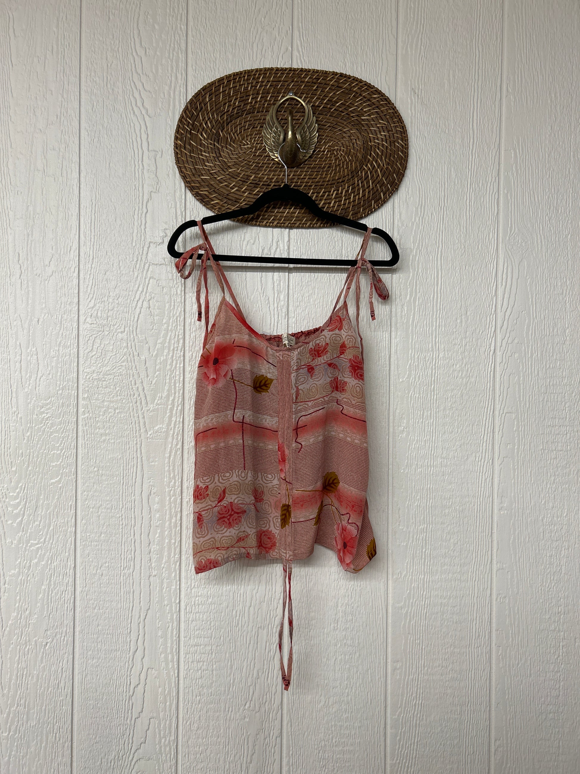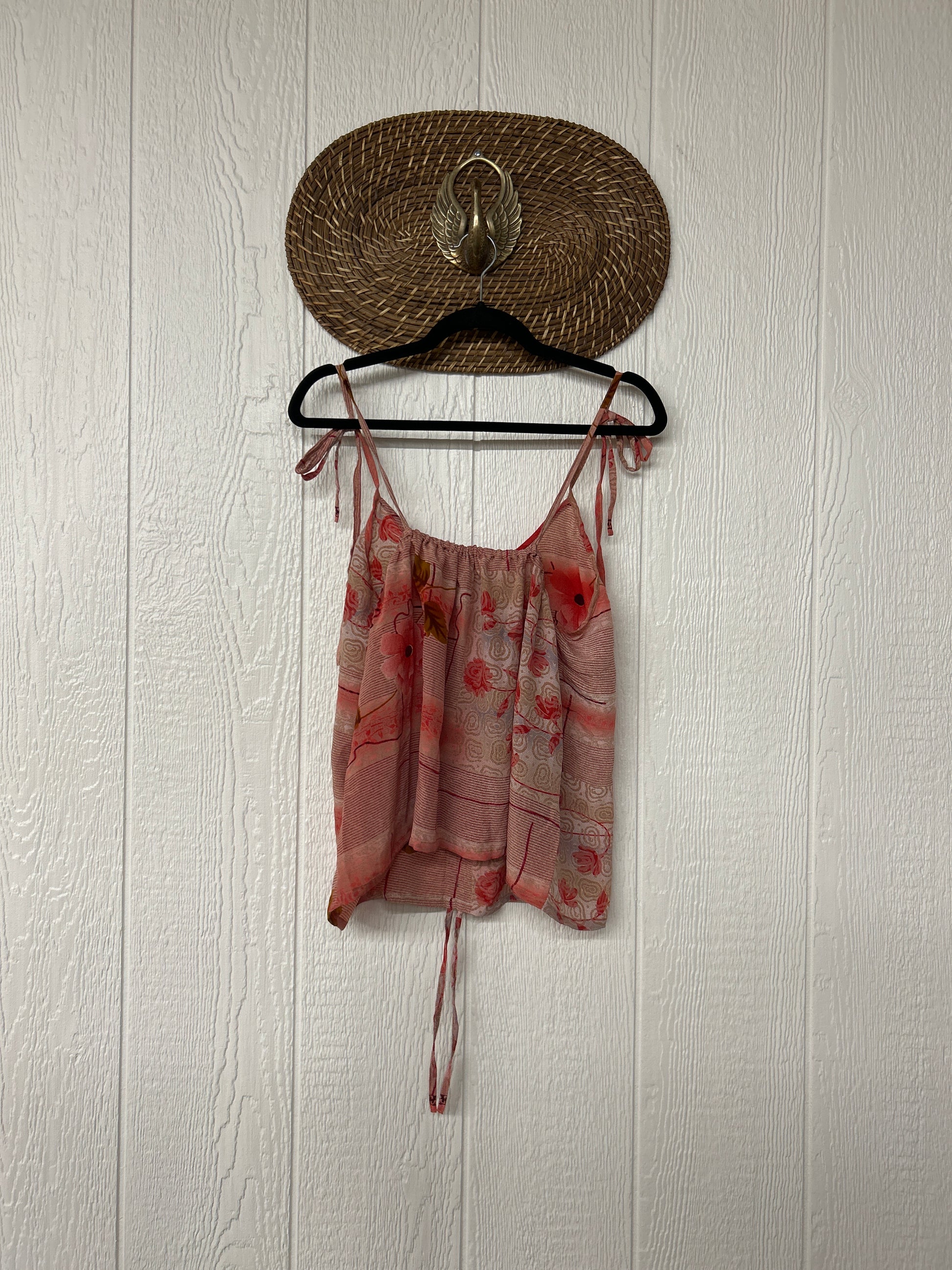 Our Rasgulla Butterfly Tank Top Features adjustable tie straps and a cinch front tie in the front which makes the top customizable for any of your favorite bottoms. Crafted from our ultra lux rasgulla silk this dreamy top is bound to be your new vibey go to! The back also features stretchy elastic for added comfort.
