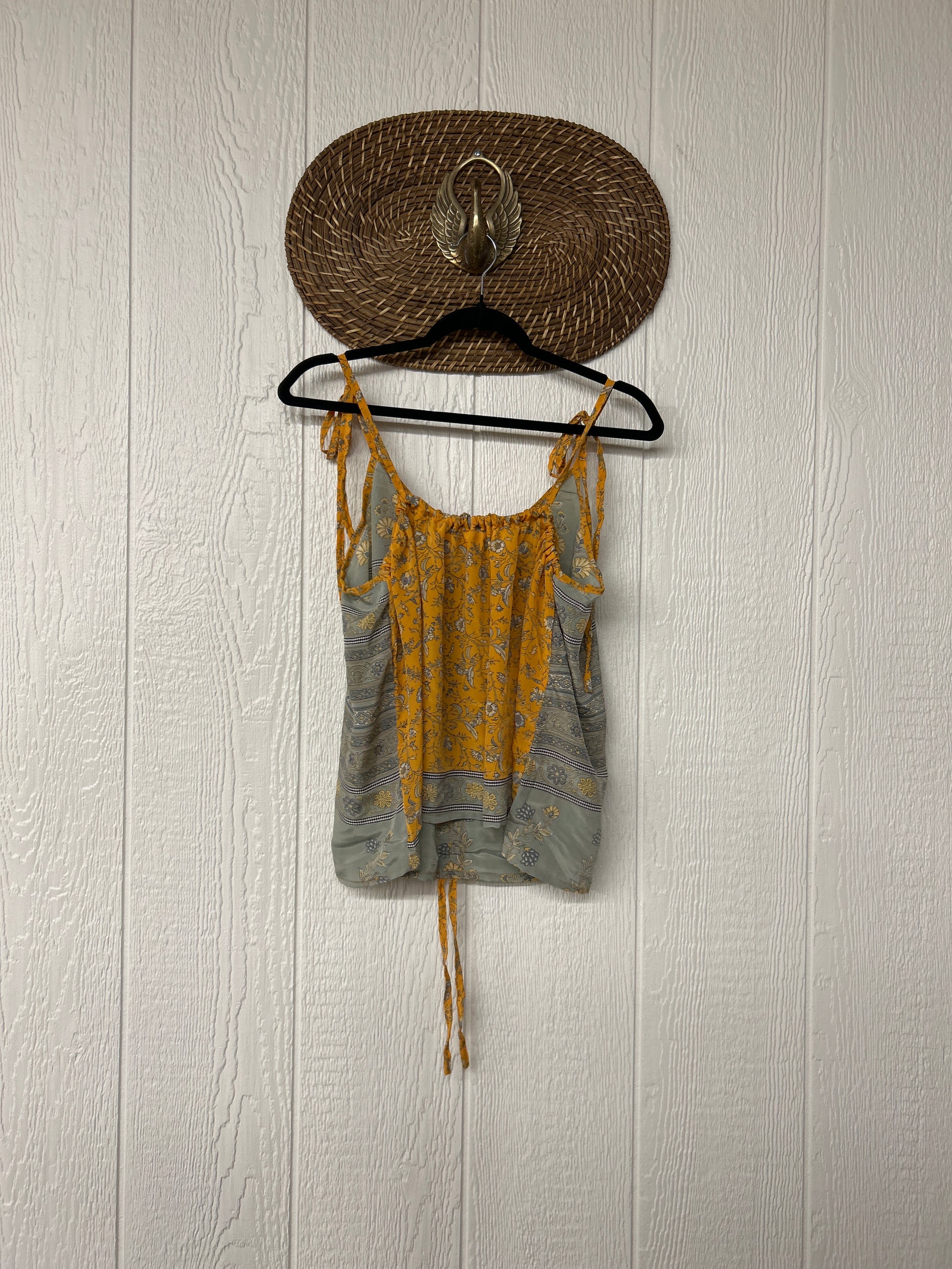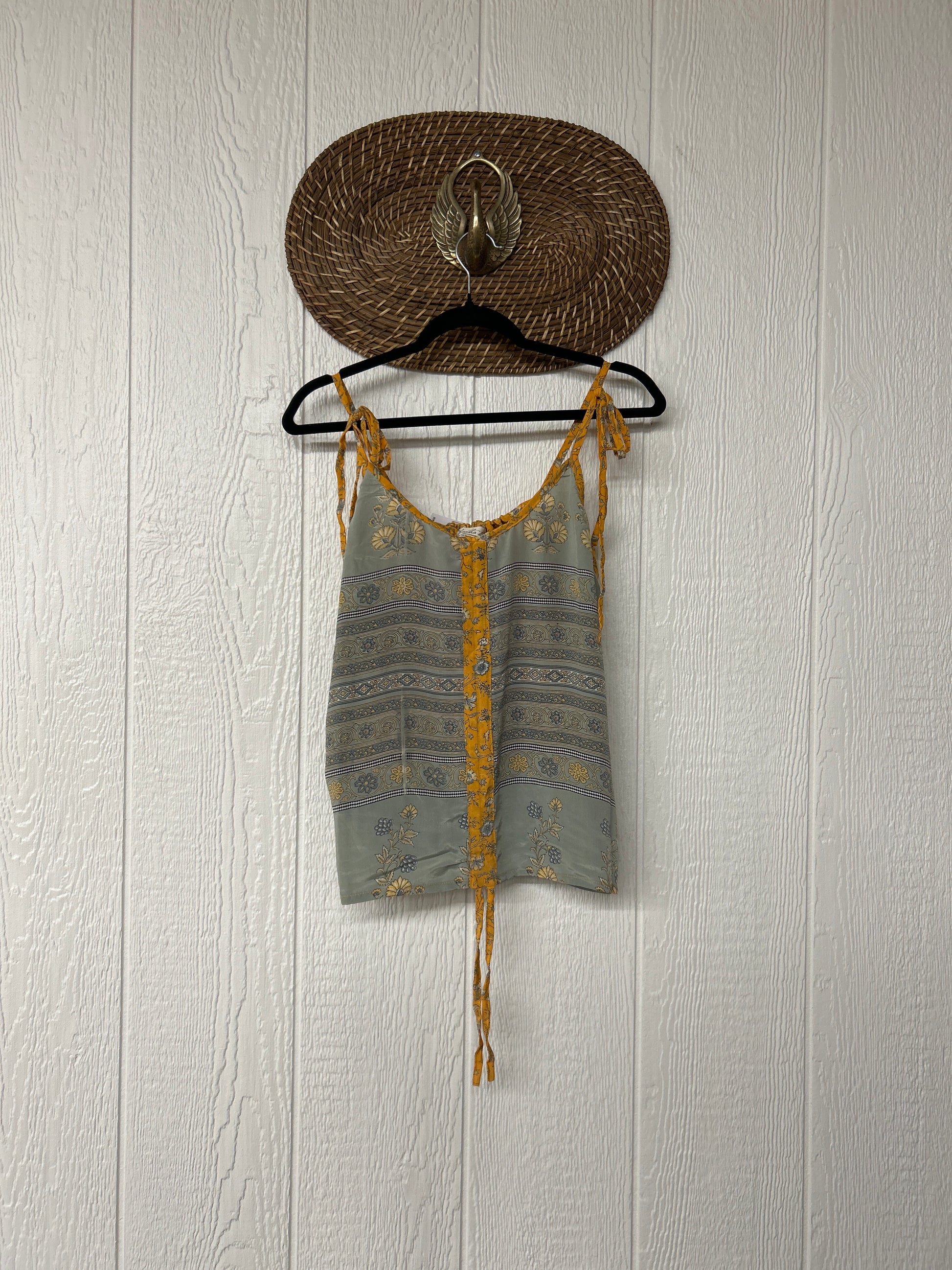 Our Rasgulla Butterfly Tank Top Features adjustable tie straps and a cinch front tie in the front which makes the top customizable for any of your favorite bottoms. Crafted from our ultra lux rasgulla silk this dreamy top is bound to be your new vibey go to! The back also features stretchy elastic for added comfort.