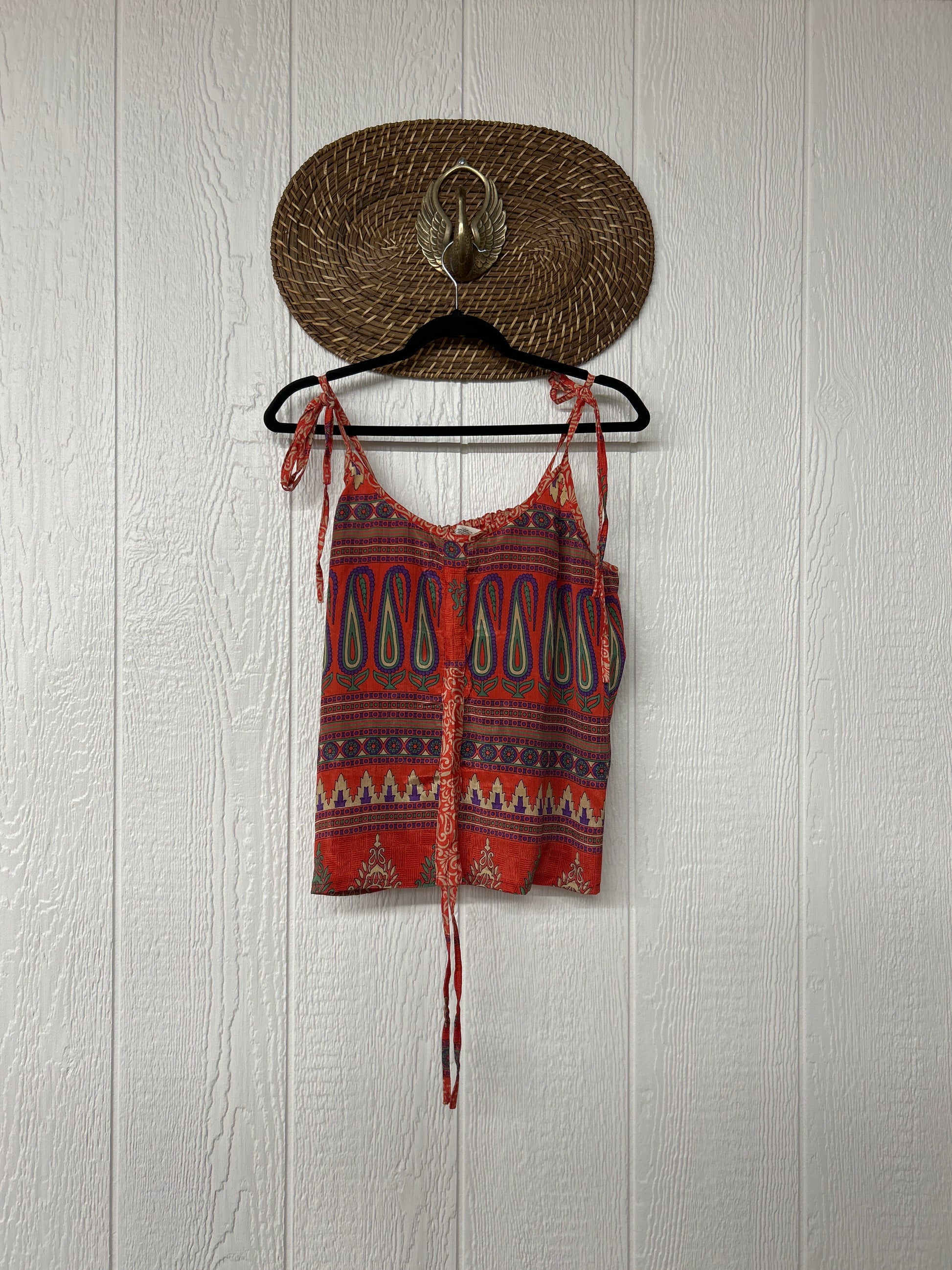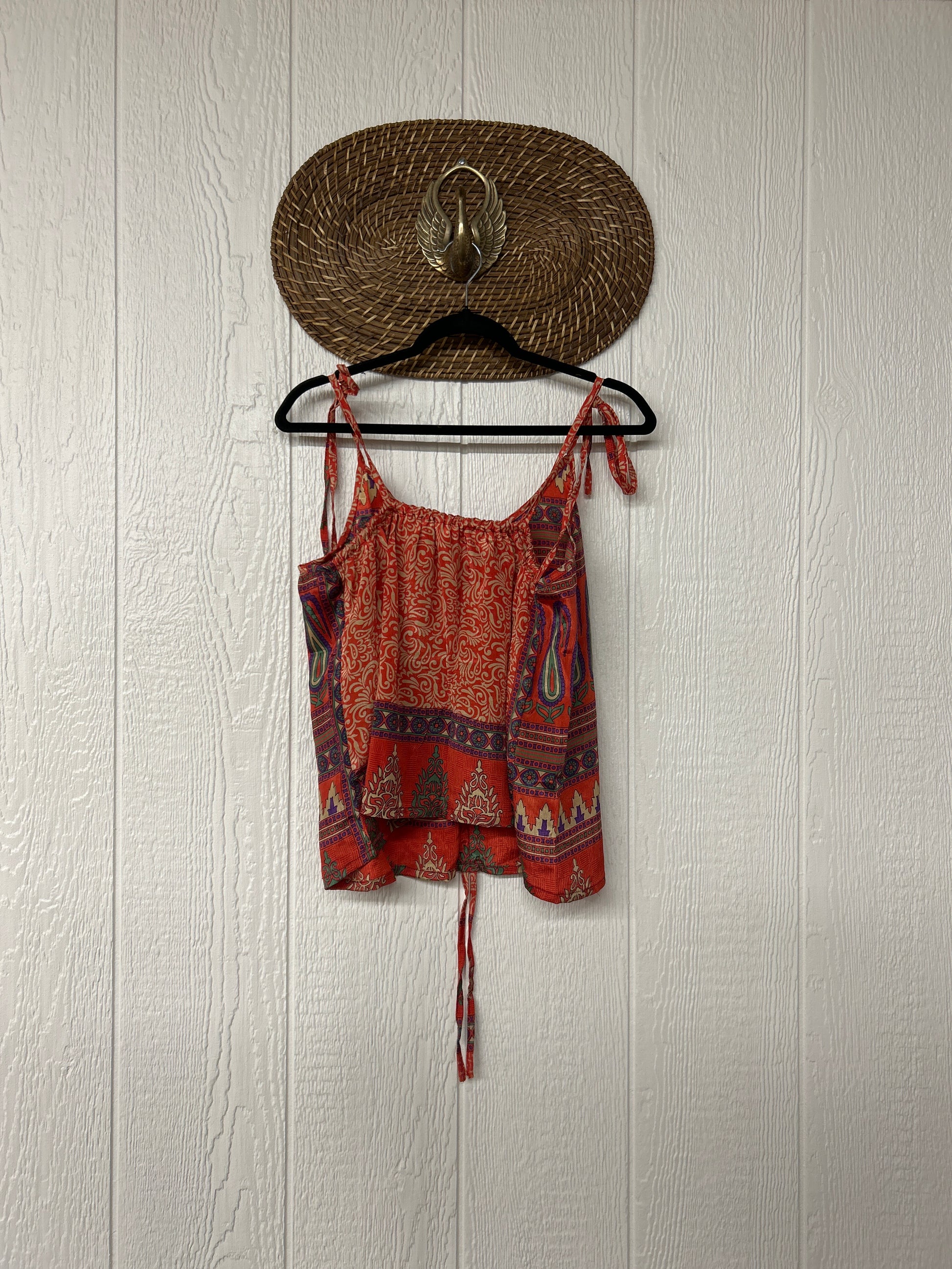 Our Rasgulla Butterfly Tank Top Features adjustable tie straps and a cinch front tie in the front which makes the top customizable for any of your favorite bottoms. Crafted from our ultra lux rasgulla silk this dreamy top is bound to be your new vibey go to! The back also features stretchy elastic for added comfort.
