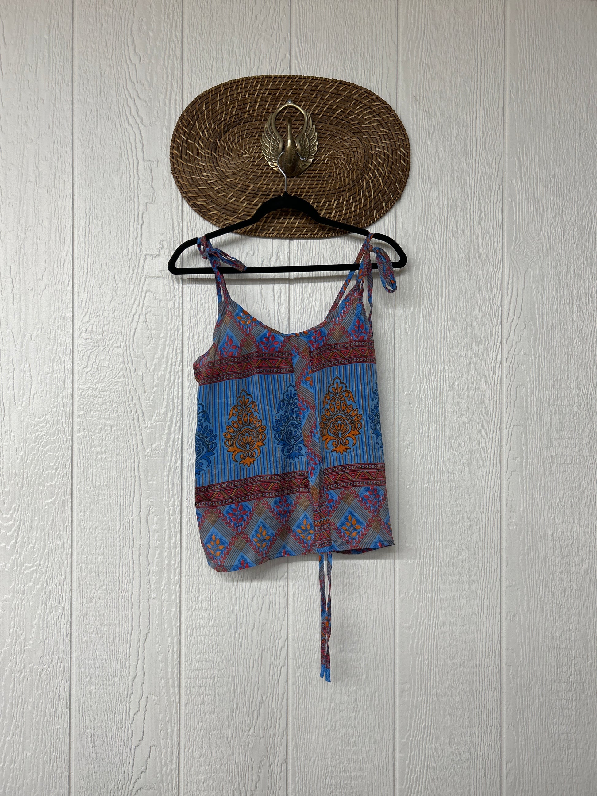Our Rasgulla Butterfly Tank Top Features adjustable tie straps and a cinch front tie in the front which makes the top customizable for any of your favorite bottoms. Crafted from our ultra lux rasgulla silk this dreamy top is bound to be your new vibey go to! The back also features stretchy elastic for added comfort.