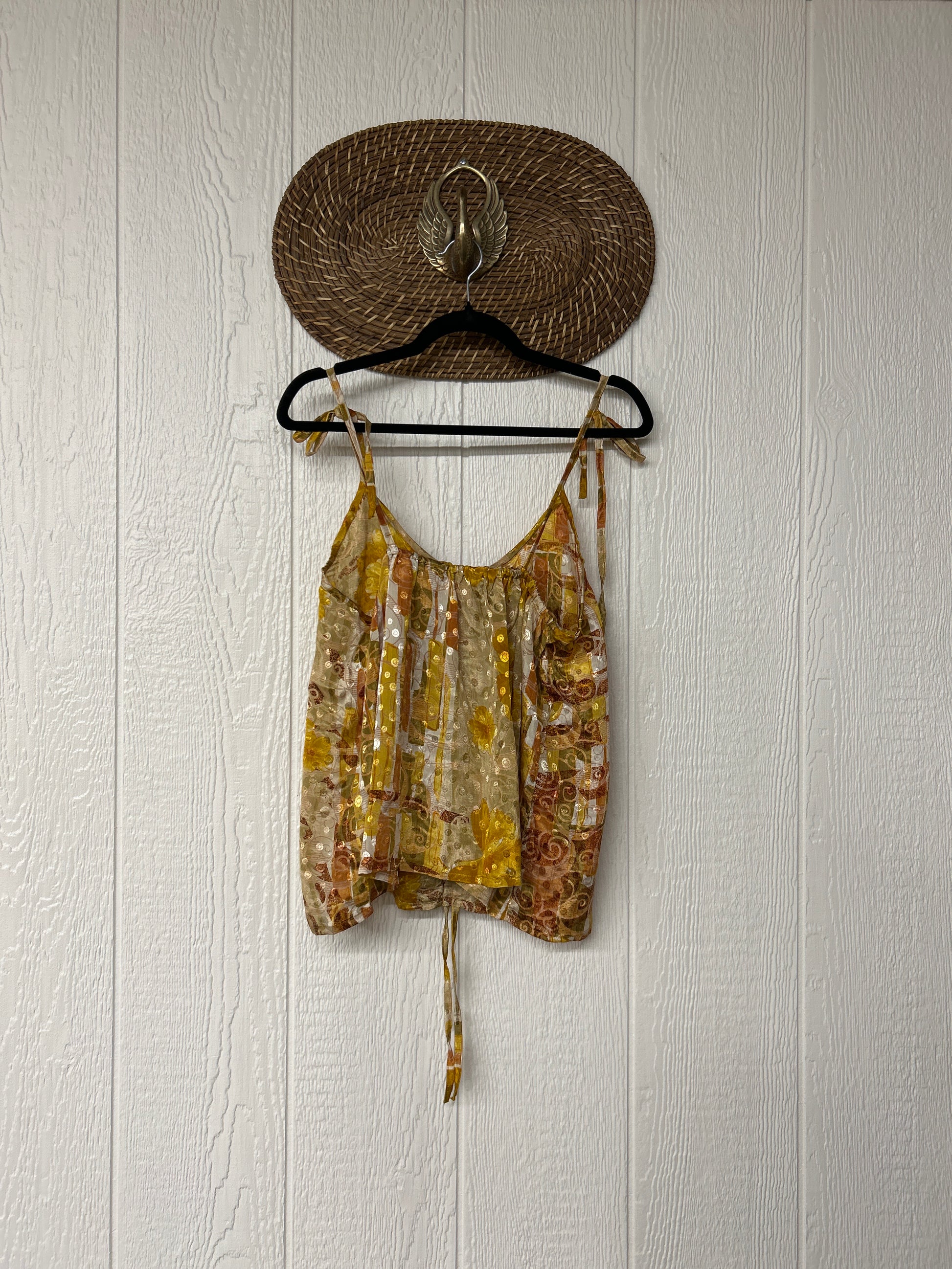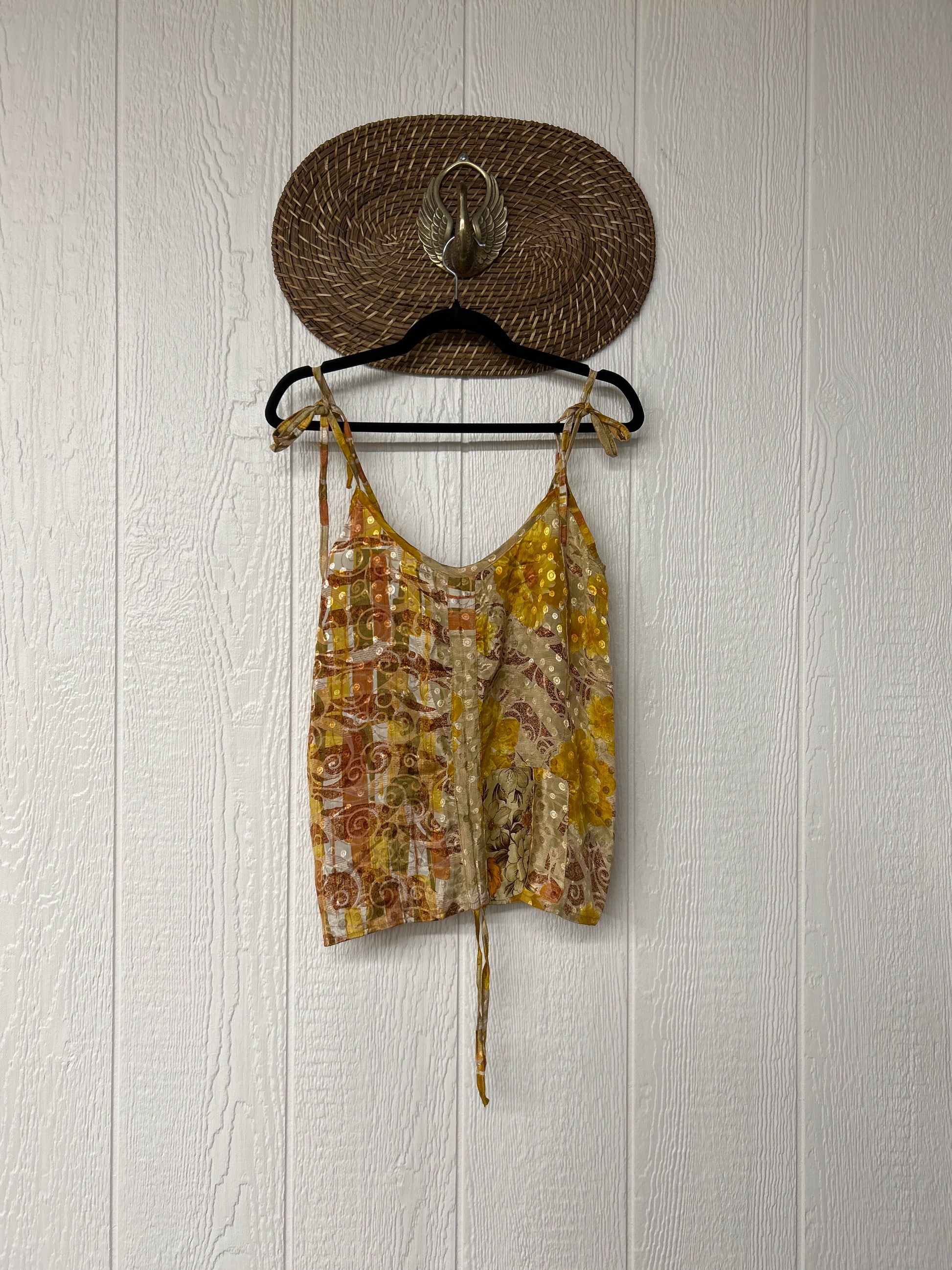 Our Rasgulla Butterfly Tank Top Features adjustable tie straps and a cinch front tie in the front which makes the top customizable for any of your favorite bottoms. Crafted from our ultra lux rasgulla silk this dreamy top is bound to be your new vibey go to! The back also features stretchy elastic for added comfort.