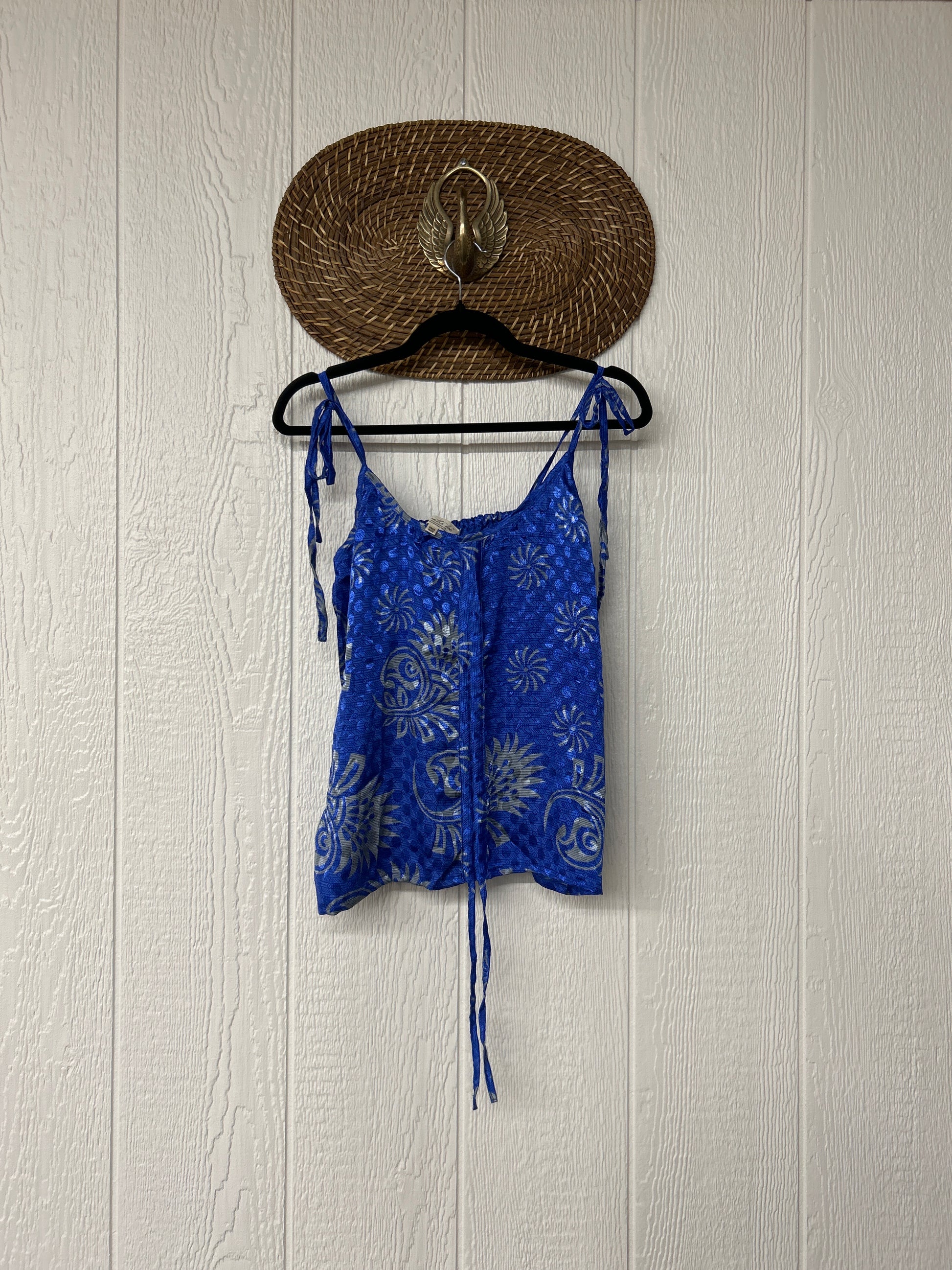 Our Rasgulla Butterfly Tank Top Features adjustable tie straps and a cinch front tie in the front which makes the top customizable for any of your favorite bottoms. Crafted from our ultra lux rasgulla silk this dreamy top is bound to be your new vibey go to! The back also features stretchy elastic for added comfort.