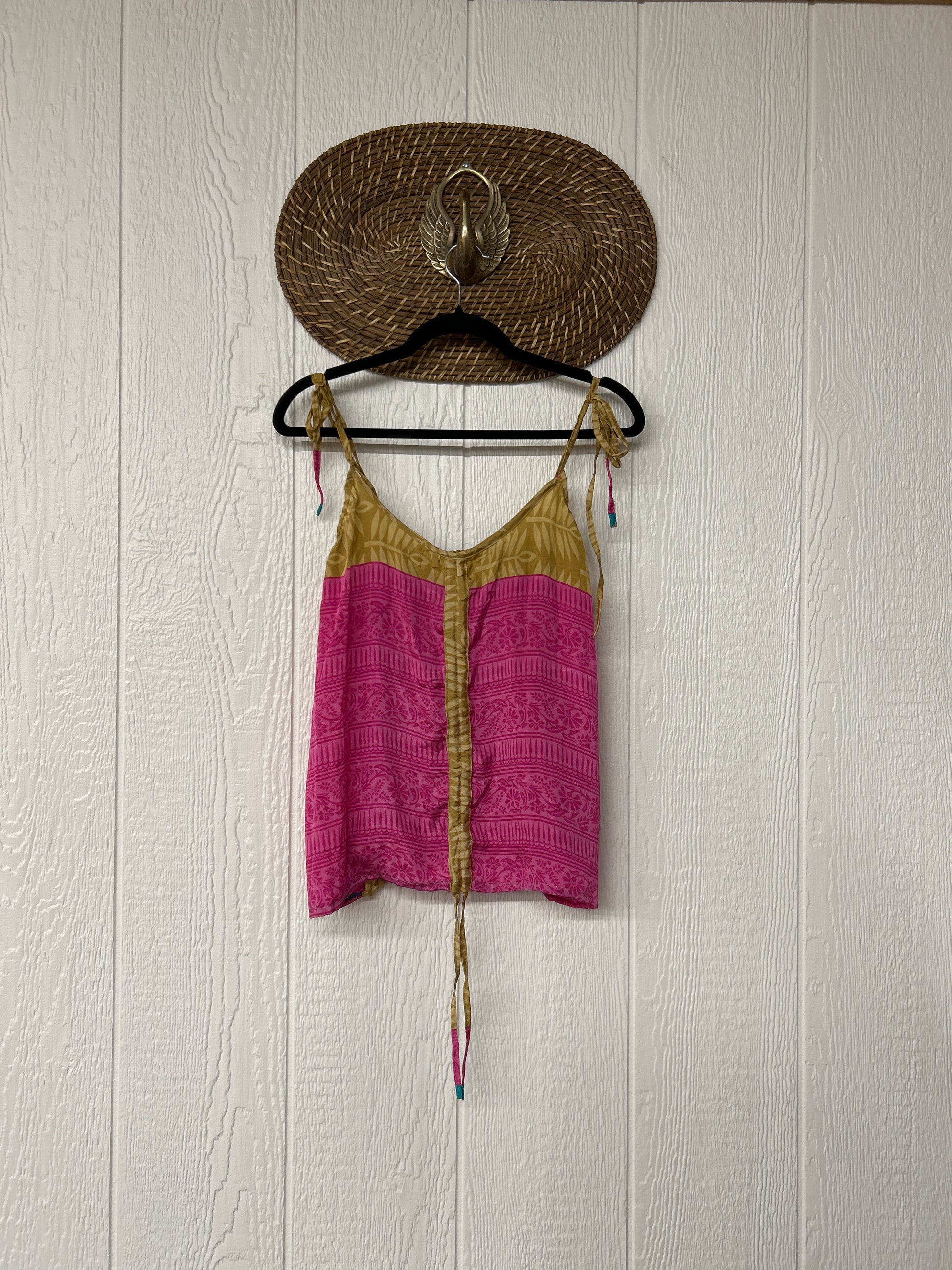 Our Rasgulla Butterfly Tank Top Features adjustable tie straps and a cinch front tie in the front which makes the top customizable for any of your favorite bottoms. Crafted from our ultra lux rasgulla silk this dreamy top is bound to be your new vibey go to! The back also features stretchy elastic for added comfort.