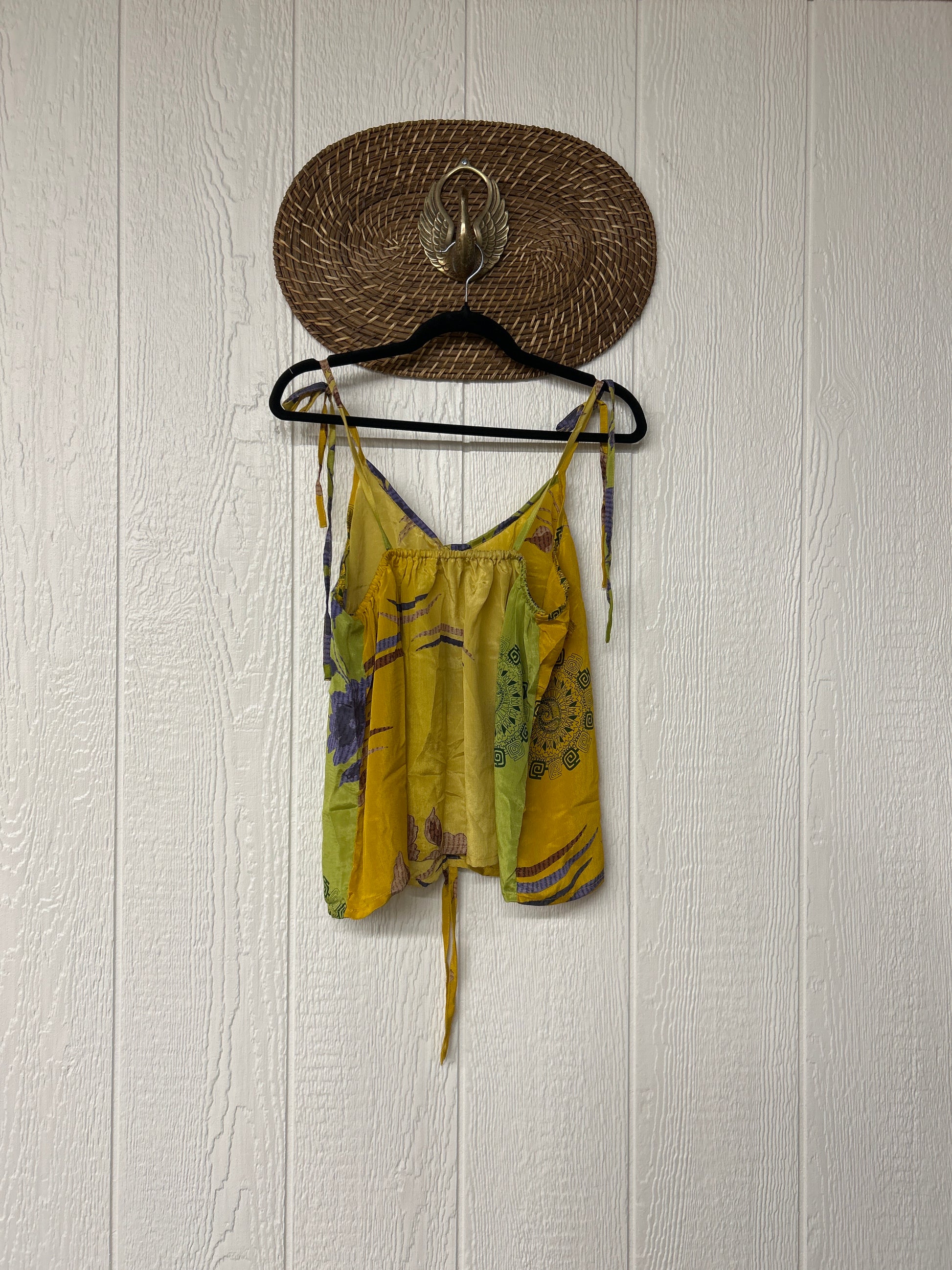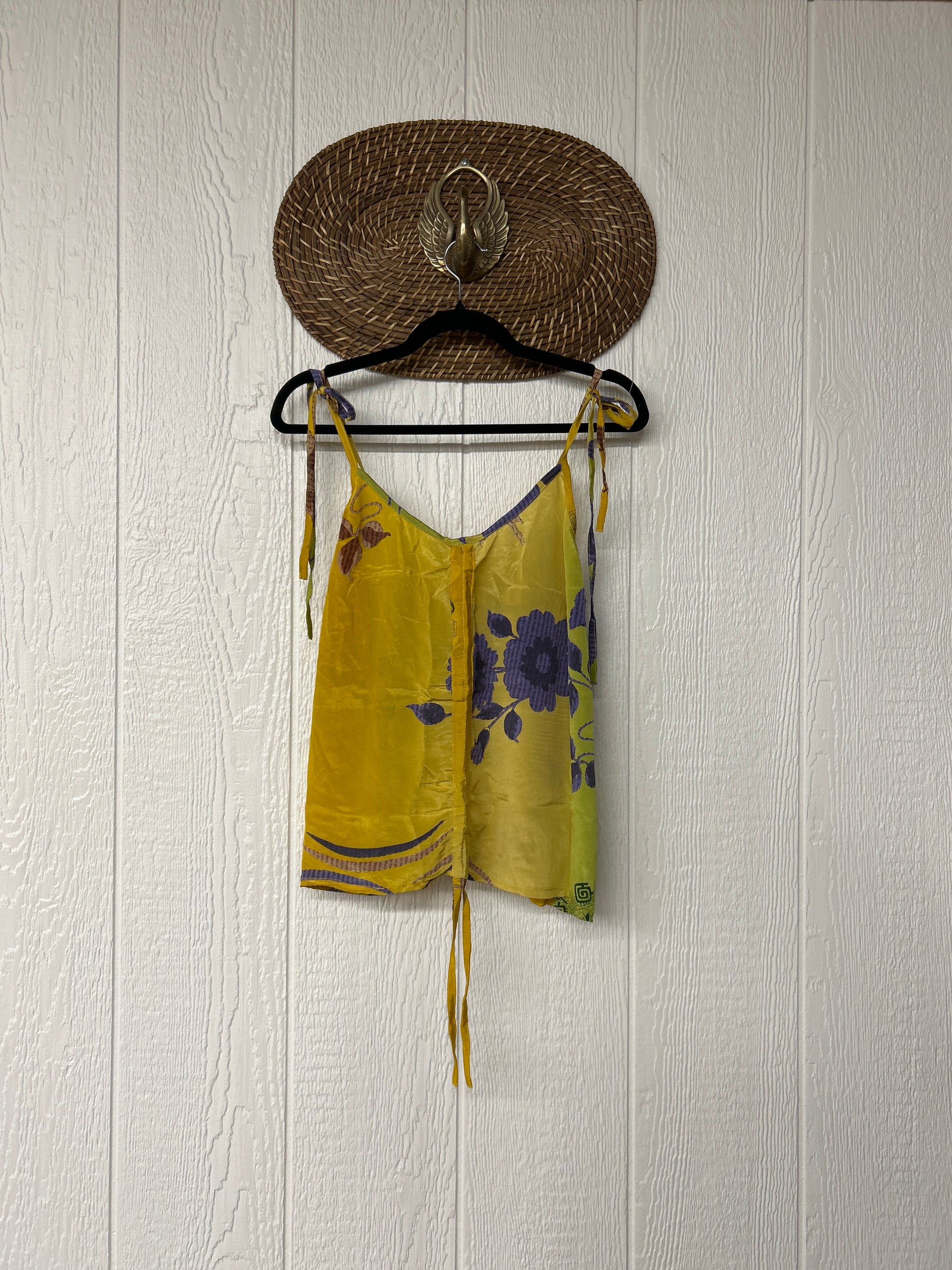 Our Rasgulla Butterfly Tank Top Features adjustable tie straps and a cinch front tie in the front which makes the top customizable for any of your favorite bottoms. Crafted from our ultra lux rasgulla silk this dreamy top is bound to be your new vibey go to! The back also features stretchy elastic for added comfort.