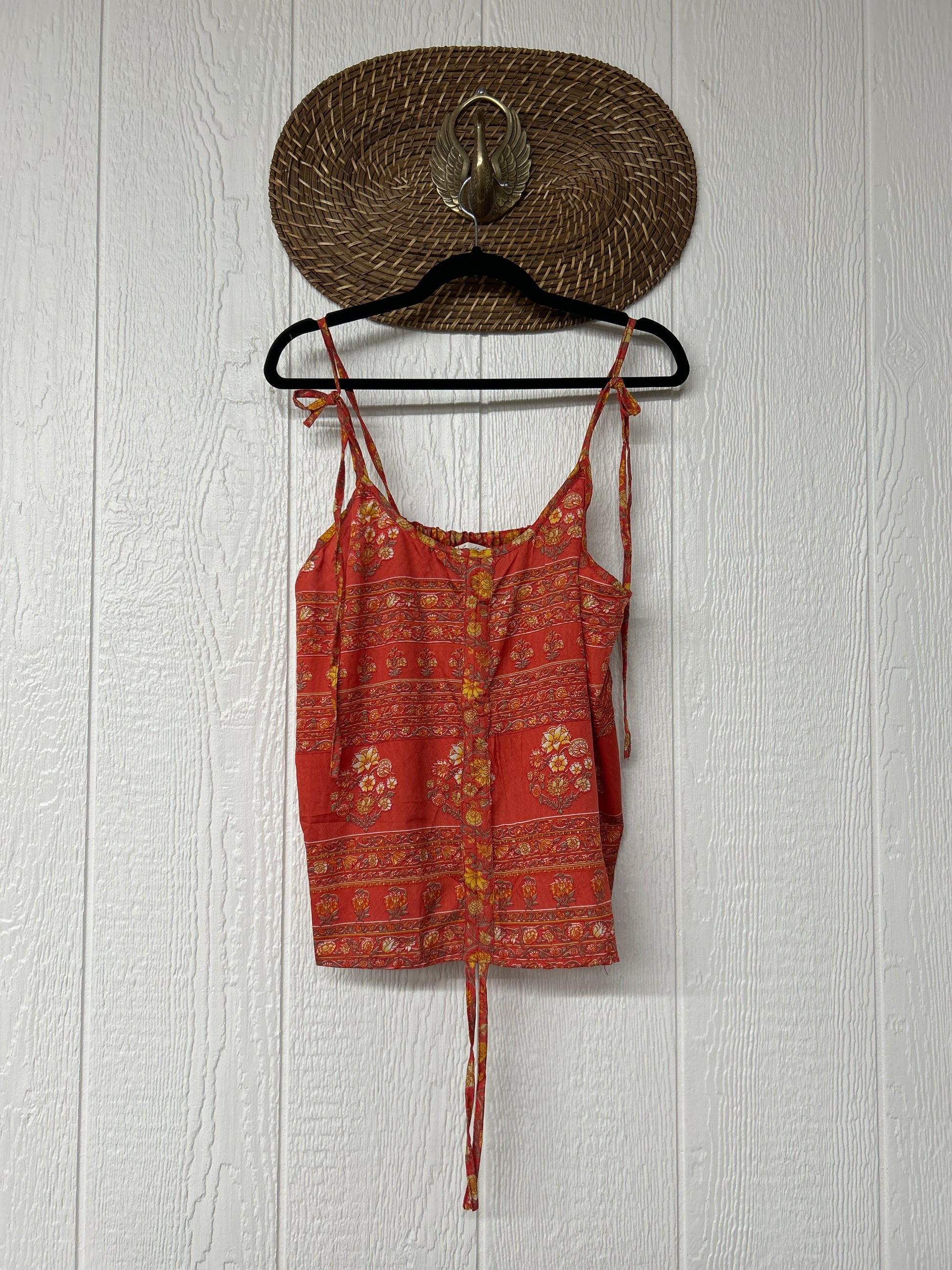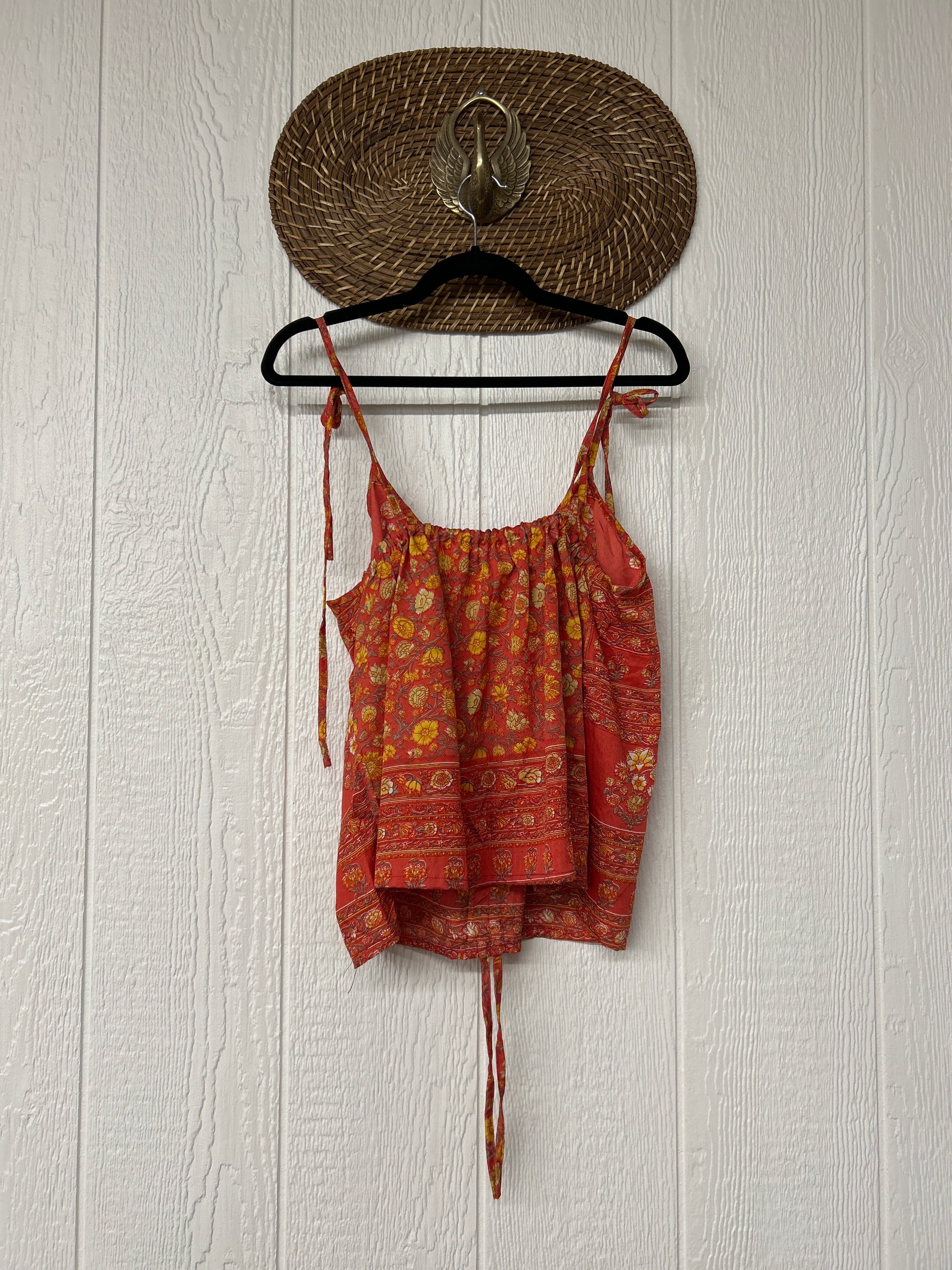 Our Rasgulla Butterfly Tank Top Features adjustable tie straps and a cinch front tie in the front which makes the top customizable for any of your favorite bottoms. Crafted from our ultra lux rasgulla silk this dreamy top is bound to be your new vibey go to! The back also features stretchy elastic for added comfort.