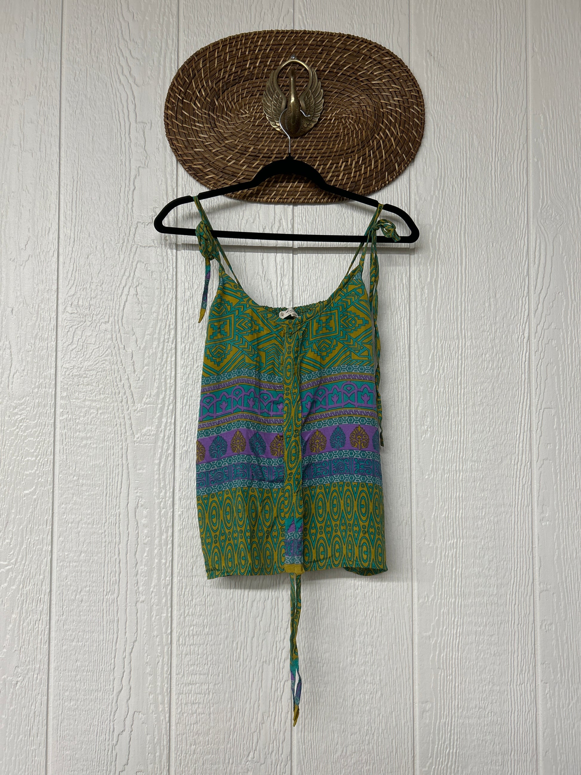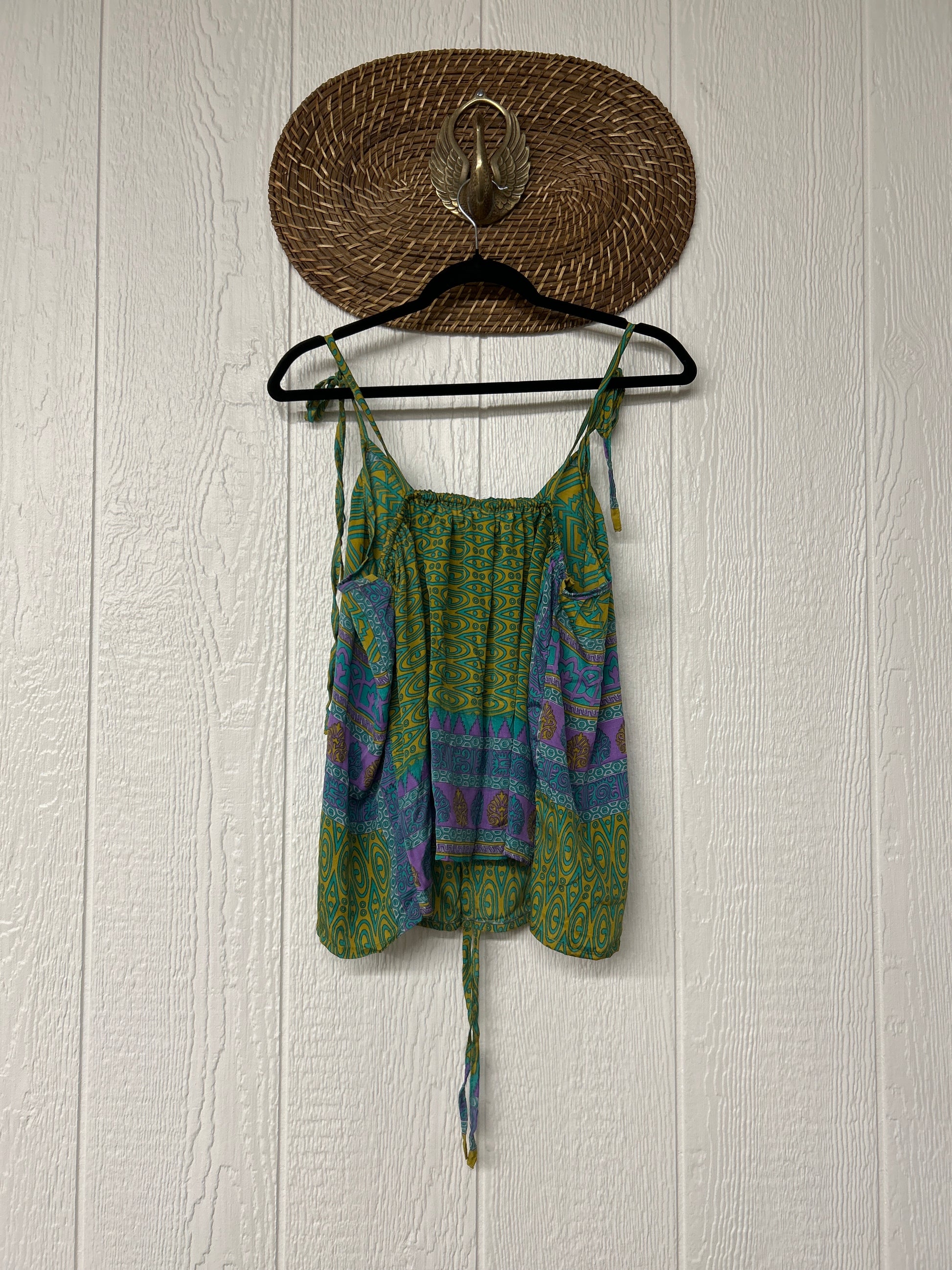 Our Rasgulla Butterfly Tank Top Features adjustable tie straps and a cinch front tie in the front which makes the top customizable for any of your favorite bottoms. Crafted from our ultra lux rasgulla silk this dreamy top is bound to be your new vibey go to! The back also features stretchy elastic for added comfort.