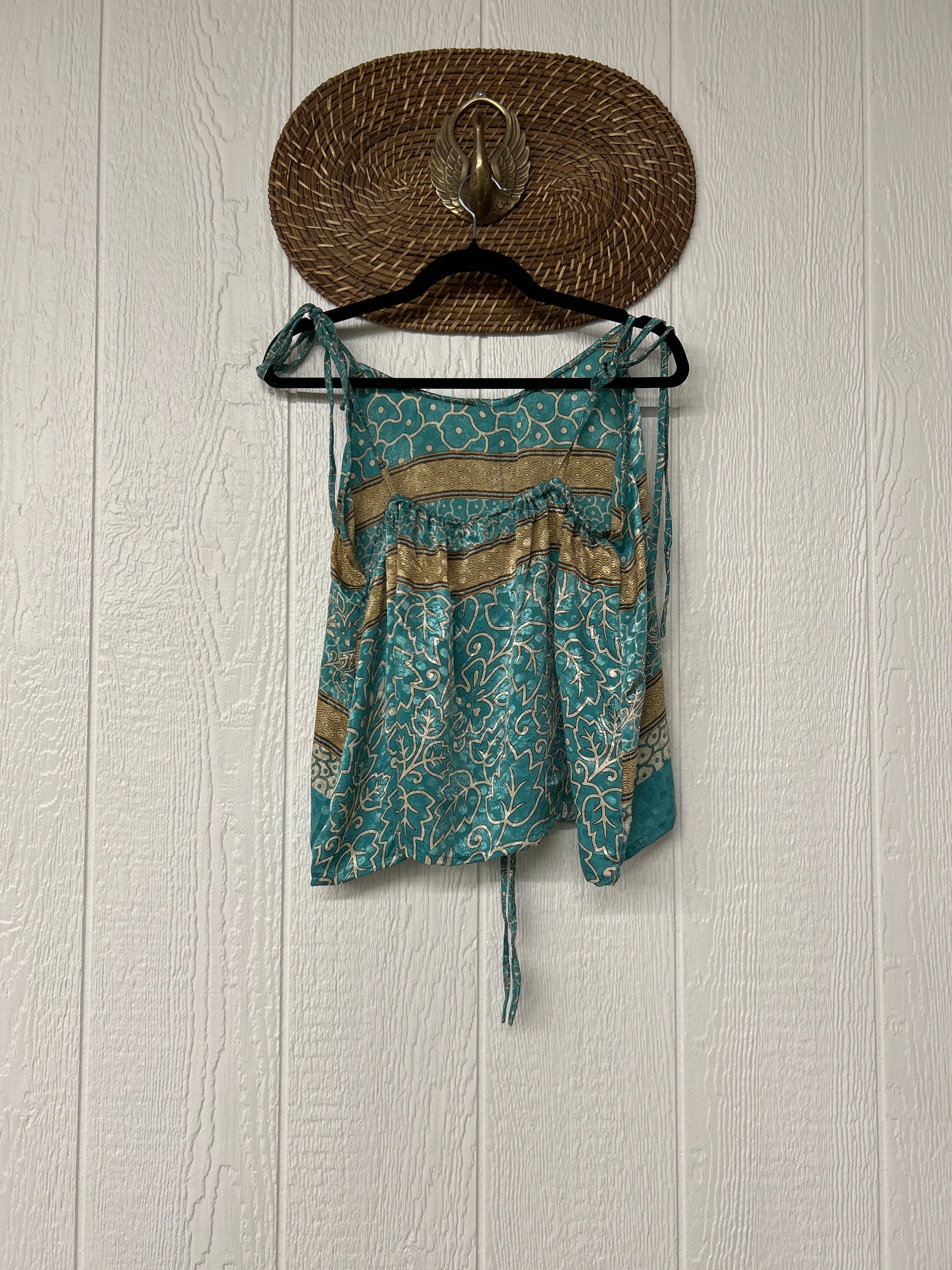 Our Rasgulla Butterfly Tank Top Features adjustable tie straps and a cinch front tie in the front which makes the top customizable for any of your favorite bottoms. Crafted from our ultra lux rasgulla silk this dreamy top is bound to be your new vibey go to! The back also features stretchy elastic for added comfort.