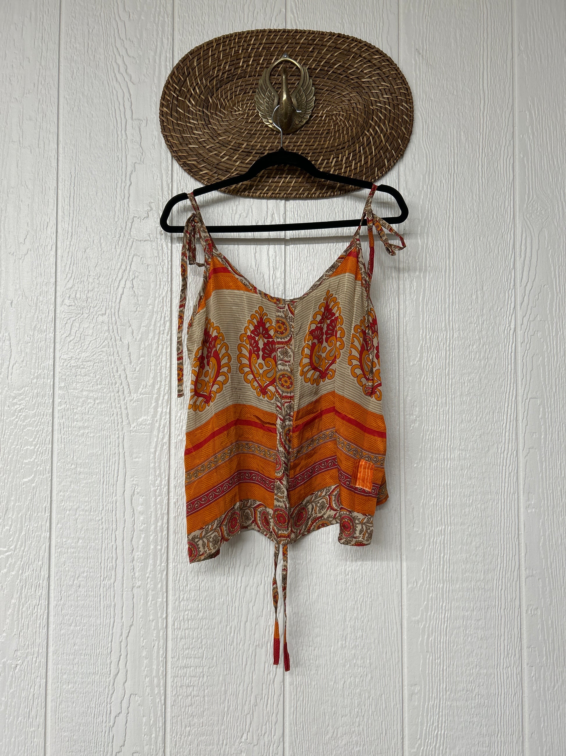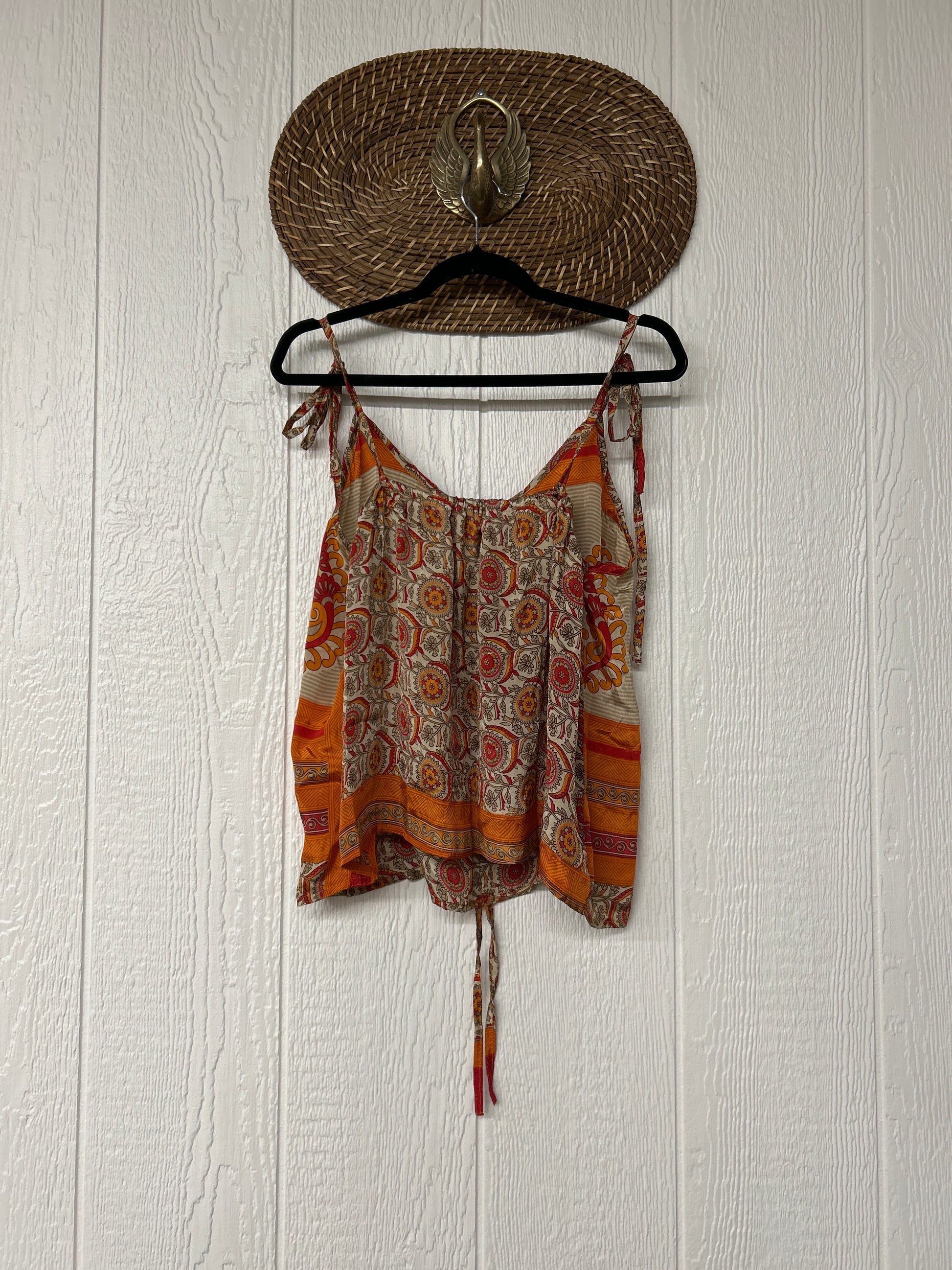 Our Rasgulla Butterfly Tank Top Features adjustable tie straps and a cinch front tie in the front which makes the top customizable for any of your favorite bottoms. Crafted from our ultra lux rasgulla silk this dreamy top is bound to be your new vibey go to! The back also features stretchy elastic for added comfort.