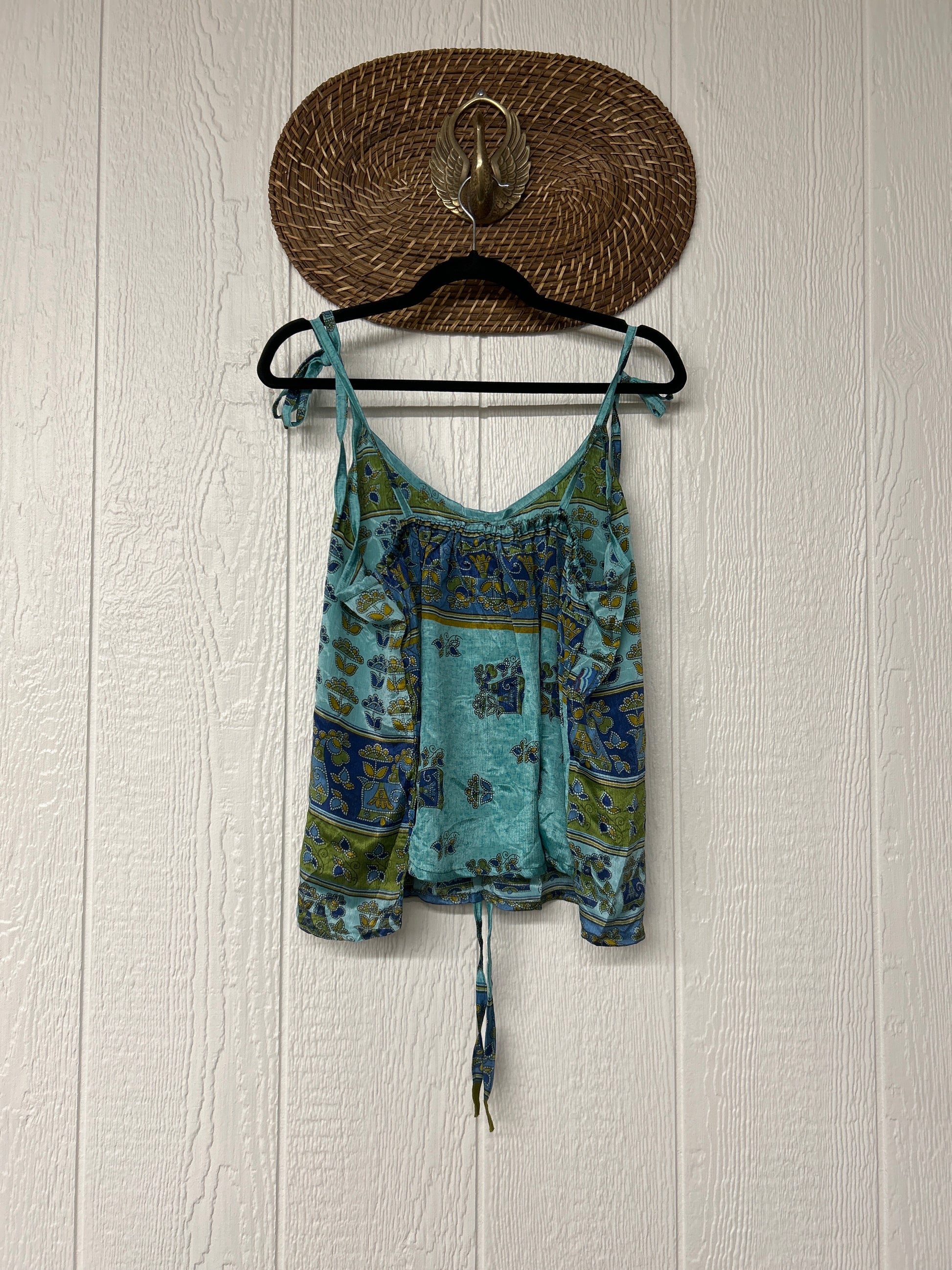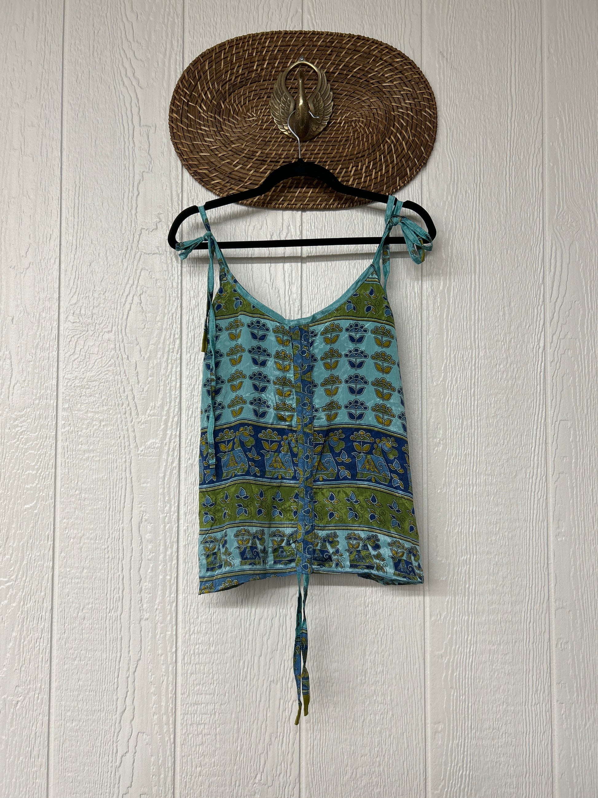 Our Rasgulla Butterfly Tank Top Features adjustable tie straps and a cinch front tie in the front which makes the top customizable for any of your favorite bottoms. Crafted from our ultra lux rasgulla silk this dreamy top is bound to be your new vibey go to! The back also features stretchy elastic for added comfort.