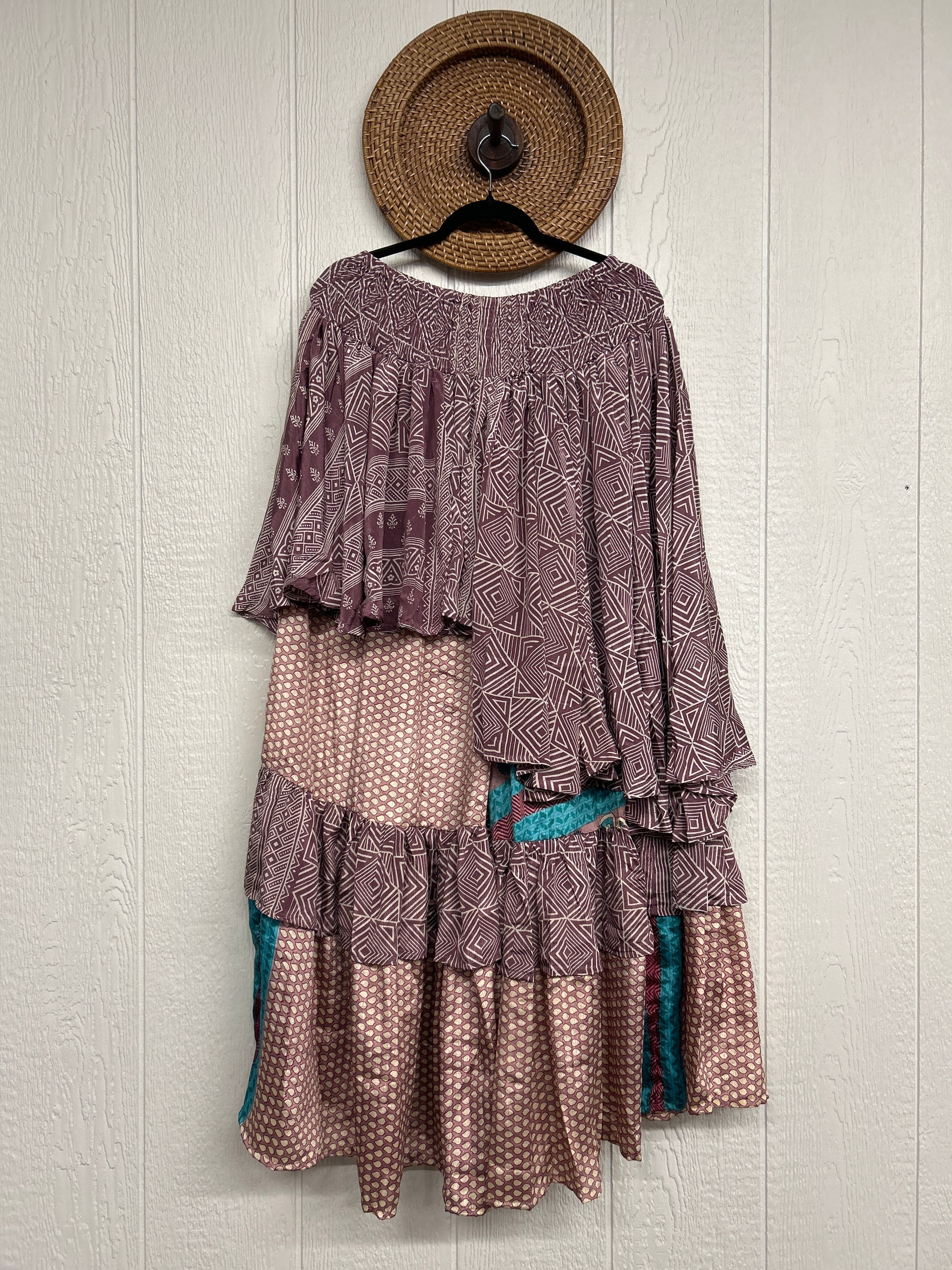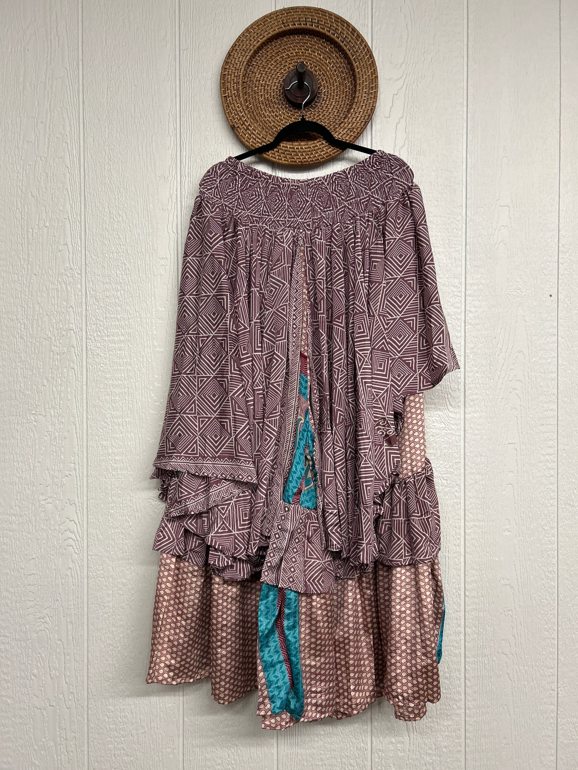 Crafted from vintage rasgulla sari these ethereal pants features stretchy waist, super wide legs, double tier hem and a skirt layer. these pants will make you want to dance! One size, recommended up to size 22/24 Crafted and sewn by families in a small village in Northern India providing work and a fair living. This product should be hand washed and line dried for longest life. For softness, fluff in the dryer on low heat after it has dried from hand washing. Disclosure: Our vintage styles have lived a full life before becoming the designs in our shop. Fabrics may have small threads or holes in the layers. Color inconsistency or small stains may be present. The saris are sewn together and extend the life of each design. Imperfections should be celebrated.