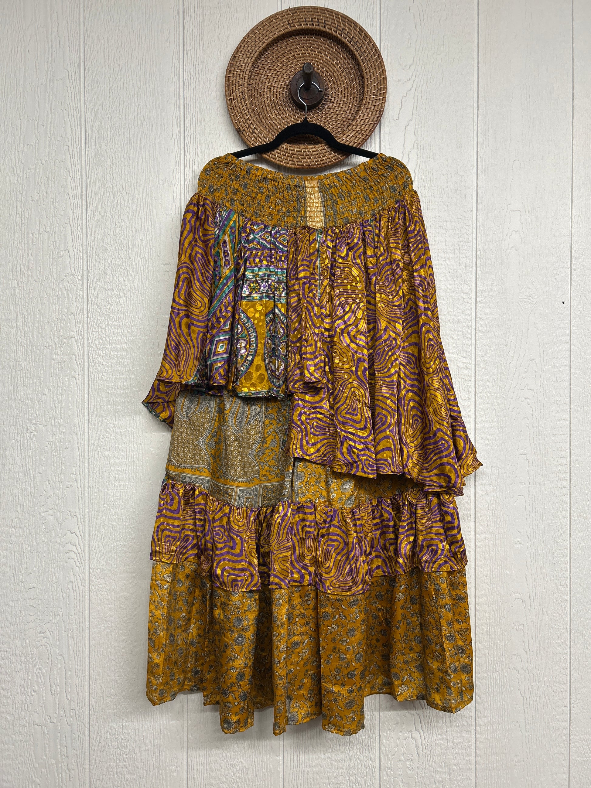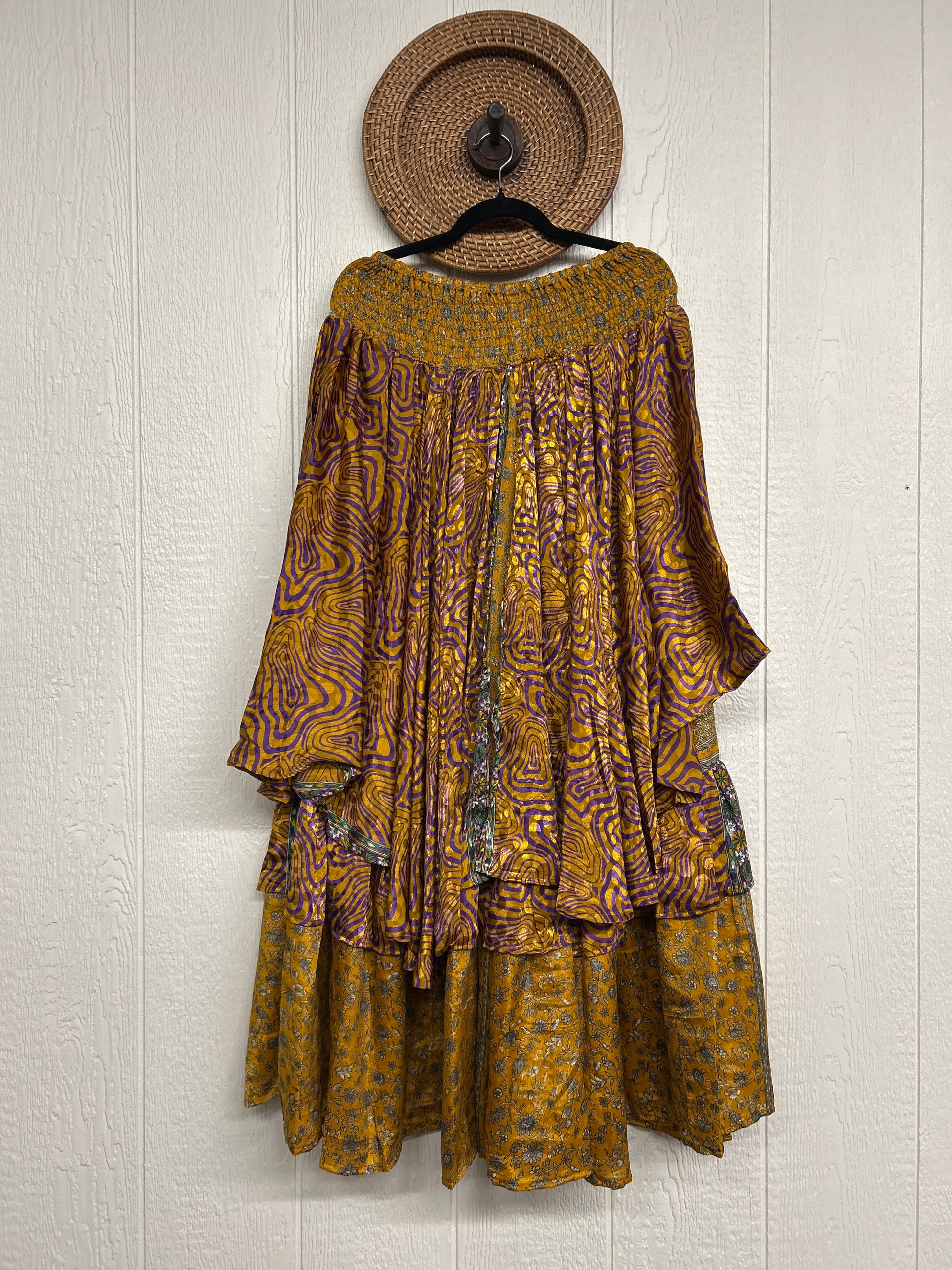 Crafted from vintage rasgulla sari these ethereal pants features stretchy waist, super wide legs, double tier hem and a skirt layer. these pants will make you want to dance! One size, recommended up to size 22/24 Crafted and sewn by families in a small village in Northern India providing work and a fair living. This product should be hand washed and line dried for longest life. For softness, fluff in the dryer on low heat after it has dried from hand washing. Disclosure: Our vintage styles have lived a full life before becoming the designs in our shop. Fabrics may have small threads or holes in the layers. Color inconsistency or small stains may be present. The saris are sewn together and extend the life of each design. Imperfections should be celebrated.