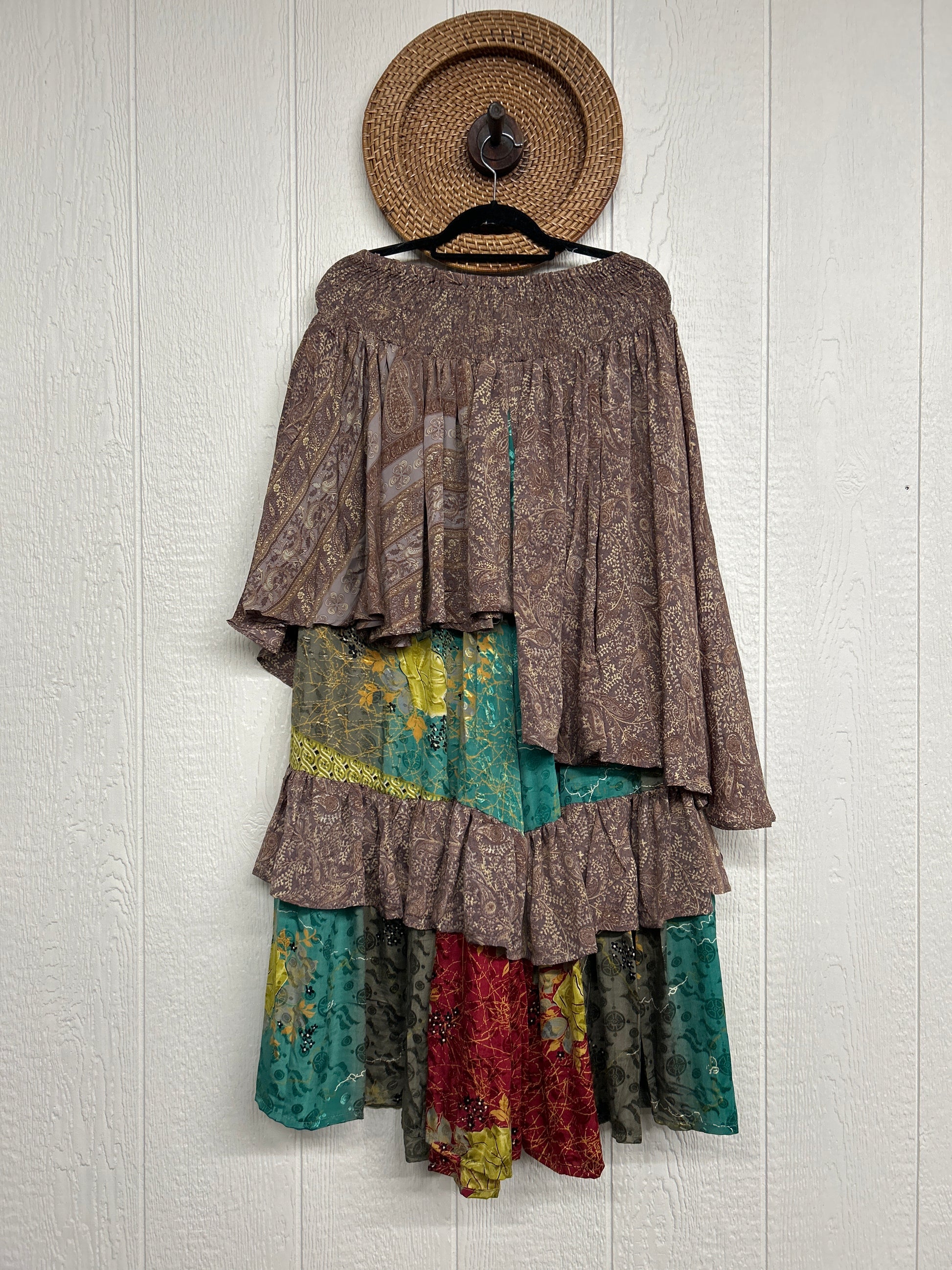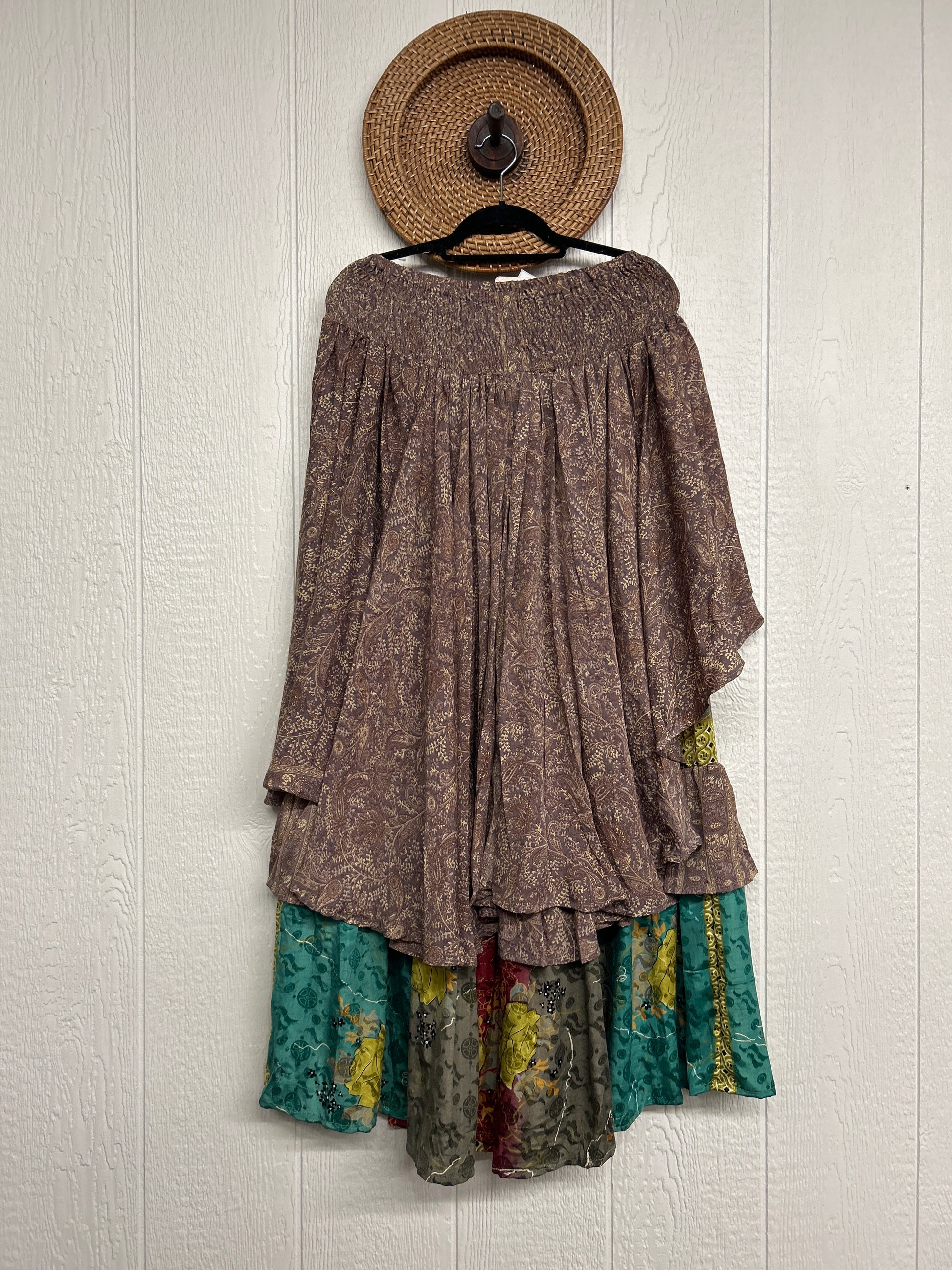 Crafted from vintage rasgulla sari these ethereal pants features stretchy waist, super wide legs, double tier hem and a skirt layer. these pants will make you want to dance! One size, recommended up to size 22/24 Crafted and sewn by families in a small village in Northern India providing work and a fair living. This product should be hand washed and line dried for longest life. For softness, fluff in the dryer on low heat after it has dried from hand washing. Disclosure: Our vintage styles have lived a full life before becoming the designs in our shop. Fabrics may have small threads or holes in the layers. Color inconsistency or small stains may be present. The saris are sewn together and extend the life of each design. Imperfections should be celebrated.