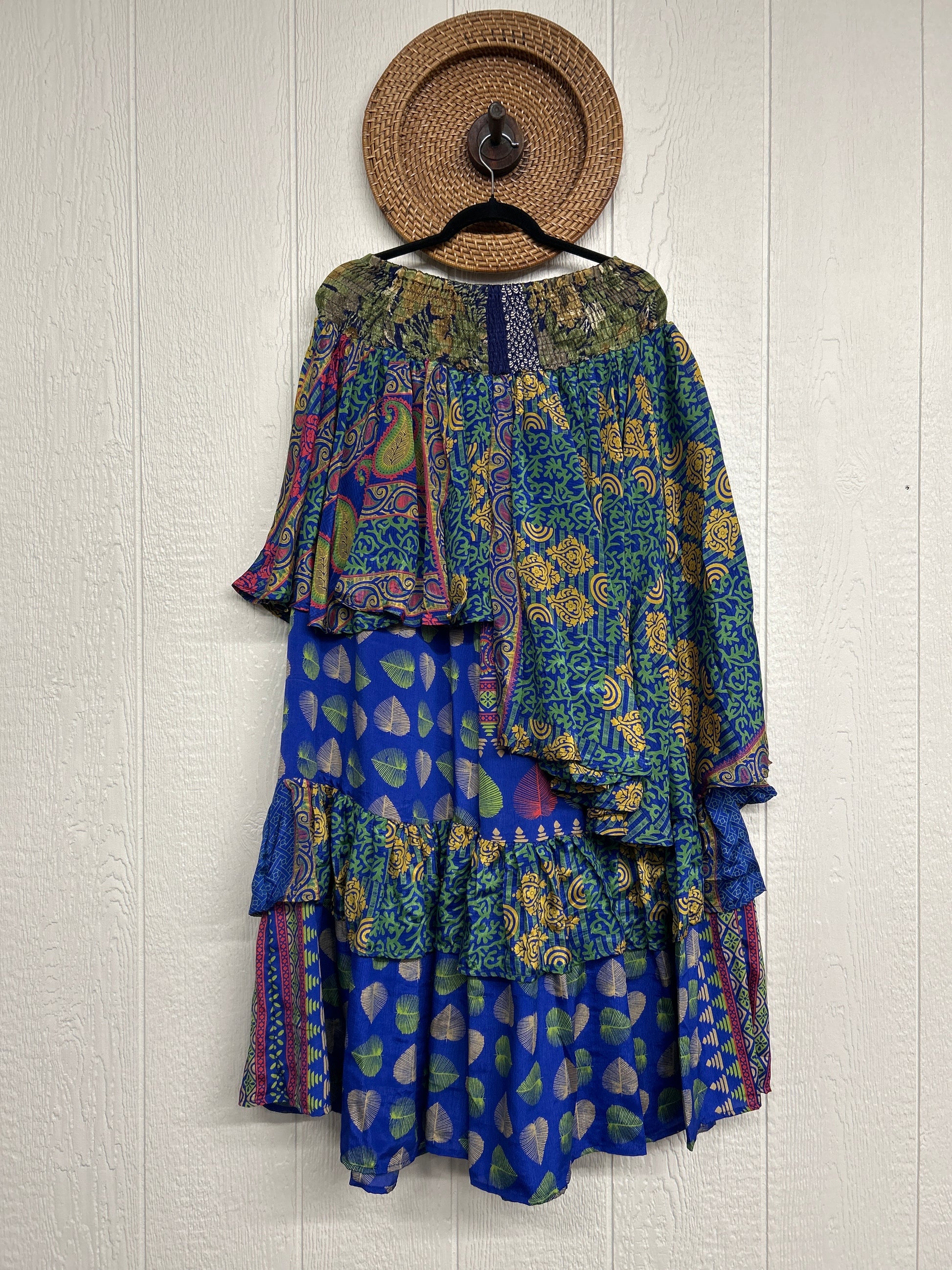Crafted from vintage rasgulla sari these ethereal pants features stretchy waist, super wide legs, double tier hem and a skirt layer. these pants will make you want to dance! One size, recommended up to size 22/24 Crafted and sewn by families in a small village in Northern India providing work and a fair living. This product should be hand washed and line dried for longest life. For softness, fluff in the dryer on low heat after it has dried from hand washing. Disclosure: Our vintage styles have lived a full life before becoming the designs in our shop. Fabrics may have small threads or holes in the layers. Color inconsistency or small stains may be present. The saris are sewn together and extend the life of each design. Imperfections should be celebrated.