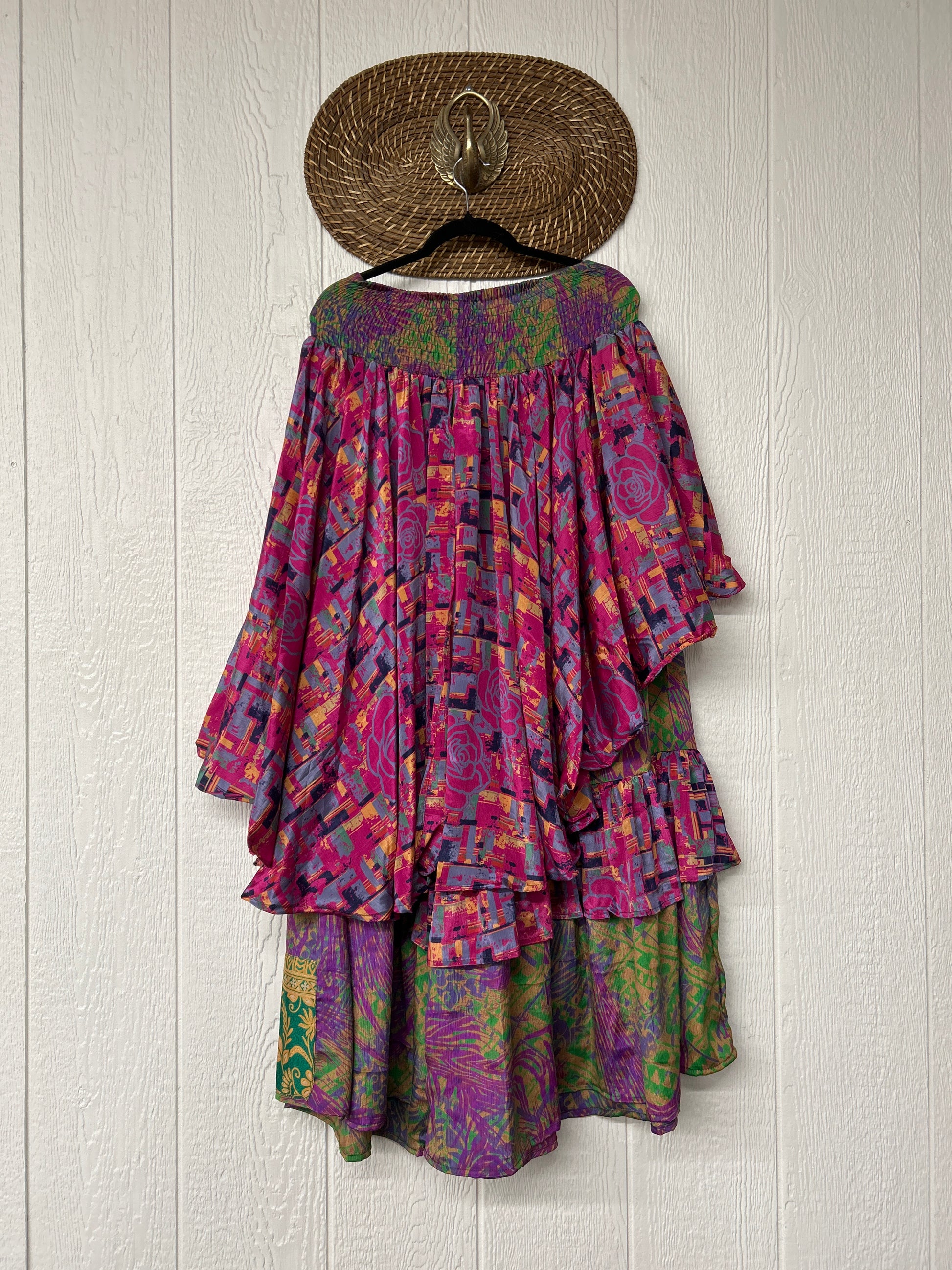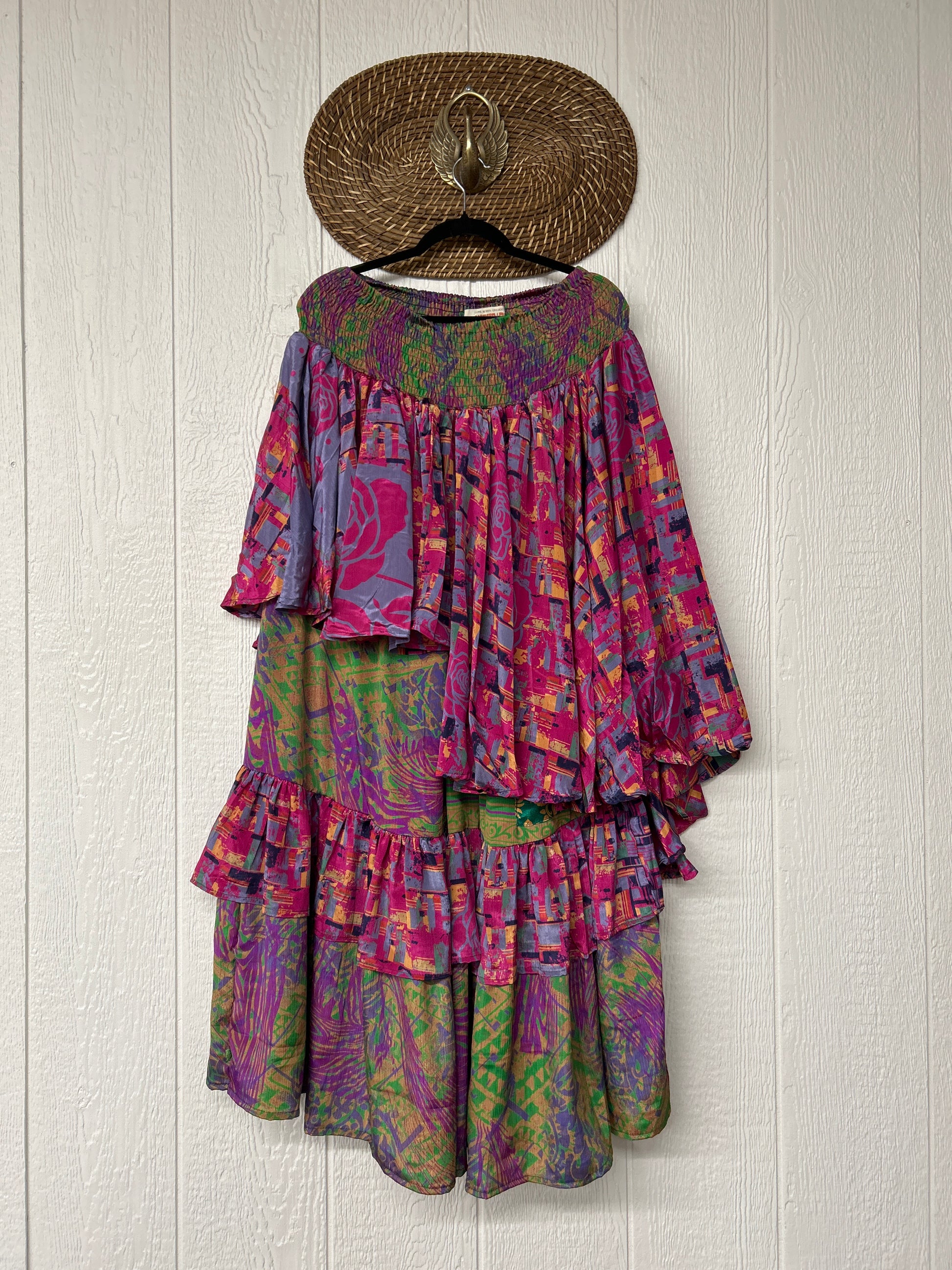 Crafted from vintage rasgulla sari these ethereal pants features stretchy waist, super wide legs, double tier hem and a skirt layer. these pants will make you want to dance! One size, recommended up to size 22/24 Crafted and sewn by families in a small village in Northern India providing work and a fair living. This product should be hand washed and line dried for longest life. For softness, fluff in the dryer on low heat after it has dried from hand washing. Disclosure: Our vintage styles have lived a full life before becoming the designs in our shop. Fabrics may have small threads or holes in the layers. Color inconsistency or small stains may be present. The saris are sewn together and extend the life of each design. Imperfections should be celebrated.