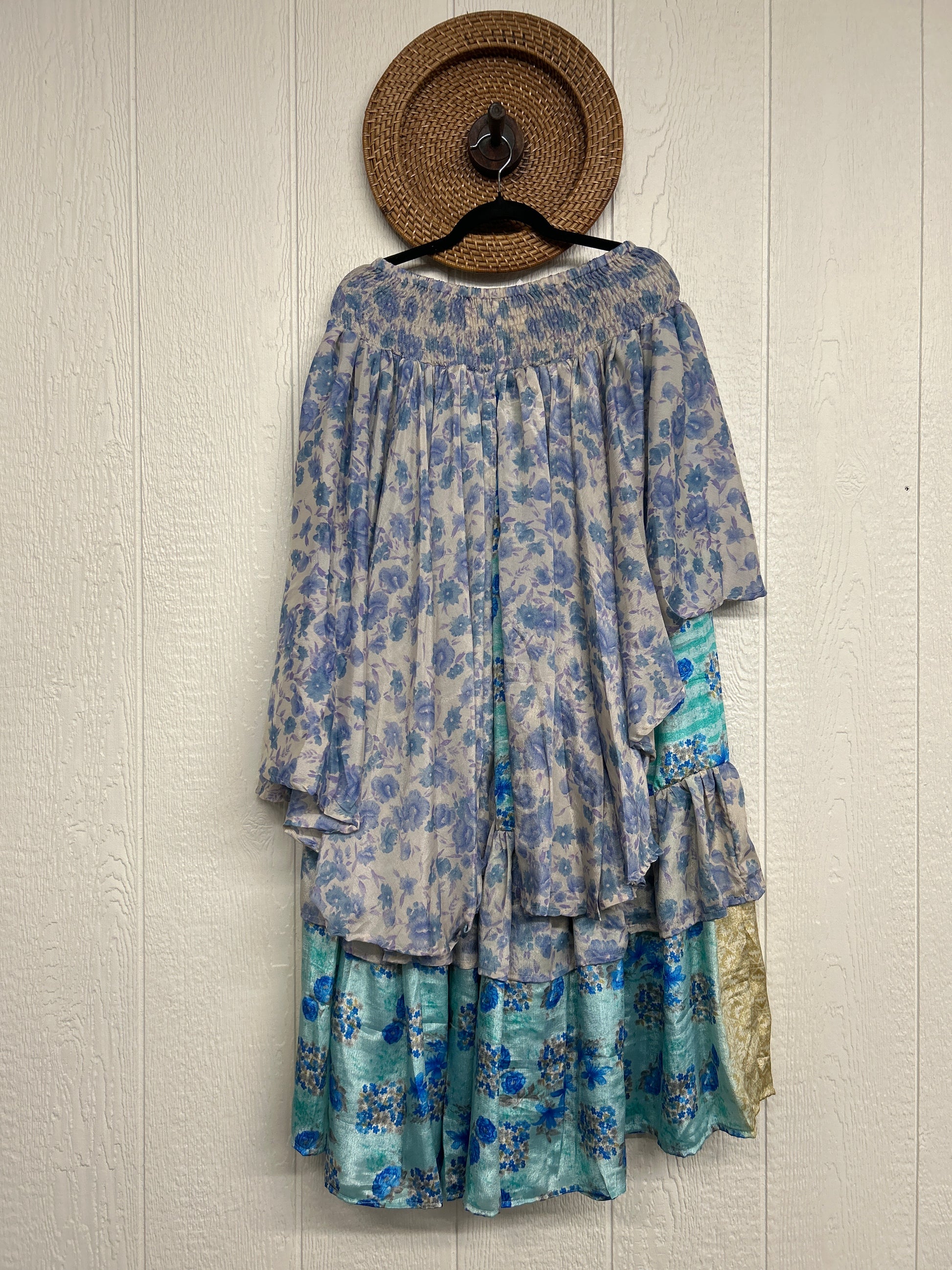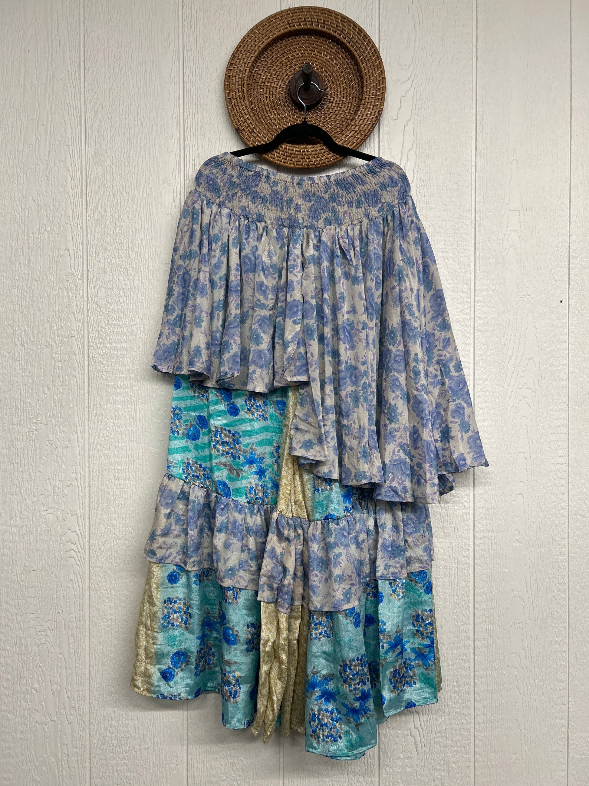 Crafted from vintage rasgulla sari these ethereal pants features stretchy waist, super wide legs, double tier hem and a skirt layer. these pants will make you want to dance! One size, recommended up to size 22/24 Crafted and sewn by families in a small village in Northern India providing work and a fair living. This product should be hand washed and line dried for longest life. For softness, fluff in the dryer on low heat after it has dried from hand washing. Disclosure: Our vintage styles have lived a full life before becoming the designs in our shop. Fabrics may have small threads or holes in the layers. Color inconsistency or small stains may be present. The saris are sewn together and extend the life of each design. Imperfections should be celebrated.