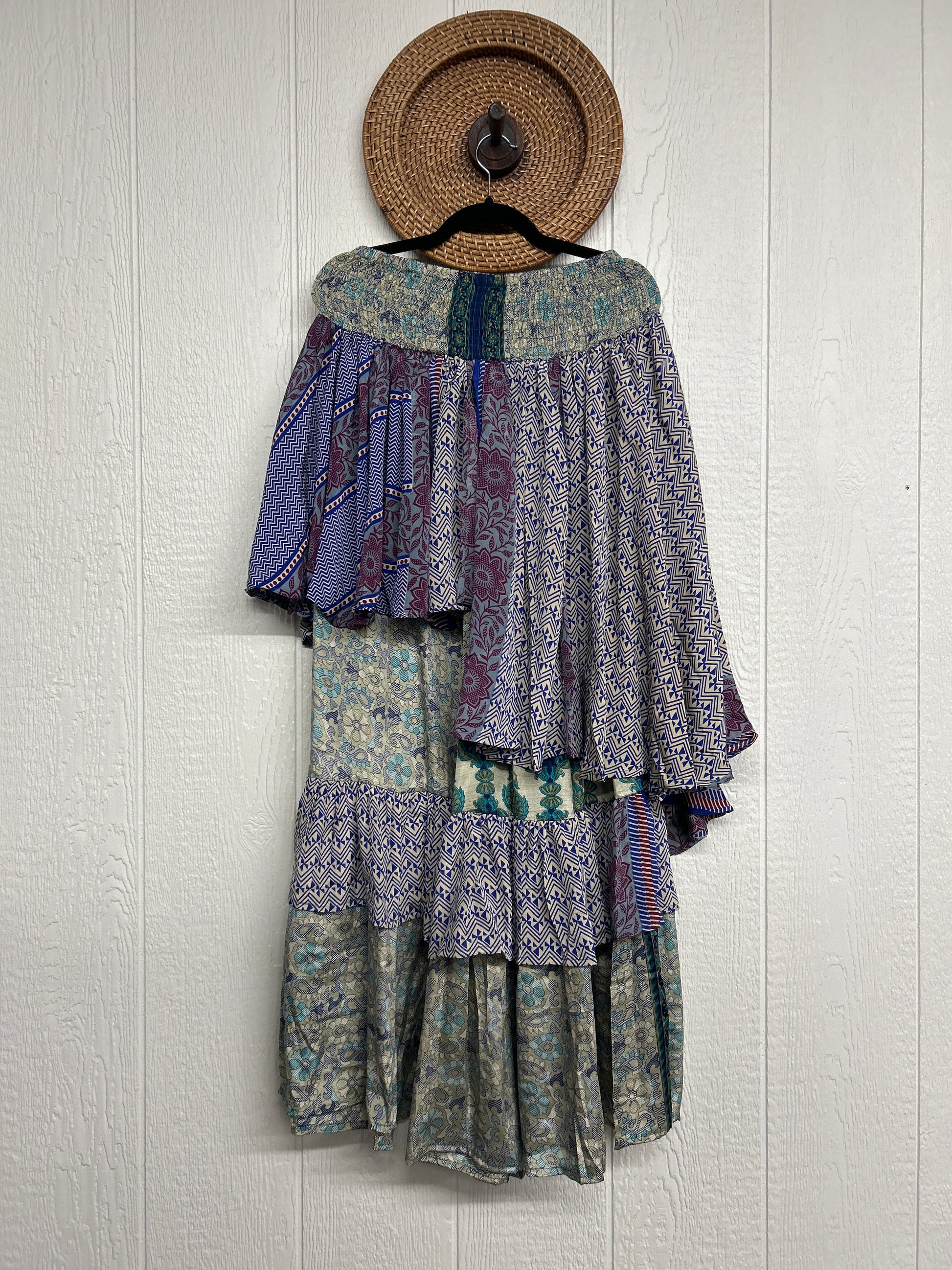 Crafted from vintage rasgulla sari these ethereal pants features stretchy waist, super wide legs, double tier hem and a skirt layer. these pants will make you want to dance! One size, recommended up to size 22/24 Crafted and sewn by families in a small village in Northern India providing work and a fair living. This product should be hand washed and line dried for longest life. For softness, fluff in the dryer on low heat after it has dried from hand washing. Disclosure: Our vintage styles have lived a full life before becoming the designs in our shop. Fabrics may have small threads or holes in the layers. Color inconsistency or small stains may be present. The saris are sewn together and extend the life of each design. Imperfections should be celebrated.