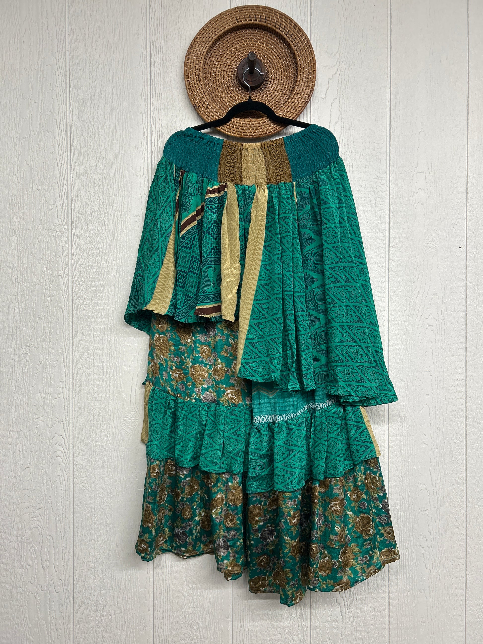 Crafted from vintage rasgulla sari these ethereal pants features stretchy waist, super wide legs, double tier hem and a skirt layer. these pants will make you want to dance! One size, recommended up to size 22/24 Crafted and sewn by families in a small village in Northern India providing work and a fair living. This product should be hand washed and line dried for longest life. For softness, fluff in the dryer on low heat after it has dried from hand washing. Disclosure: Our vintage styles have lived a full life before becoming the designs in our shop. Fabrics may have small threads or holes in the layers. Color inconsistency or small stains may be present. The saris are sewn together and extend the life of each design. Imperfections should be celebrated.