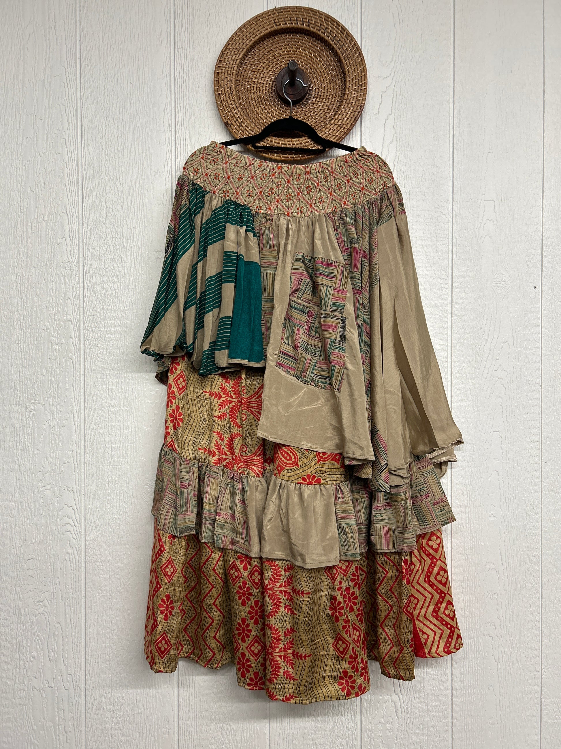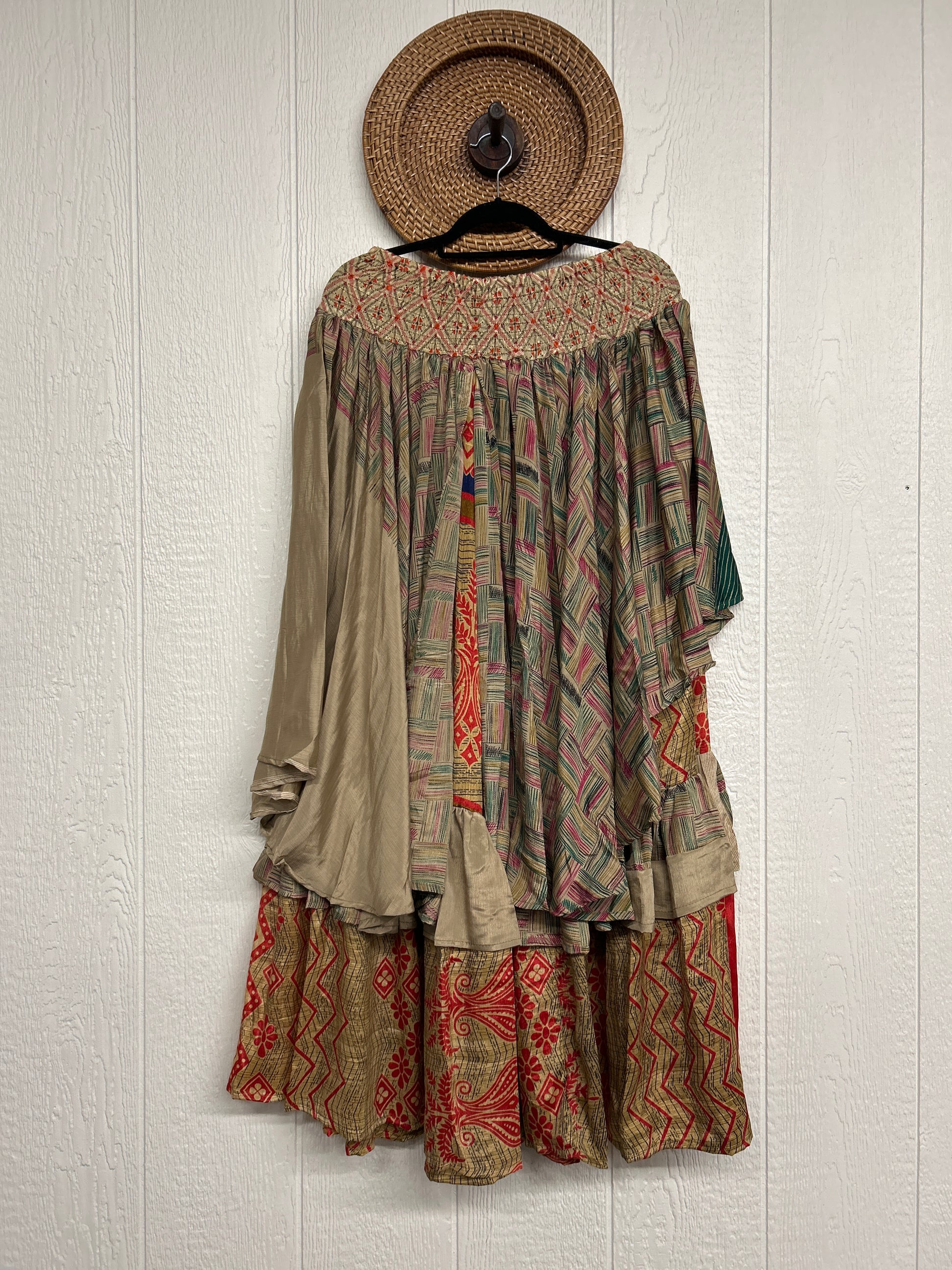 Crafted from vintage rasgulla sari these ethereal pants features stretchy waist, super wide legs, double tier hem and a skirt layer. these pants will make you want to dance! One size, recommended up to size 22/24 Crafted and sewn by families in a small village in Northern India providing work and a fair living. This product should be hand washed and line dried for longest life. For softness, fluff in the dryer on low heat after it has dried from hand washing. Disclosure: Our vintage styles have lived a full life before becoming the designs in our shop. Fabrics may have small threads or holes in the layers. Color inconsistency or small stains may be present. The saris are sewn together and extend the life of each design. Imperfections should be celebrated.