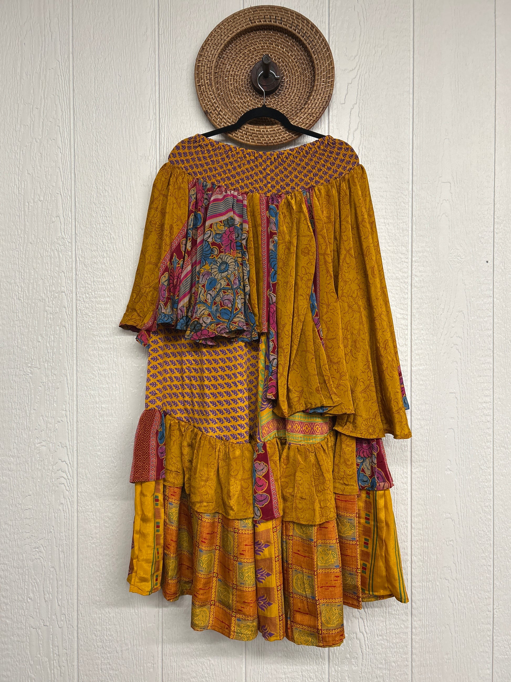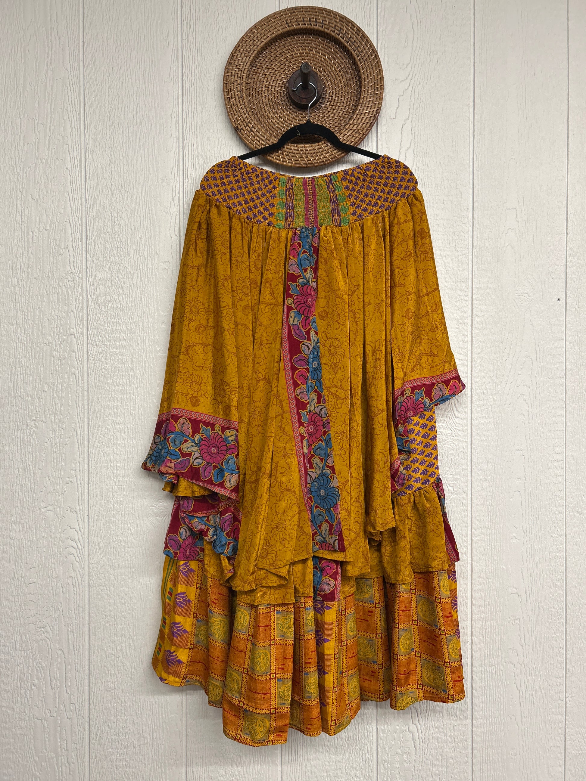 Crafted from vintage rasgulla sari these ethereal pants features stretchy waist, super wide legs, double tier hem and a skirt layer. these pants will make you want to dance! One size, recommended up to size 22/24 Crafted and sewn by families in a small village in Northern India providing work and a fair living. This product should be hand washed and line dried for longest life. For softness, fluff in the dryer on low heat after it has dried from hand washing. Disclosure: Our vintage styles have lived a full life before becoming the designs in our shop. Fabrics may have small threads or holes in the layers. Color inconsistency or small stains may be present. The saris are sewn together and extend the life of each design. Imperfections should be celebrated.