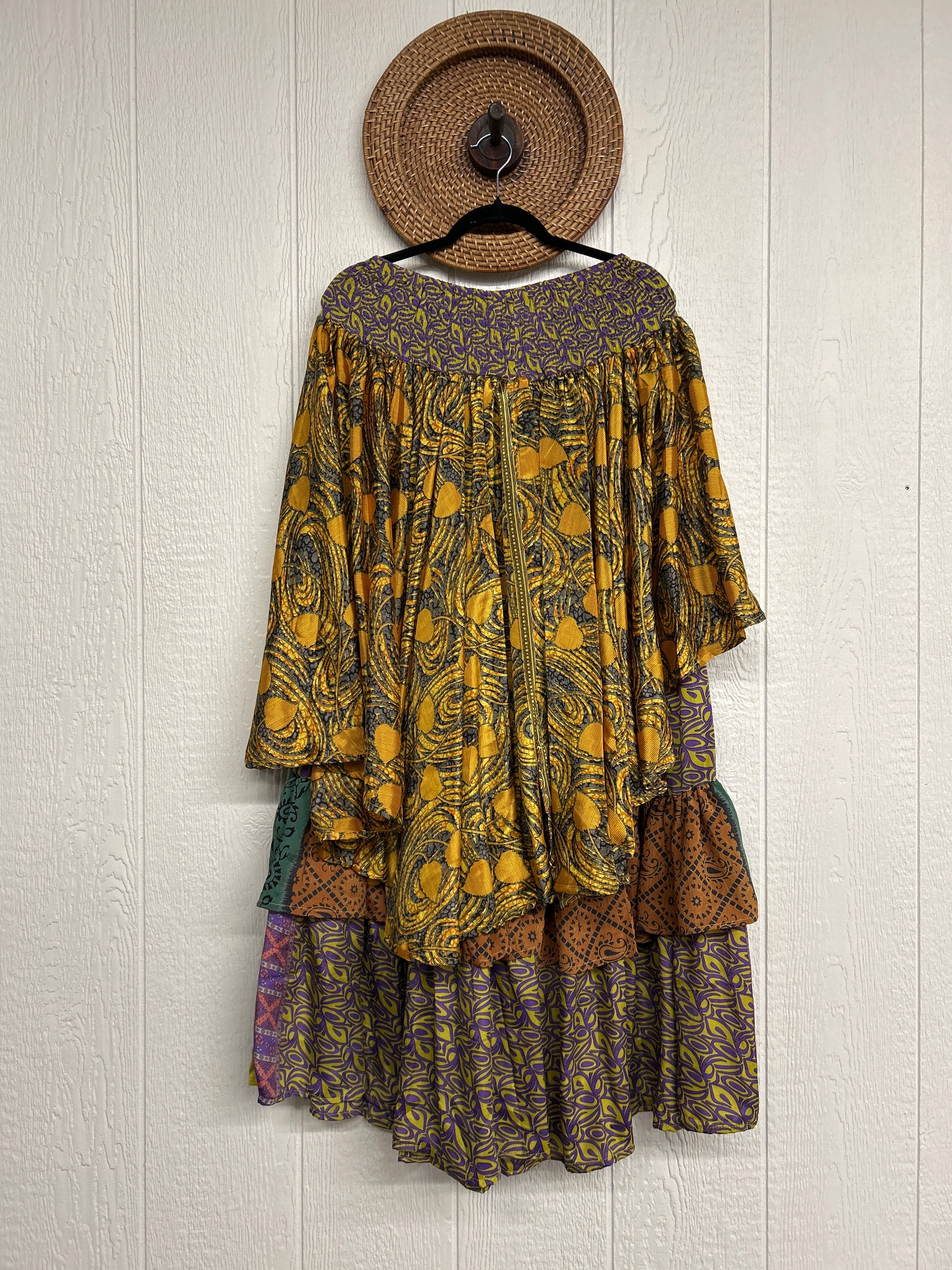 Crafted from vintage rasgulla sari these ethereal pants features stretchy waist, super wide legs, double tier hem and a skirt layer. these pants will make you want to dance! One size, recommended up to size 22/24 Crafted and sewn by families in a small village in Northern India providing work and a fair living. This product should be hand washed and line dried for longest life. For softness, fluff in the dryer on low heat after it has dried from hand washing. Disclosure: Our vintage styles have lived a full life before becoming the designs in our shop. Fabrics may have small threads or holes in the layers. Color inconsistency or small stains may be present. The saris are sewn together and extend the life of each design. Imperfections should be celebrated.