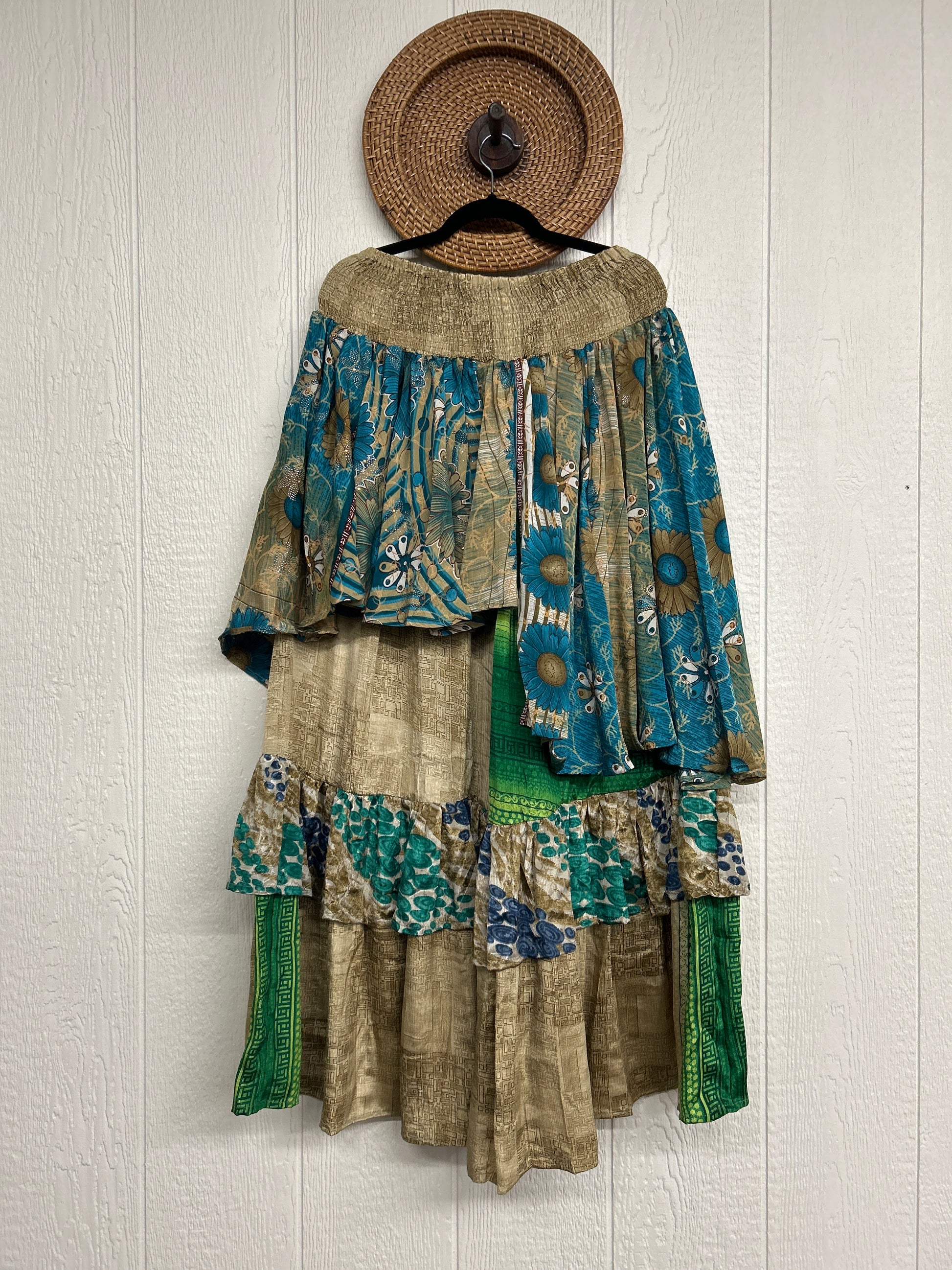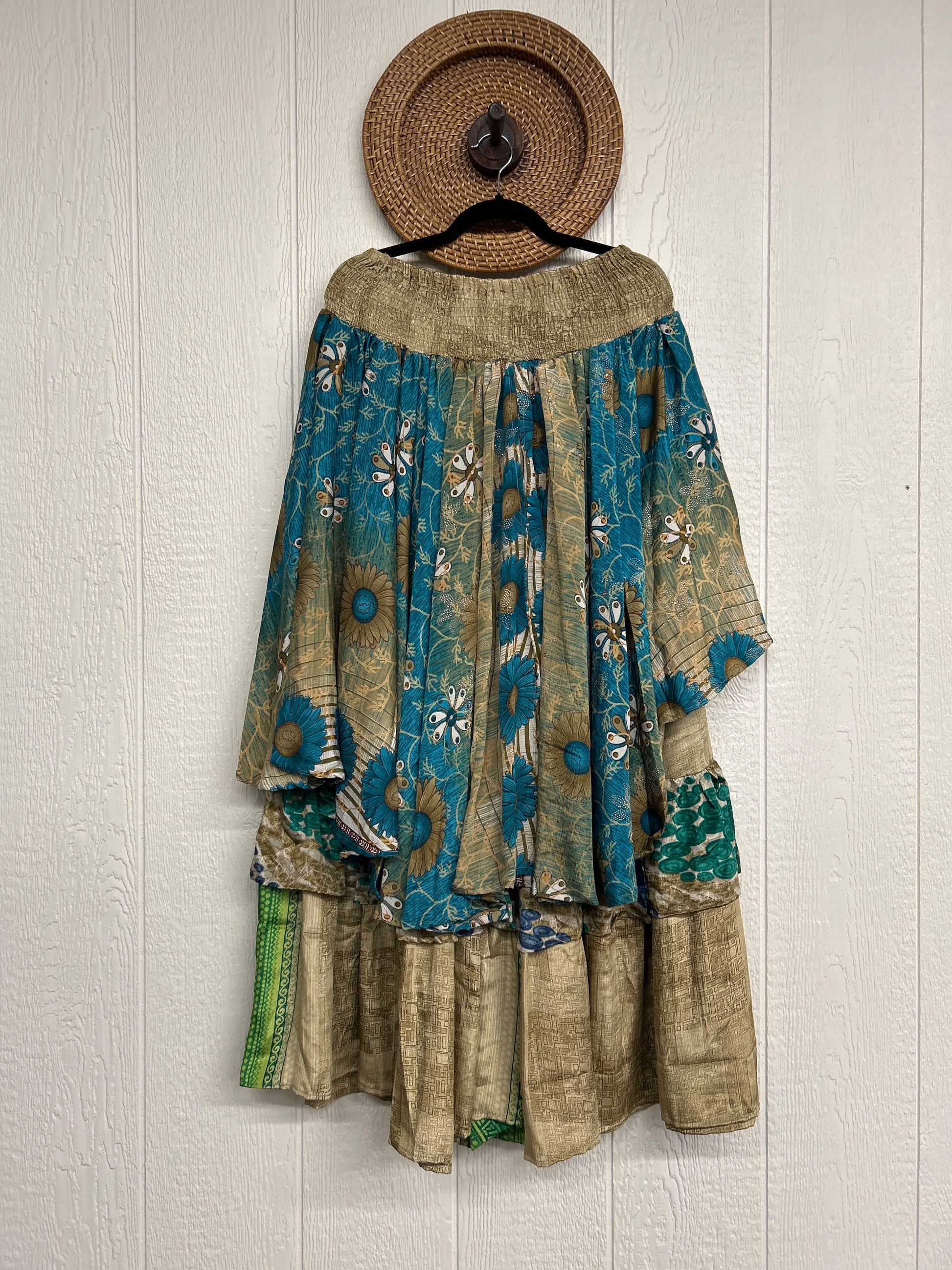 Crafted from vintage rasgulla sari these ethereal pants features stretchy waist, super wide legs, double tier hem and a skirt layer. these pants will make you want to dance! One size, recommended up to size 22/24 Crafted and sewn by families in a small village in Northern India providing work and a fair living. This product should be hand washed and line dried for longest life. For softness, fluff in the dryer on low heat after it has dried from hand washing. Disclosure: Our vintage styles have lived a full life before becoming the designs in our shop. Fabrics may have small threads or holes in the layers. Color inconsistency or small stains may be present. The saris are sewn together and extend the life of each design. Imperfections should be celebrated.