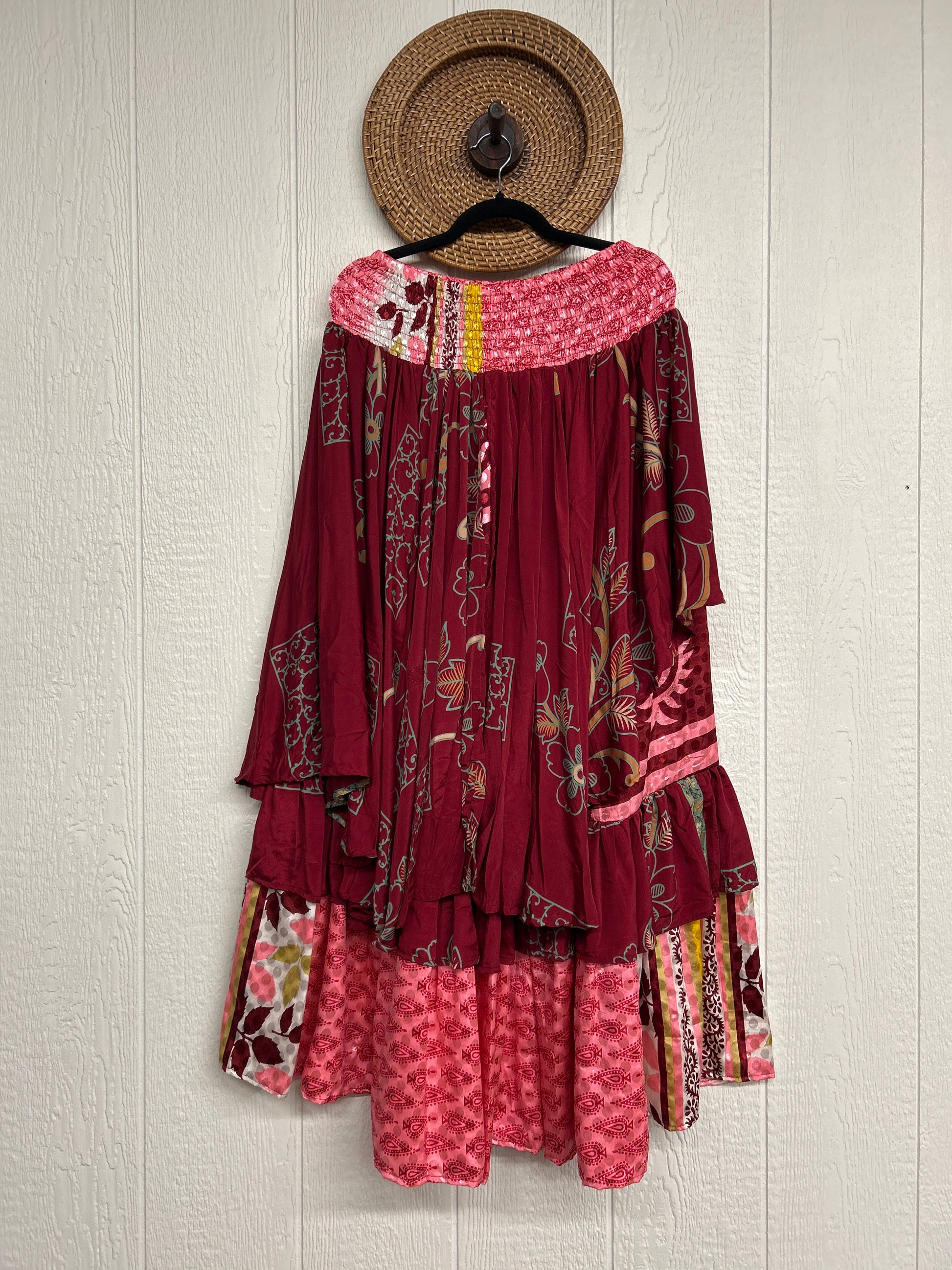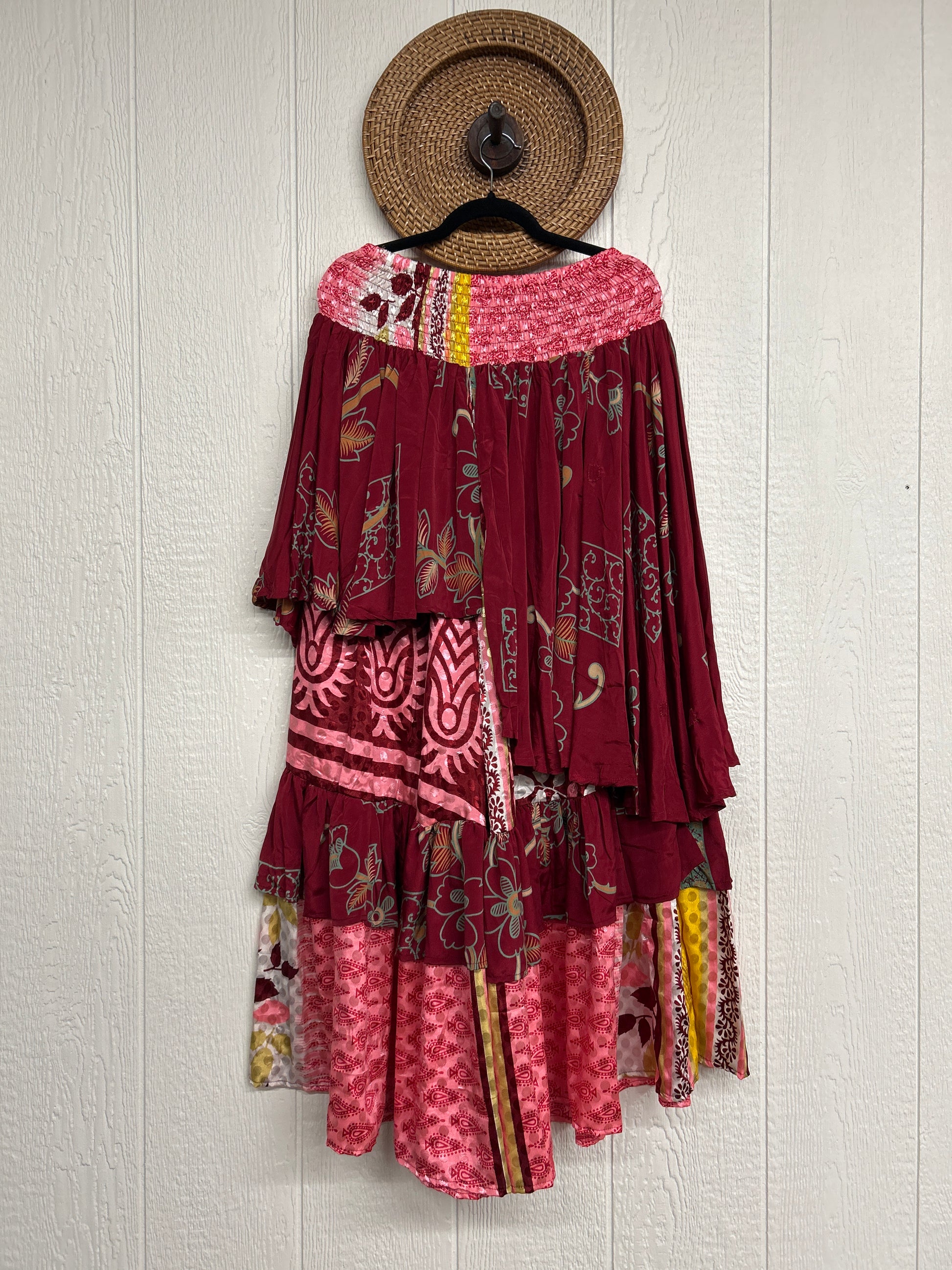 Crafted from vintage rasgulla sari these ethereal pants features stretchy waist, super wide legs, double tier hem and a skirt layer. these pants will make you want to dance! One size, recommended up to size 22/24 Crafted and sewn by families in a small village in Northern India providing work and a fair living. This product should be hand washed and line dried for longest life. For softness, fluff in the dryer on low heat after it has dried from hand washing. Disclosure: Our vintage styles have lived a full life before becoming the designs in our shop. Fabrics may have small threads or holes in the layers. Color inconsistency or small stains may be present. The saris are sewn together and extend the life of each design. Imperfections should be celebrated.