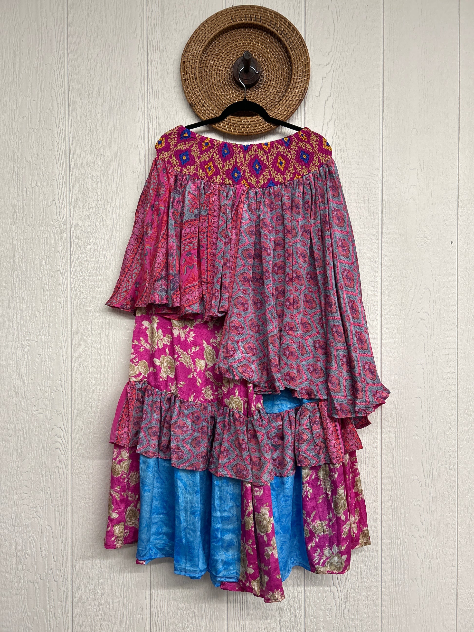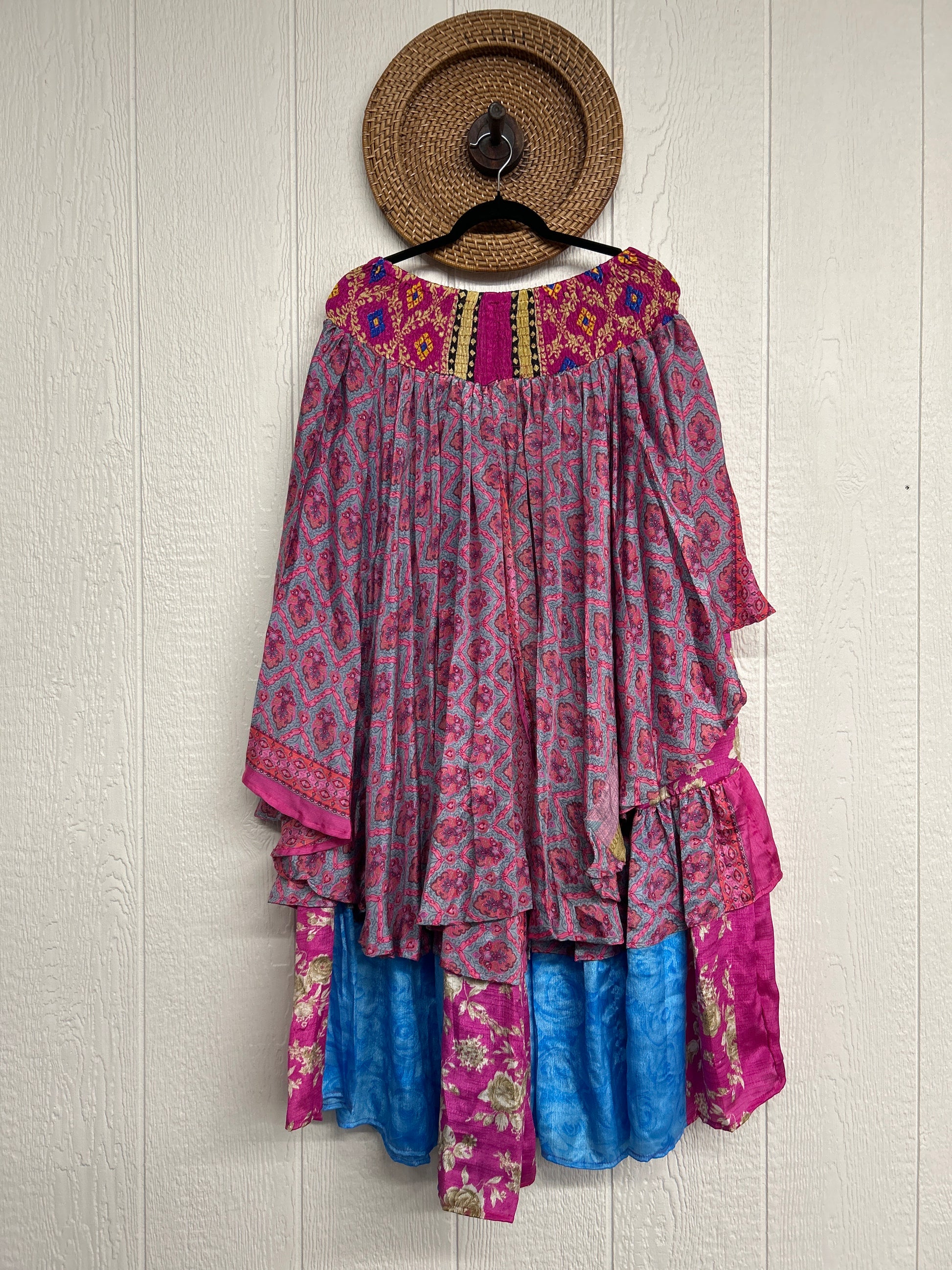 Crafted from vintage rasgulla sari these ethereal pants features stretchy waist, super wide legs, double tier hem and a skirt layer. these pants will make you want to dance! One size, recommended up to size 22/24 Crafted and sewn by families in a small village in Northern India providing work and a fair living. This product should be hand washed and line dried for longest life. For softness, fluff in the dryer on low heat after it has dried from hand washing. Disclosure: Our vintage styles have lived a full life before becoming the designs in our shop. Fabrics may have small threads or holes in the layers. Color inconsistency or small stains may be present. The saris are sewn together and extend the life of each design. Imperfections should be celebrated.