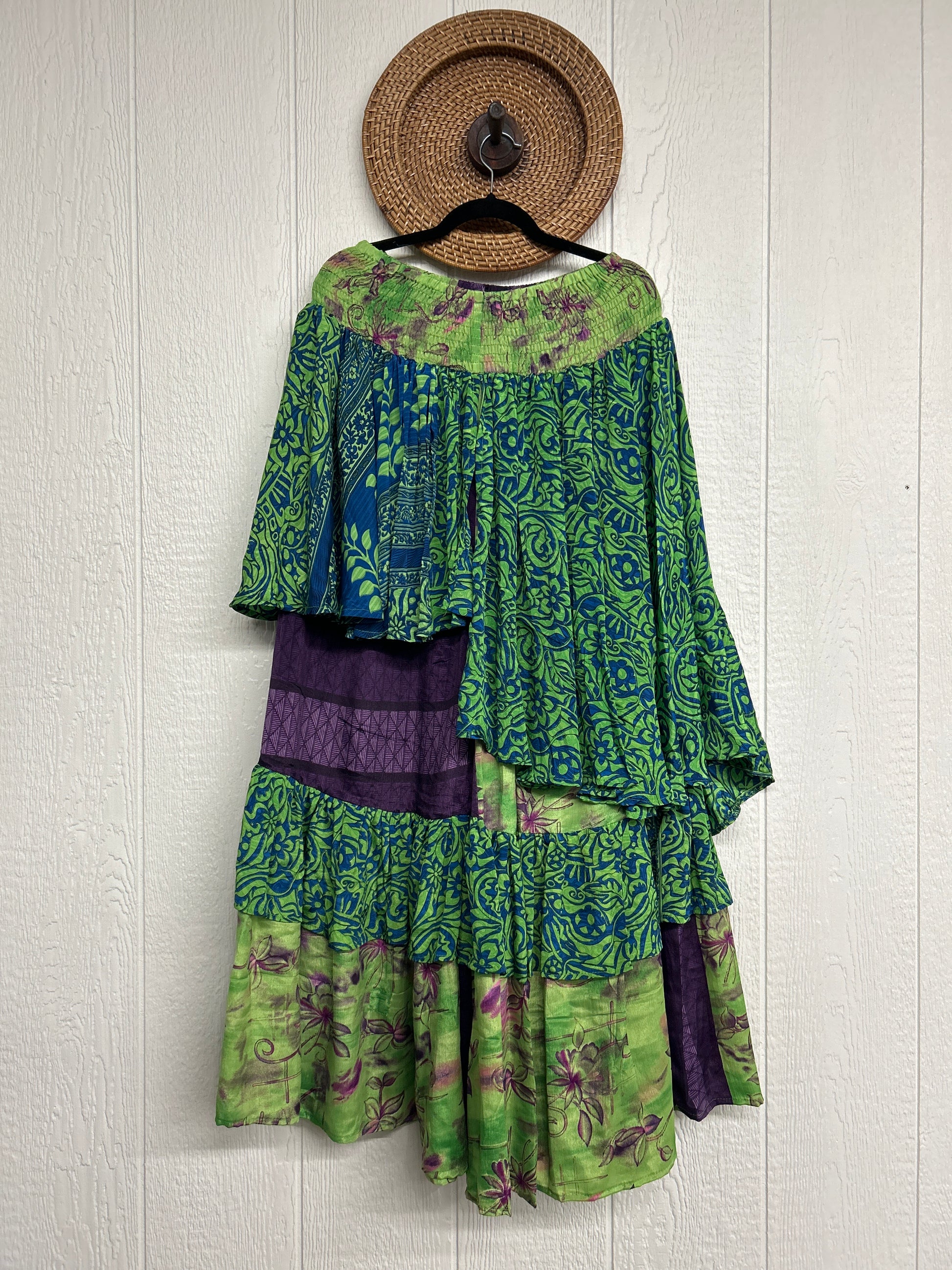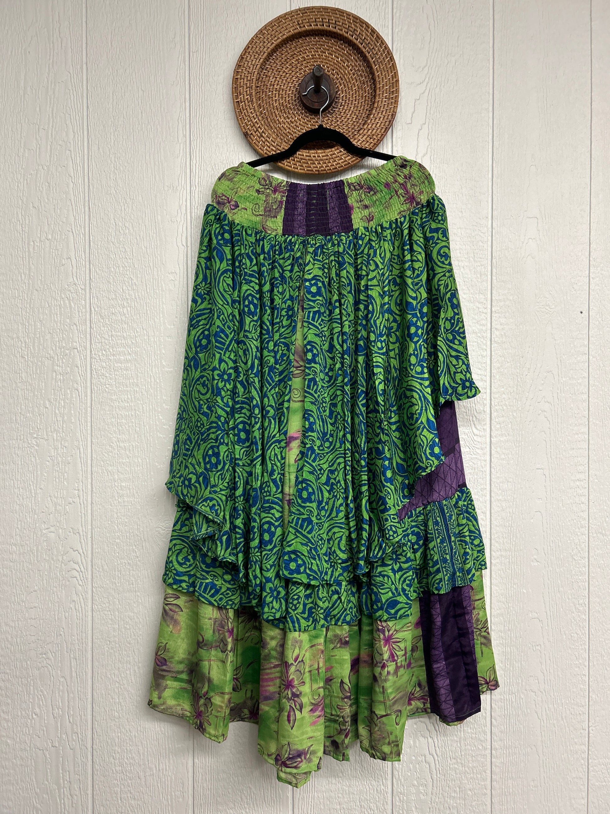 Crafted from vintage rasgulla sari these ethereal pants features stretchy waist, super wide legs, double tier hem and a skirt layer. these pants will make you want to dance! One size, recommended up to size 22/24 Crafted and sewn by families in a small village in Northern India providing work and a fair living. This product should be hand washed and line dried for longest life. For softness, fluff in the dryer on low heat after it has dried from hand washing. Disclosure: Our vintage styles have lived a full life before becoming the designs in our shop. Fabrics may have small threads or holes in the layers. Color inconsistency or small stains may be present. The saris are sewn together and extend the life of each design. Imperfections should be celebrated.