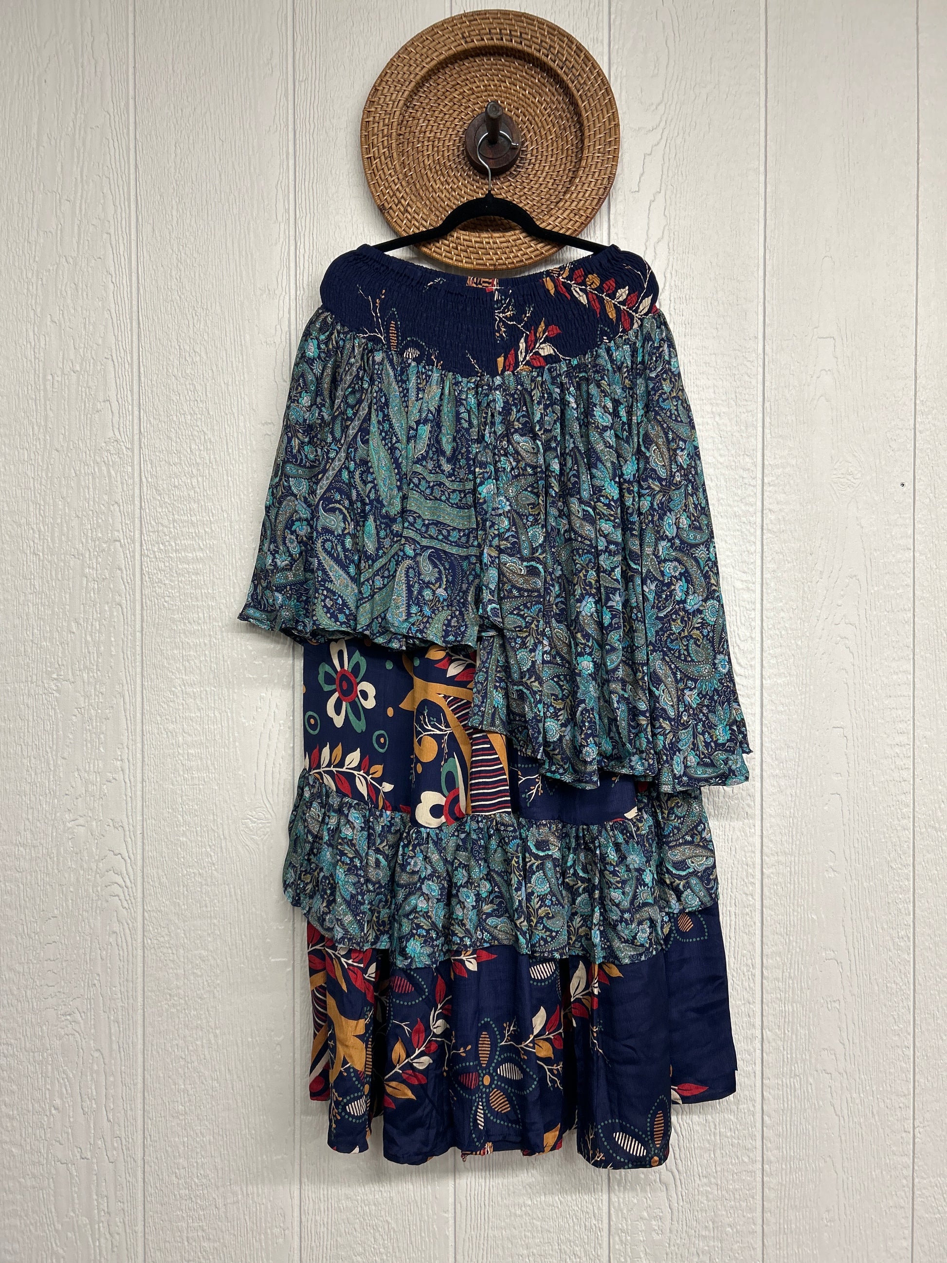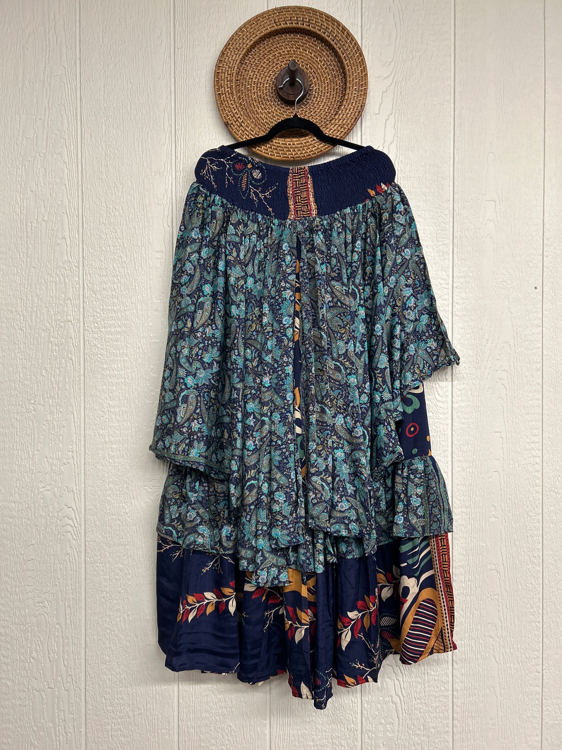 Crafted from vintage rasgulla sari these ethereal pants features stretchy waist, super wide legs, double tier hem and a skirt layer. these pants will make you want to dance! One size, recommended up to size 22/24 Crafted and sewn by families in a small village in Northern India providing work and a fair living. This product should be hand washed and line dried for longest life. For softness, fluff in the dryer on low heat after it has dried from hand washing. Disclosure: Our vintage styles have lived a full life before becoming the designs in our shop. Fabrics may have small threads or holes in the layers. Color inconsistency or small stains may be present. The saris are sewn together and extend the life of each design. Imperfections should be celebrated.