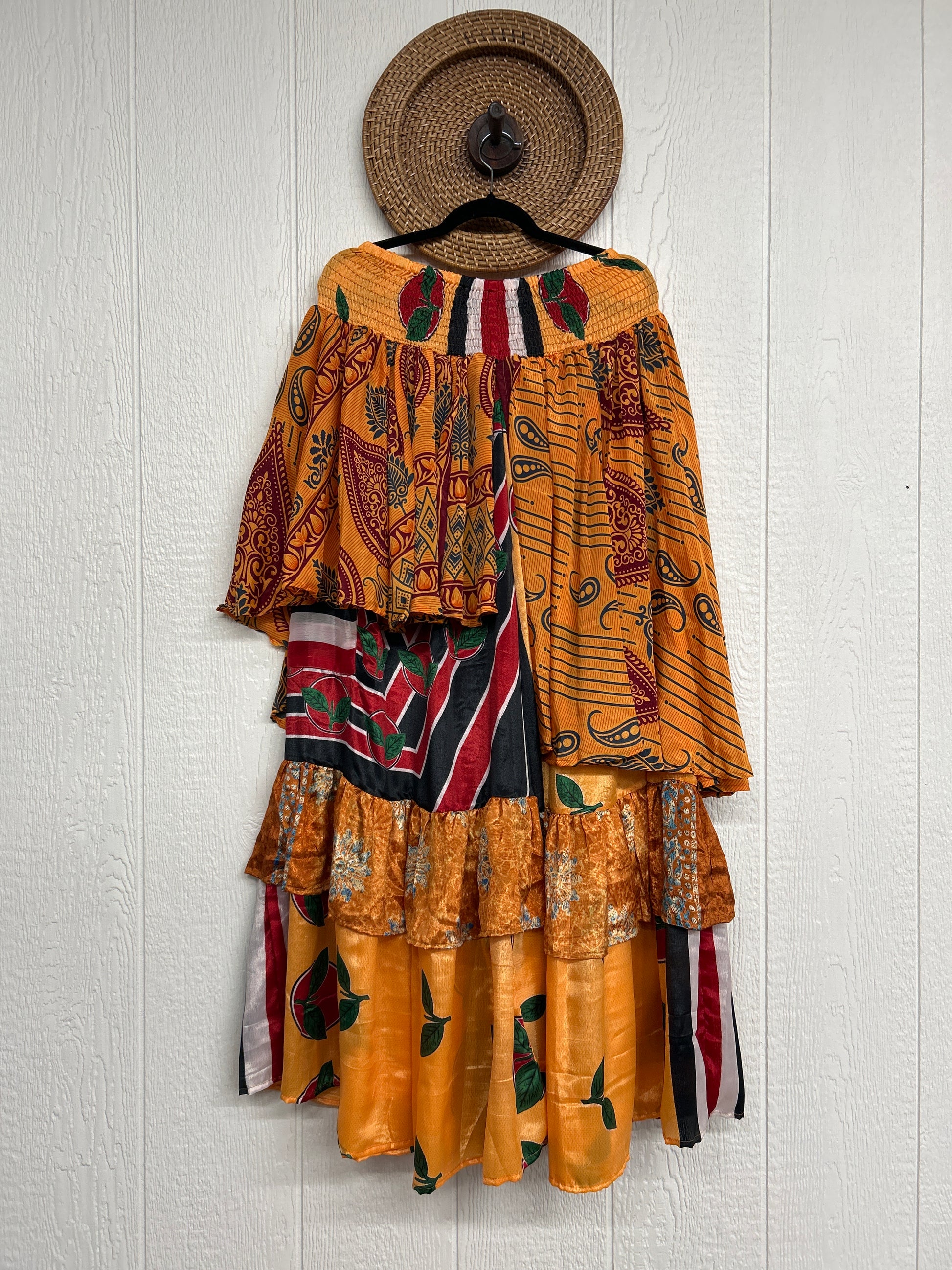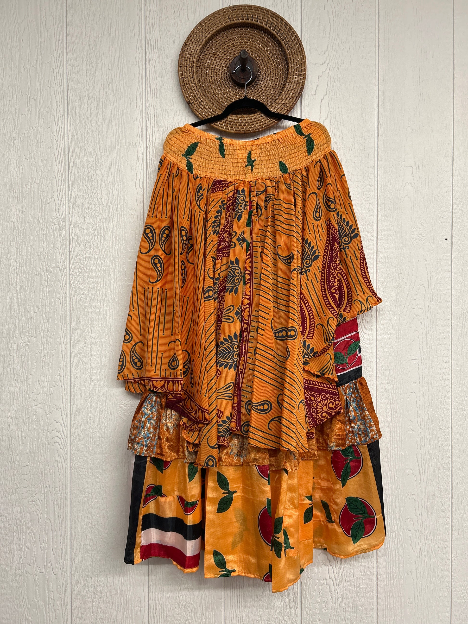 Crafted from vintage rasgulla sari these ethereal pants features stretchy waist, super wide legs, double tier hem and a skirt layer. these pants will make you want to dance! One size, recommended up to size 22/24 Crafted and sewn by families in a small village in Northern India providing work and a fair living. This product should be hand washed and line dried for longest life. For softness, fluff in the dryer on low heat after it has dried from hand washing. Disclosure: Our vintage styles have lived a full life before becoming the designs in our shop. Fabrics may have small threads or holes in the layers. Color inconsistency or small stains may be present. The saris are sewn together and extend the life of each design. Imperfections should be celebrated.