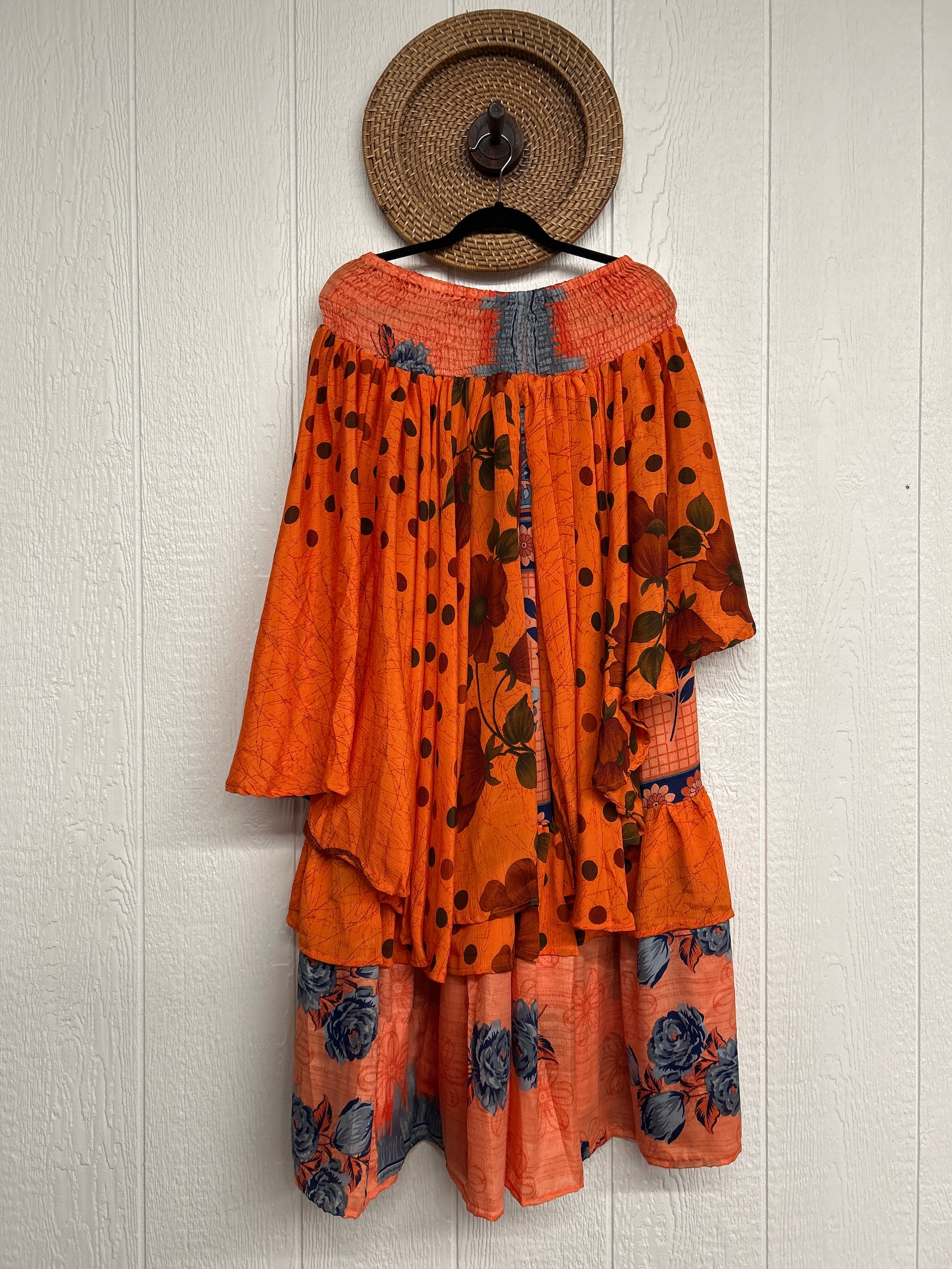 Crafted from vintage rasgulla sari these ethereal pants features stretchy waist, super wide legs, double tier hem and a skirt layer. these pants will make you want to dance! One size, recommended up to size 22/24 Crafted and sewn by families in a small village in Northern India providing work and a fair living. This product should be hand washed and line dried for longest life. For softness, fluff in the dryer on low heat after it has dried from hand washing. Disclosure: Our vintage styles have lived a full life before becoming the designs in our shop. Fabrics may have small threads or holes in the layers. Color inconsistency or small stains may be present. The saris are sewn together and extend the life of each design. Imperfections should be celebrated.
