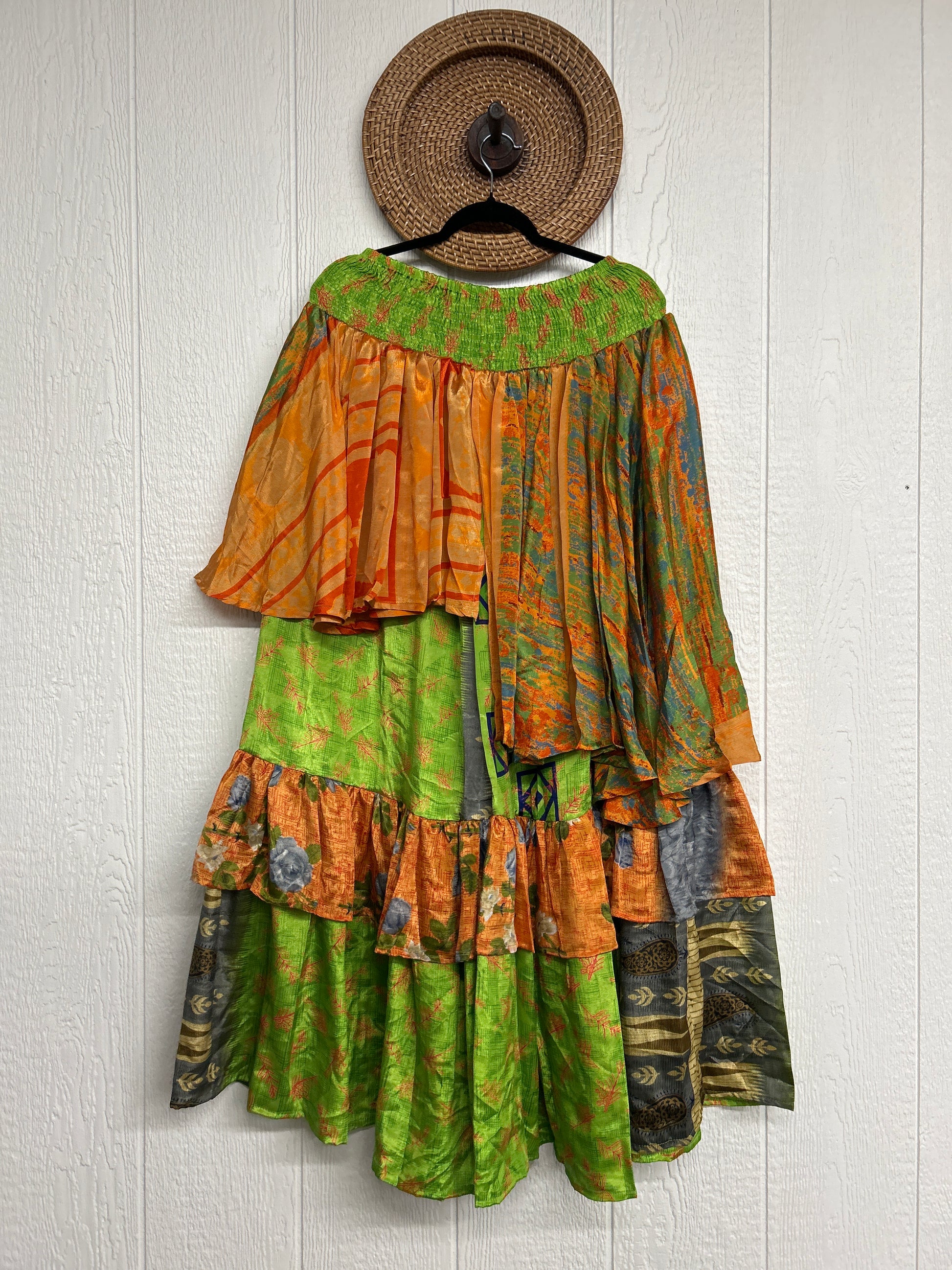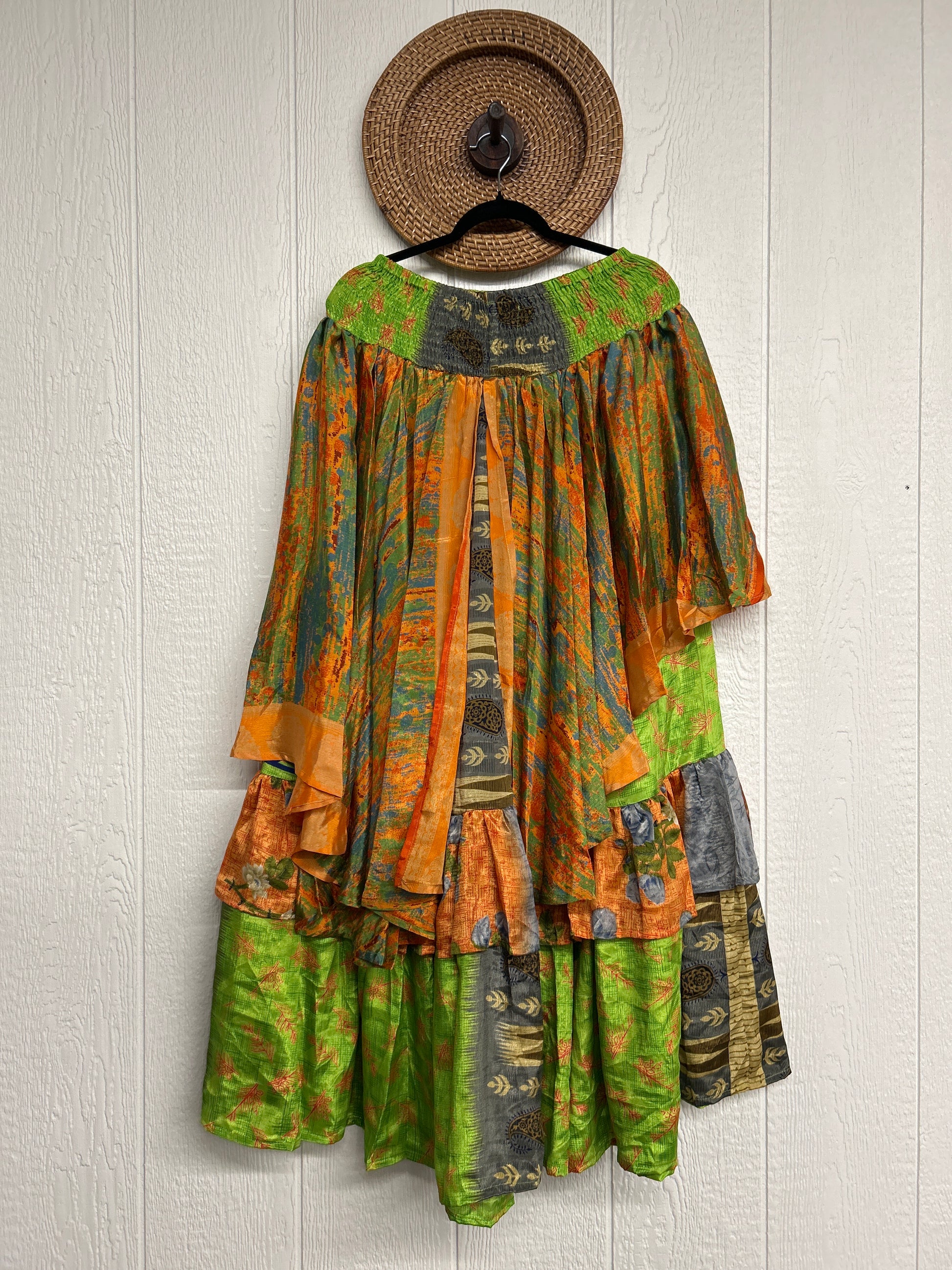 Crafted from vintage rasgulla sari these ethereal pants features stretchy waist, super wide legs, double tier hem and a skirt layer. these pants will make you want to dance! One size, recommended up to size 22/24 Crafted and sewn by families in a small village in Northern India providing work and a fair living. This product should be hand washed and line dried for longest life. For softness, fluff in the dryer on low heat after it has dried from hand washing. Disclosure: Our vintage styles have lived a full life before becoming the designs in our shop. Fabrics may have small threads or holes in the layers. Color inconsistency or small stains may be present. The saris are sewn together and extend the life of each design. Imperfections should be celebrated.