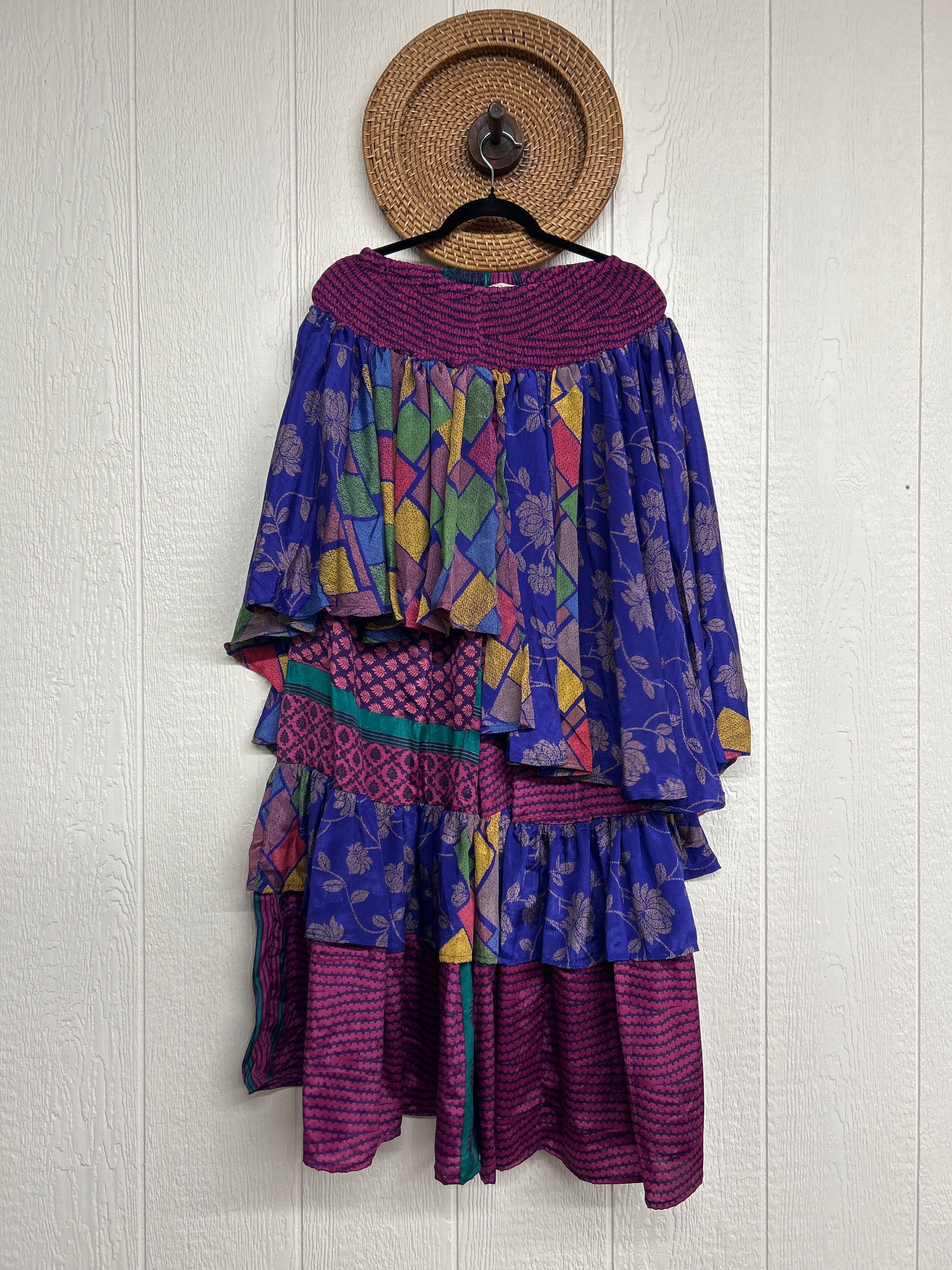 Crafted from vintage rasgulla sari these ethereal pants features stretchy waist, super wide legs, double tier hem and a skirt layer. these pants will make you want to dance! One size, recommended up to size 22/24 Crafted and sewn by families in a small village in Northern India providing work and a fair living. This product should be hand washed and line dried for longest life. For softness, fluff in the dryer on low heat after it has dried from hand washing. Disclosure: Our vintage styles have lived a full life before becoming the designs in our shop. Fabrics may have small threads or holes in the layers. Color inconsistency or small stains may be present. The saris are sewn together and extend the life of each design. Imperfections should be celebrated.