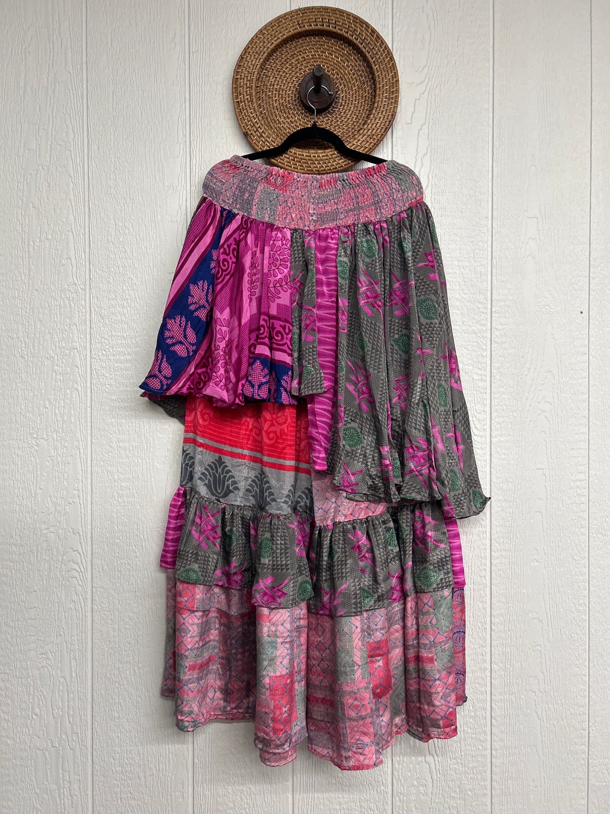 Crafted from vintage rasgulla sari these ethereal pants features stretchy waist, super wide legs, double tier hem and a skirt layer. these pants will make you want to dance! One size, recommended up to size 22/24 Crafted and sewn by families in a small village in Northern India providing work and a fair living. This product should be hand washed and line dried for longest life. For softness, fluff in the dryer on low heat after it has dried from hand washing. Disclosure: Our vintage styles have lived a full life before becoming the designs in our shop. Fabrics may have small threads or holes in the layers. Color inconsistency or small stains may be present. The saris are sewn together and extend the life of each design. Imperfections should be celebrated.