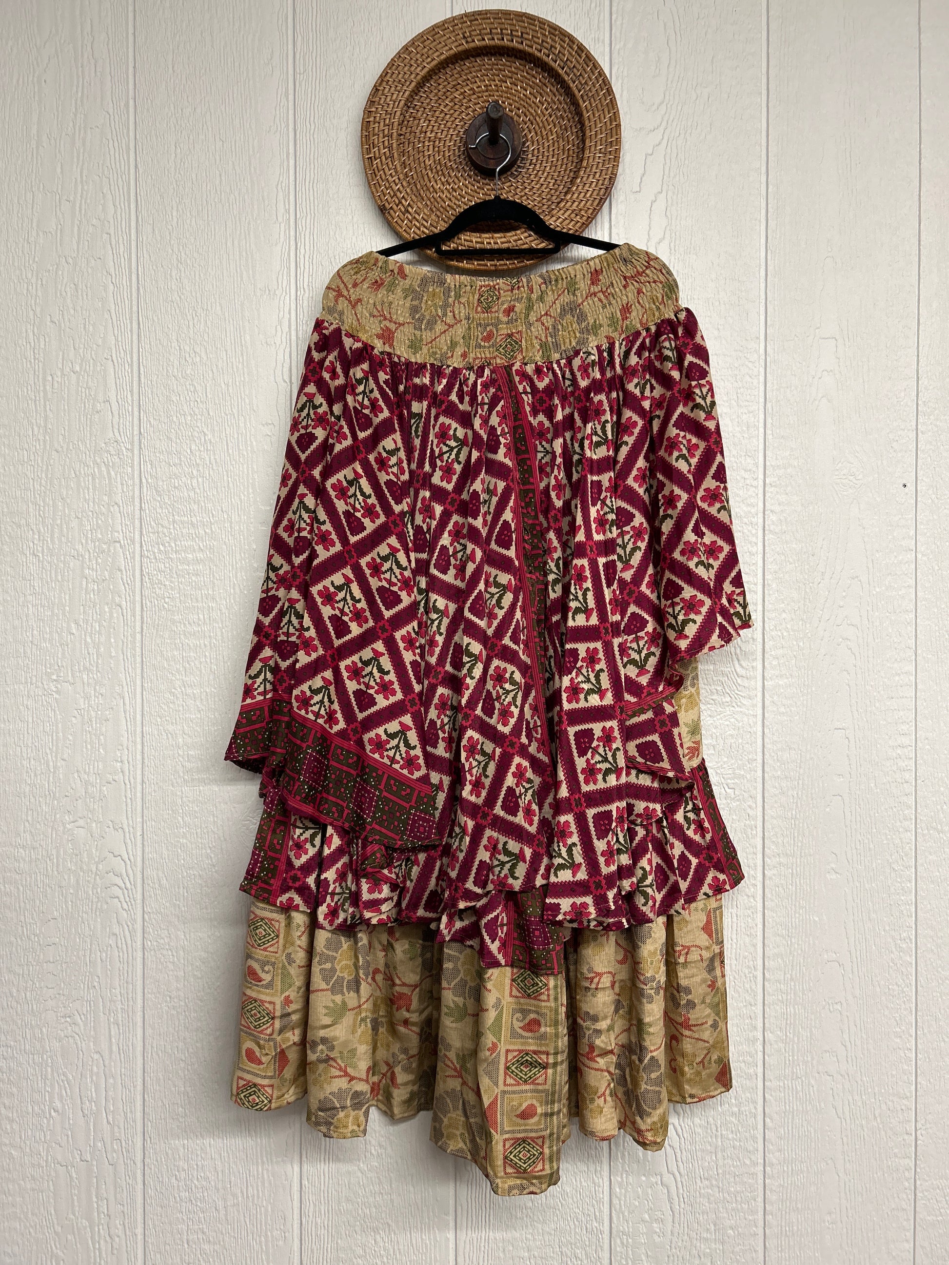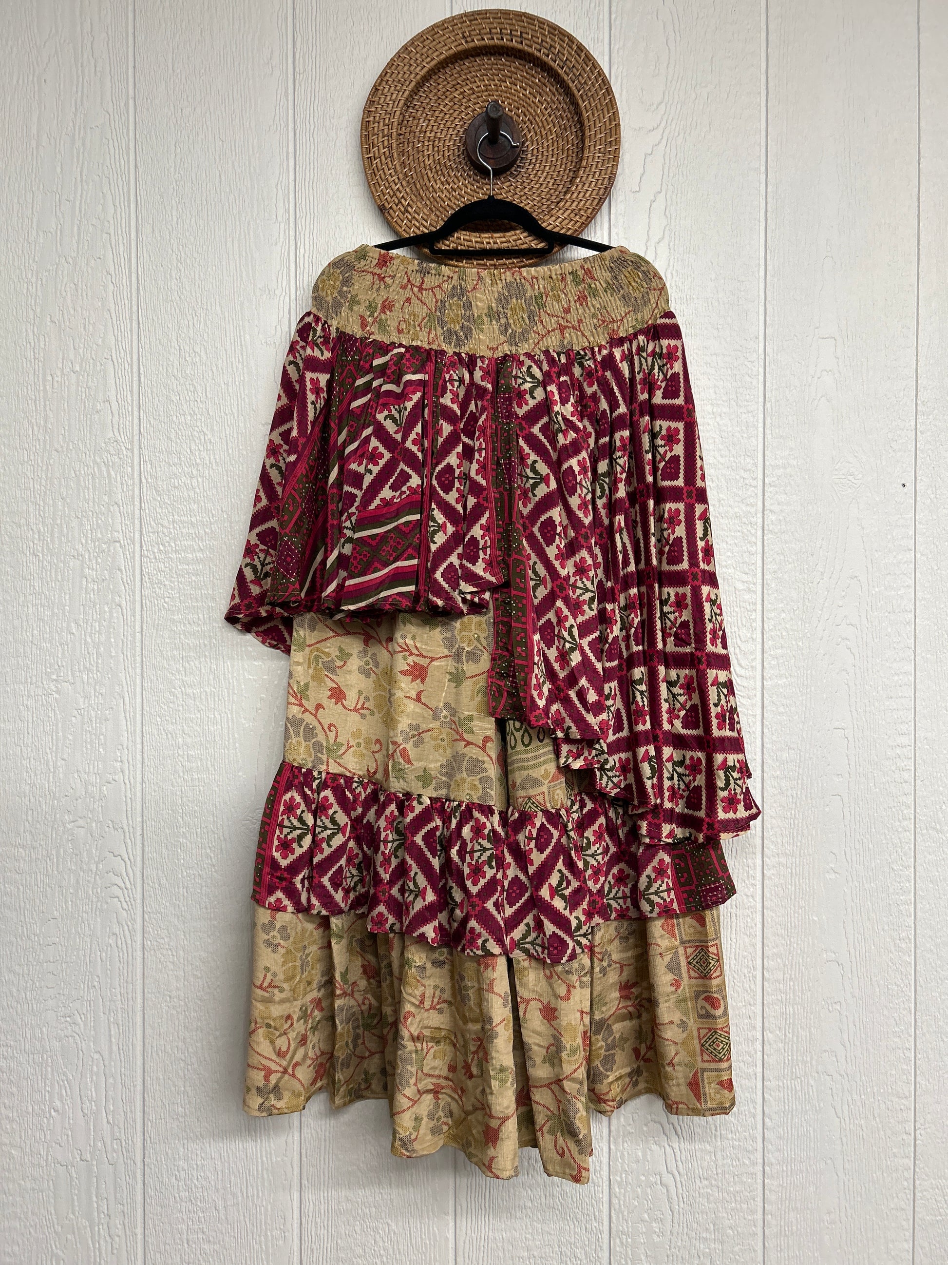Crafted from vintage rasgulla sari these ethereal pants features stretchy waist, super wide legs, double tier hem and a skirt layer. these pants will make you want to dance! One size, recommended up to size 22/24 Crafted and sewn by families in a small village in Northern India providing work and a fair living. This product should be hand washed and line dried for longest life. For softness, fluff in the dryer on low heat after it has dried from hand washing. Disclosure: Our vintage styles have lived a full life before becoming the designs in our shop. Fabrics may have small threads or holes in the layers. Color inconsistency or small stains may be present. The saris are sewn together and extend the life of each design. Imperfections should be celebrated.