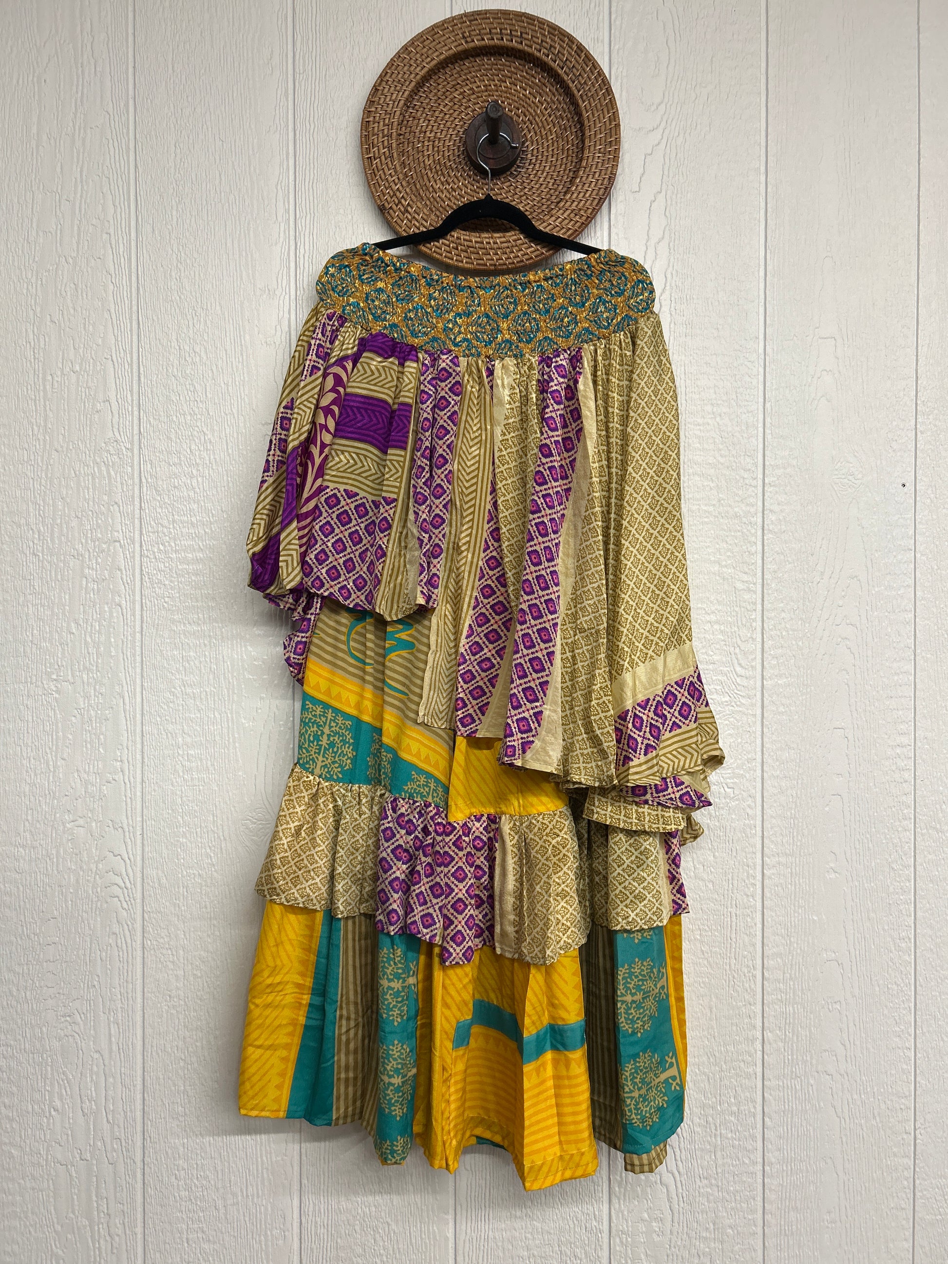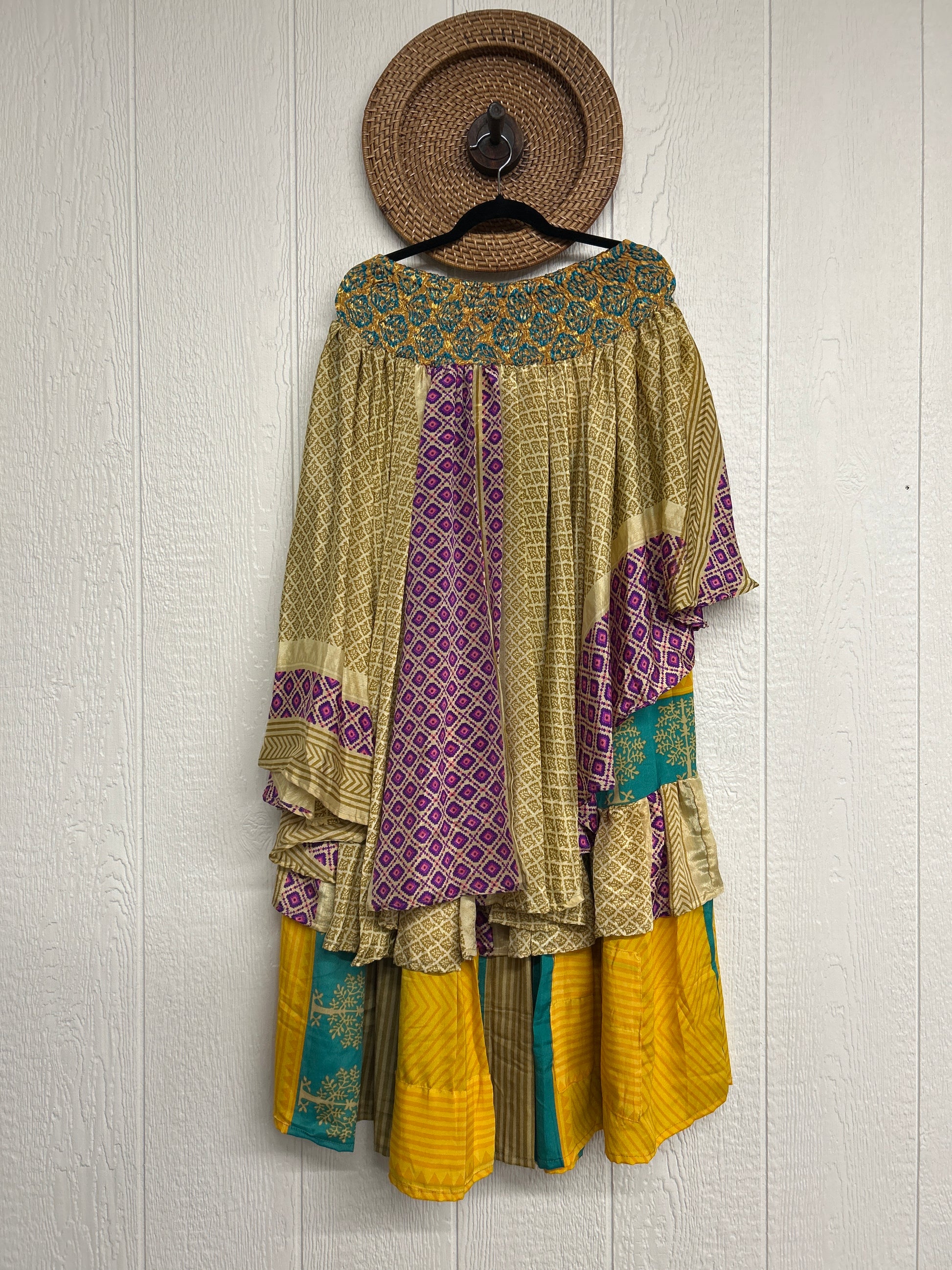 Crafted from vintage rasgulla sari these ethereal pants features stretchy waist, super wide legs, double tier hem and a skirt layer. these pants will make you want to dance! One size, recommended up to size 22/24 Crafted and sewn by families in a small village in Northern India providing work and a fair living. This product should be hand washed and line dried for longest life. For softness, fluff in the dryer on low heat after it has dried from hand washing. Disclosure: Our vintage styles have lived a full life before becoming the designs in our shop. Fabrics may have small threads or holes in the layers. Color inconsistency or small stains may be present. The saris are sewn together and extend the life of each design. Imperfections should be celebrated.