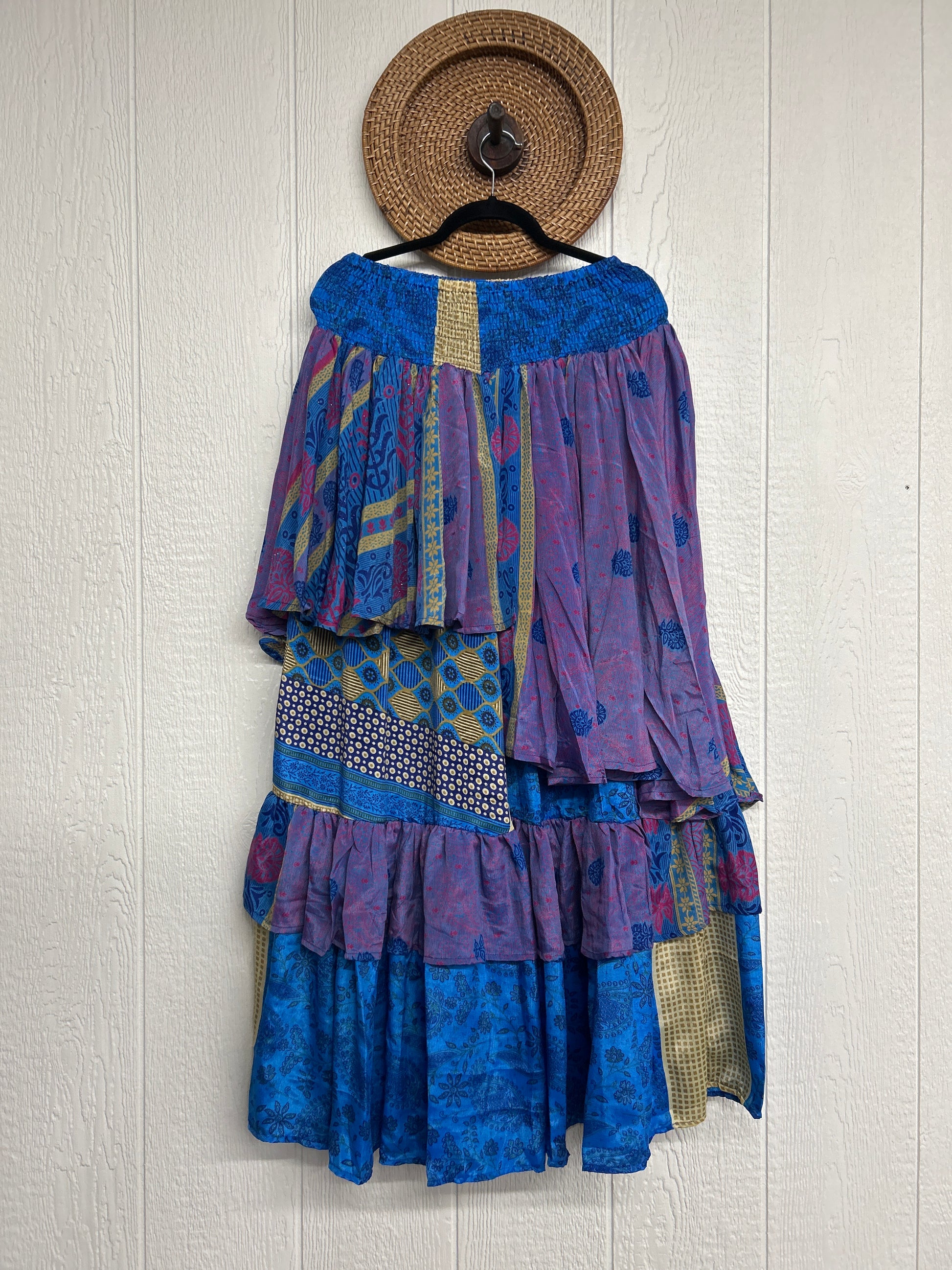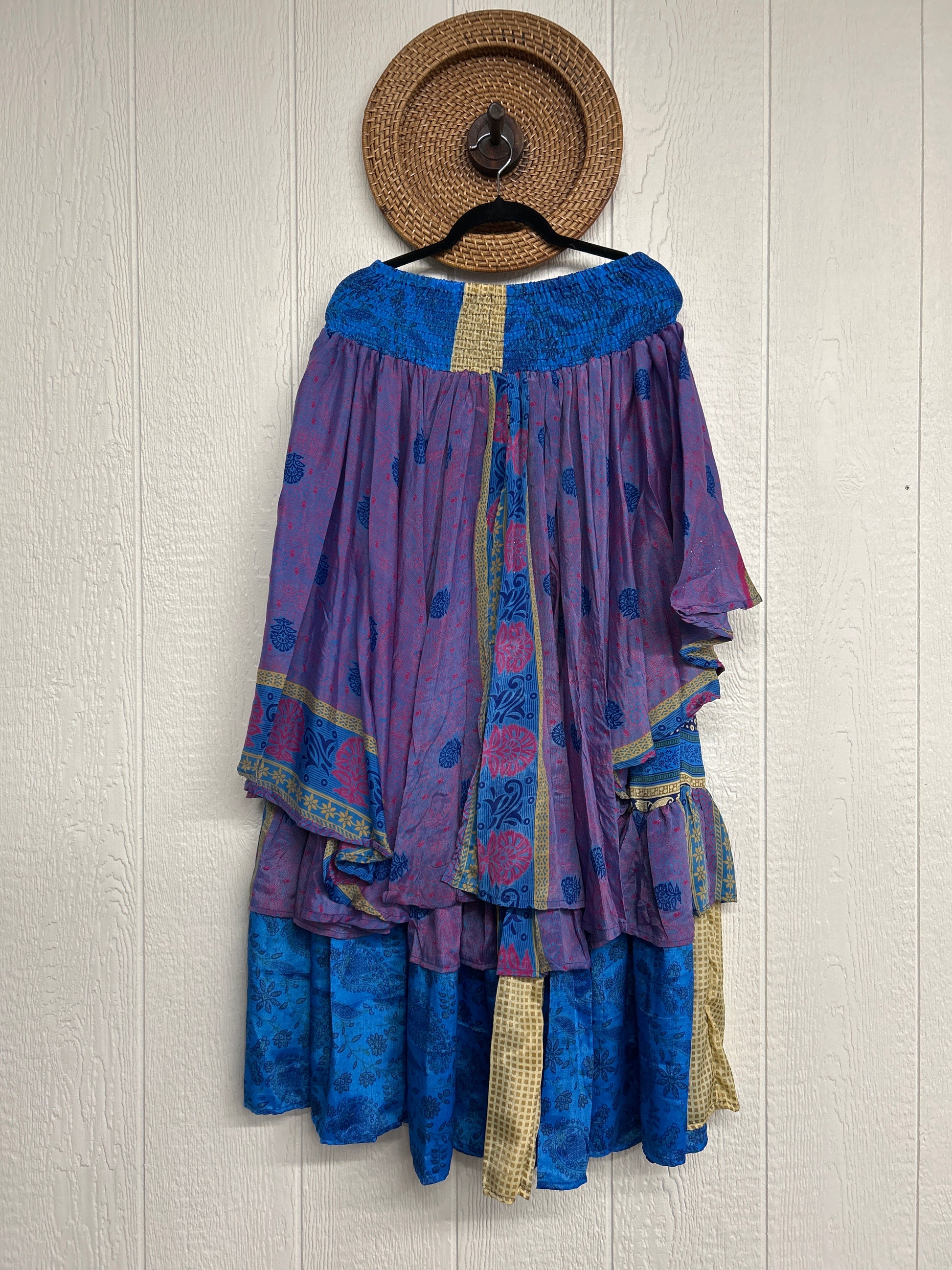 Crafted from vintage rasgulla sari these ethereal pants features stretchy waist, super wide legs, double tier hem and a skirt layer. these pants will make you want to dance! One size, recommended up to size 22/24 Crafted and sewn by families in a small village in Northern India providing work and a fair living. This product should be hand washed and line dried for longest life. For softness, fluff in the dryer on low heat after it has dried from hand washing. Disclosure: Our vintage styles have lived a full life before becoming the designs in our shop. Fabrics may have small threads or holes in the layers. Color inconsistency or small stains may be present. The saris are sewn together and extend the life of each design. Imperfections should be celebrated.
