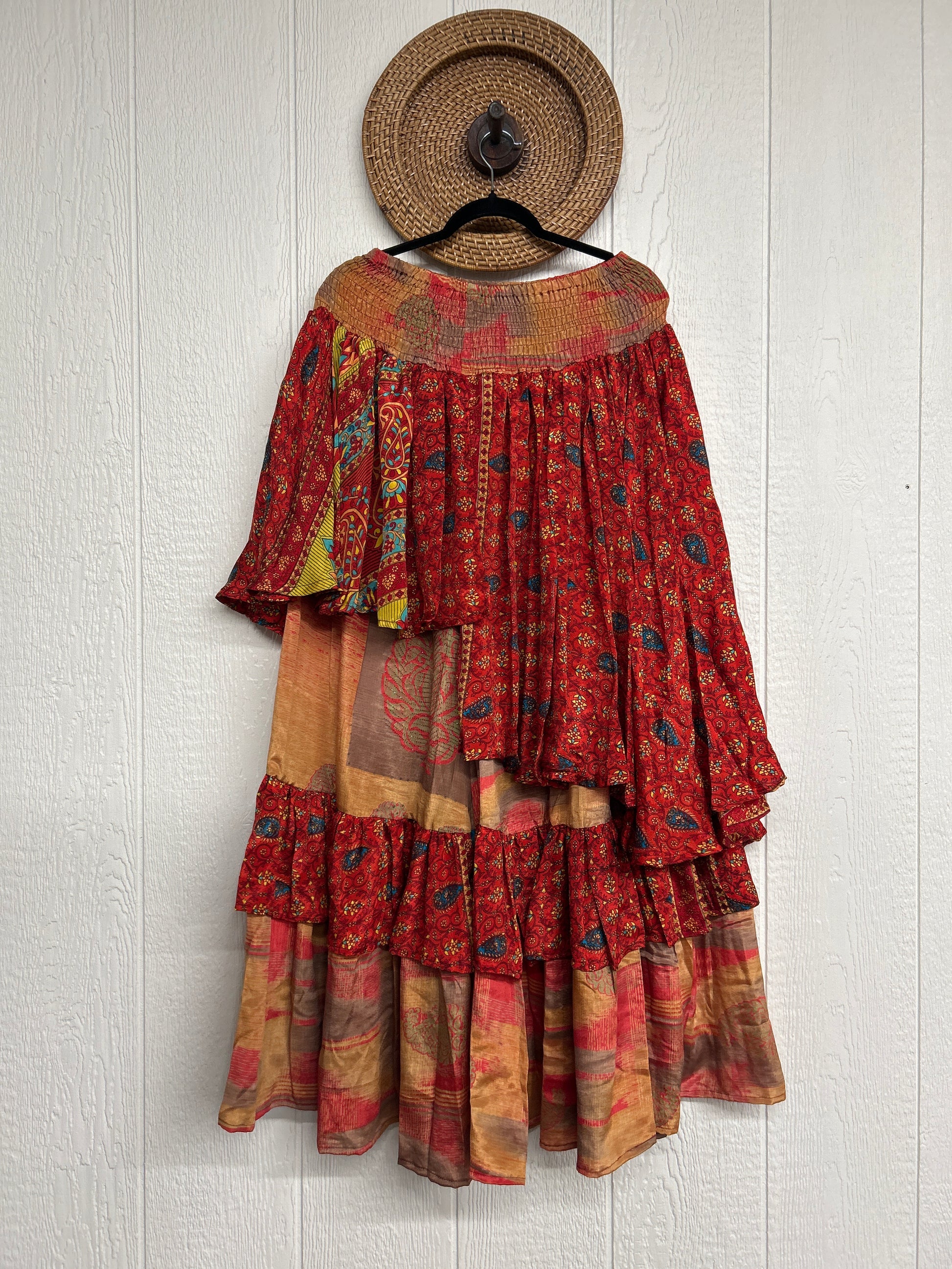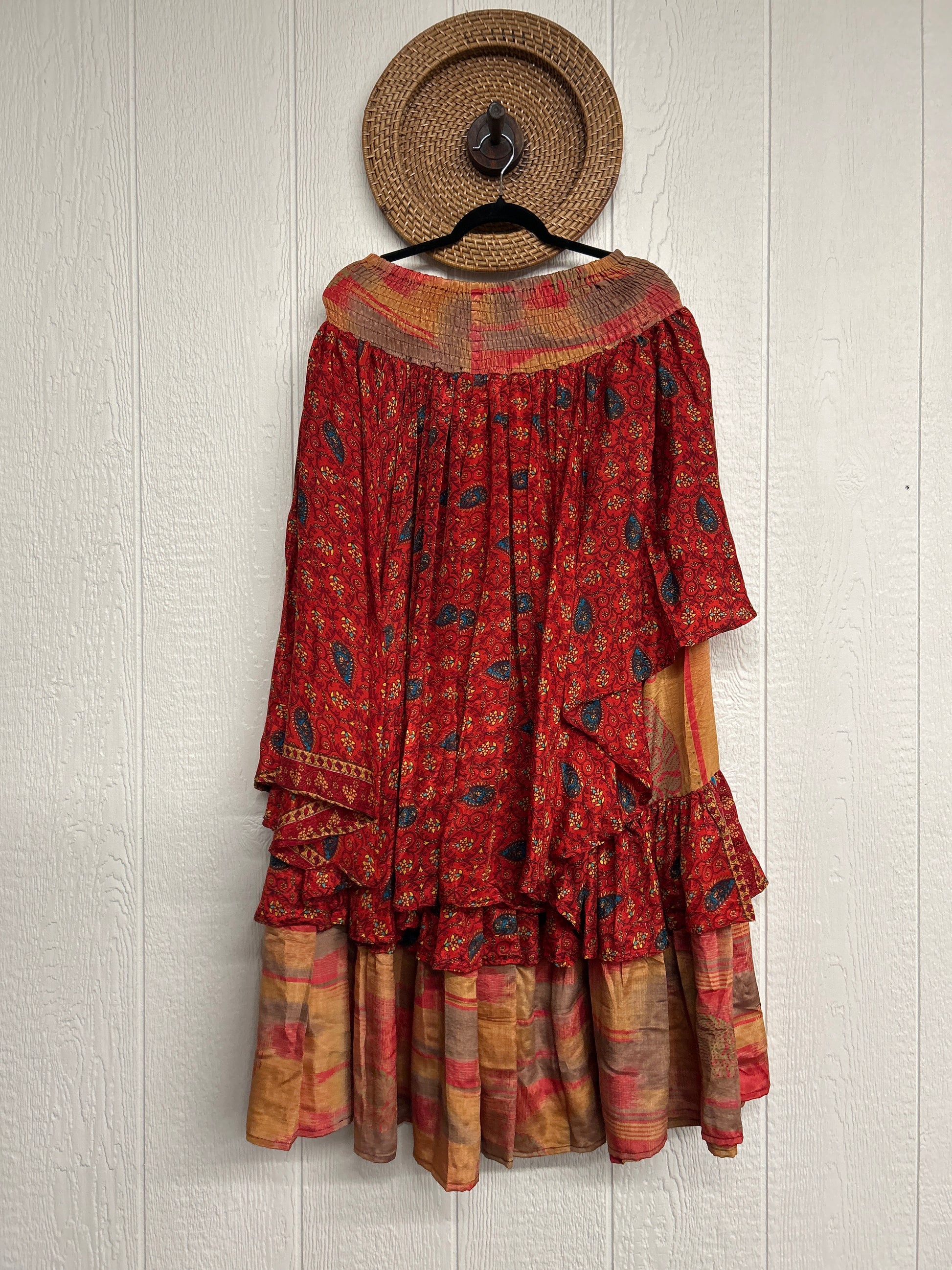Crafted from vintage rasgulla sari these ethereal pants features stretchy waist, super wide legs, double tier hem and a skirt layer. these pants will make you want to dance! One size, recommended up to size 22/24 Crafted and sewn by families in a small village in Northern India providing work and a fair living. This product should be hand washed and line dried for longest life. For softness, fluff in the dryer on low heat after it has dried from hand washing. Disclosure: Our vintage styles have lived a full life before becoming the designs in our shop. Fabrics may have small threads or holes in the layers. Color inconsistency or small stains may be present. The saris are sewn together and extend the life of each design. Imperfections should be celebrated.