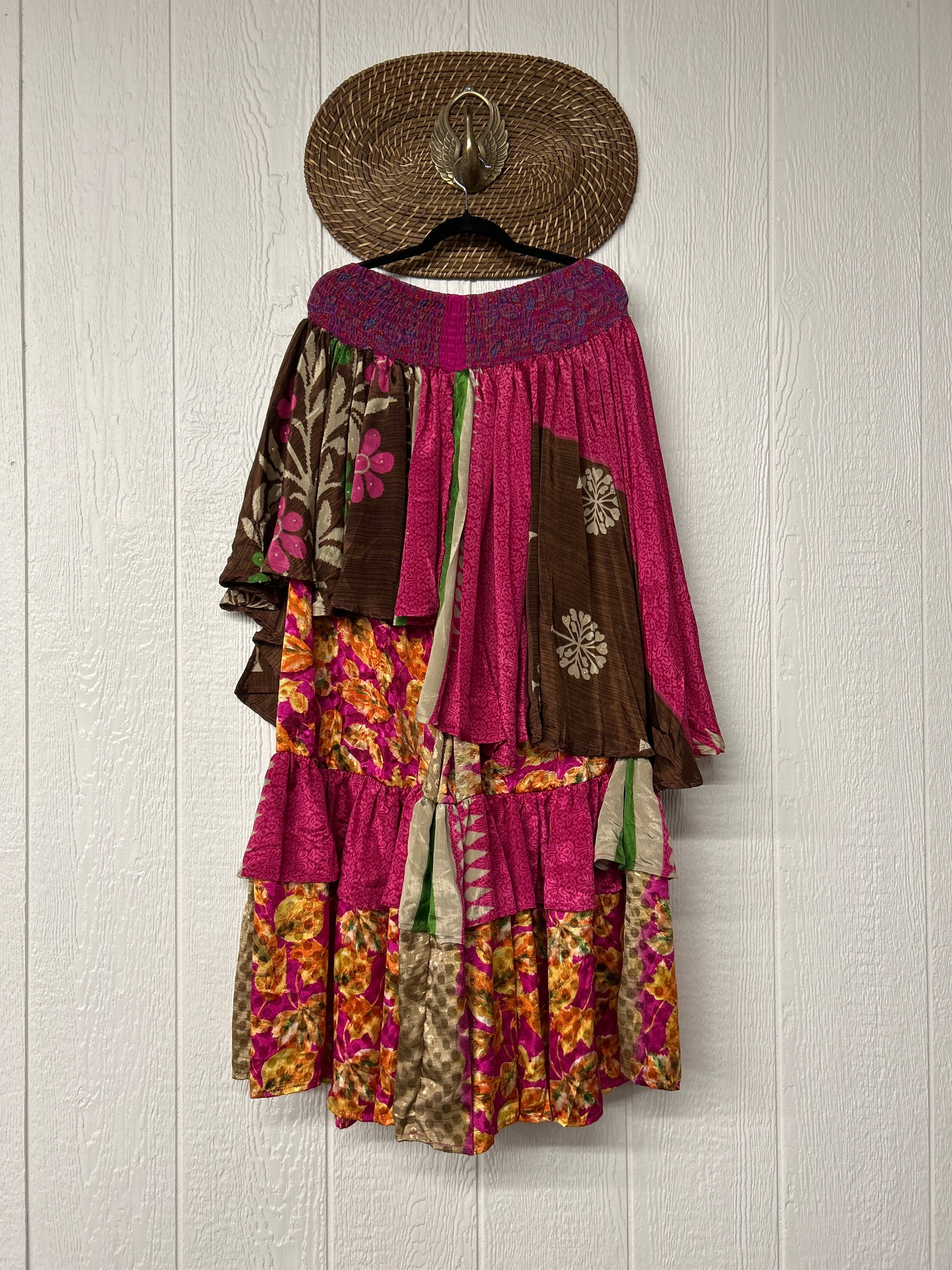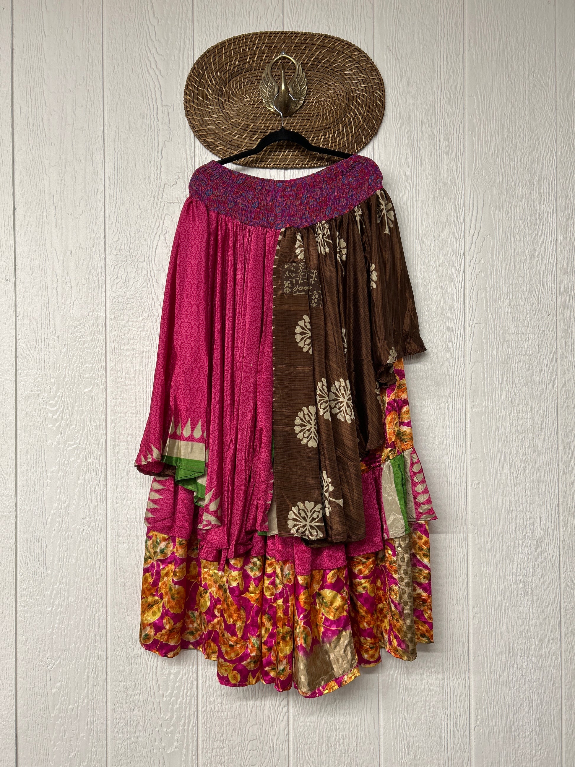 Crafted from vintage rasgulla sari these ethereal pants features stretchy waist, super wide legs, double tier hem and a skirt layer. these pants will make you want to dance! One size, recommended up to size 22/24 Crafted and sewn by families in a small village in Northern India providing work and a fair living. This product should be hand washed and line dried for longest life. For softness, fluff in the dryer on low heat after it has dried from hand washing. Disclosure: Our vintage styles have lived a full life before becoming the designs in our shop. Fabrics may have small threads or holes in the layers. Color inconsistency or small stains may be present. The saris are sewn together and extend the life of each design. Imperfections should be celebrated.
