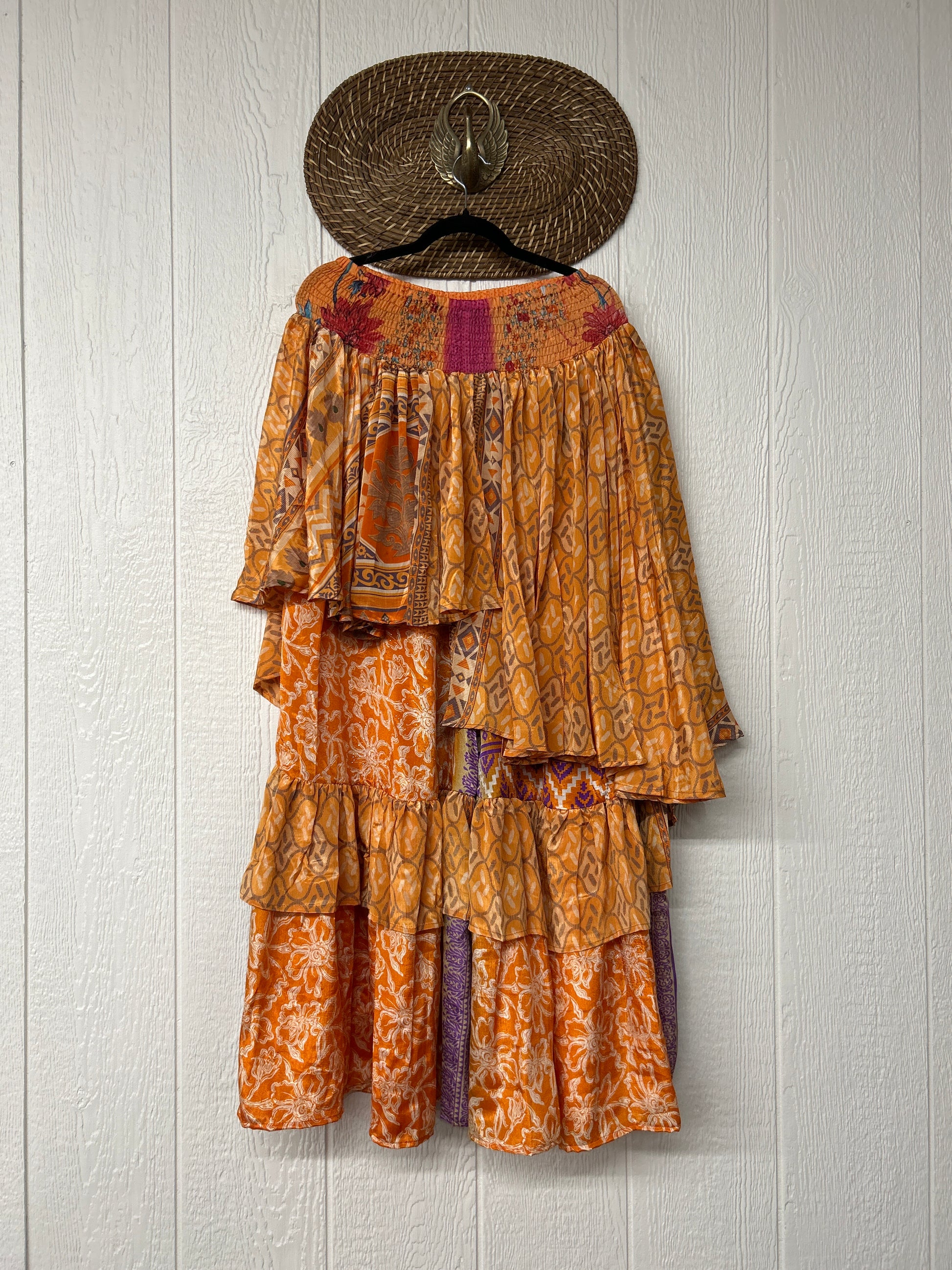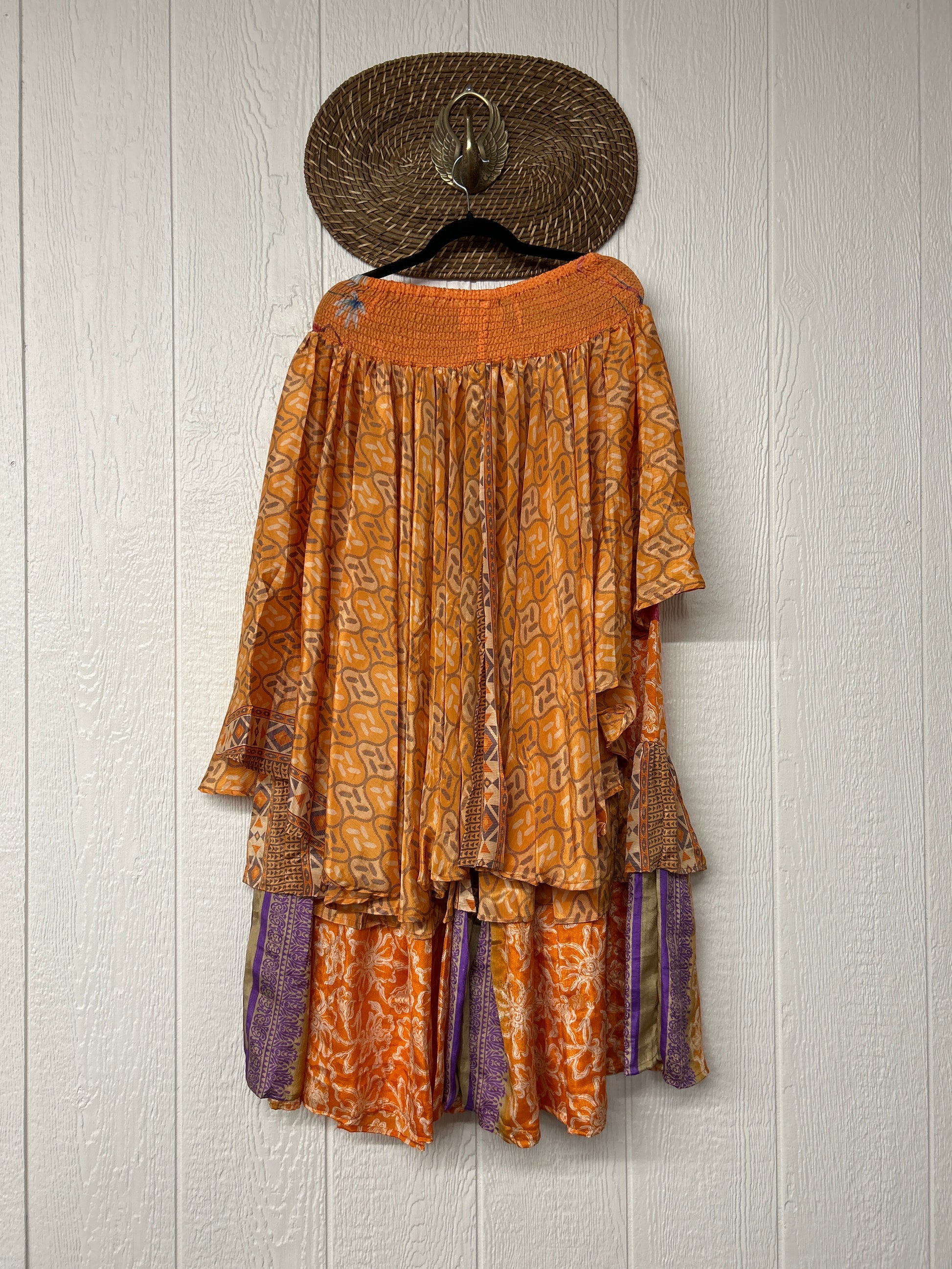 Crafted from vintage rasgulla sari these ethereal pants features stretchy waist, super wide legs, double tier hem and a skirt layer. these pants will make you want to dance! One size, recommended up to size 22/24 Crafted and sewn by families in a small village in Northern India providing work and a fair living. This product should be hand washed and line dried for longest life. For softness, fluff in the dryer on low heat after it has dried from hand washing. Disclosure: Our vintage styles have lived a full life before becoming the designs in our shop. Fabrics may have small threads or holes in the layers. Color inconsistency or small stains may be present. The saris are sewn together and extend the life of each design. Imperfections should be celebrated.