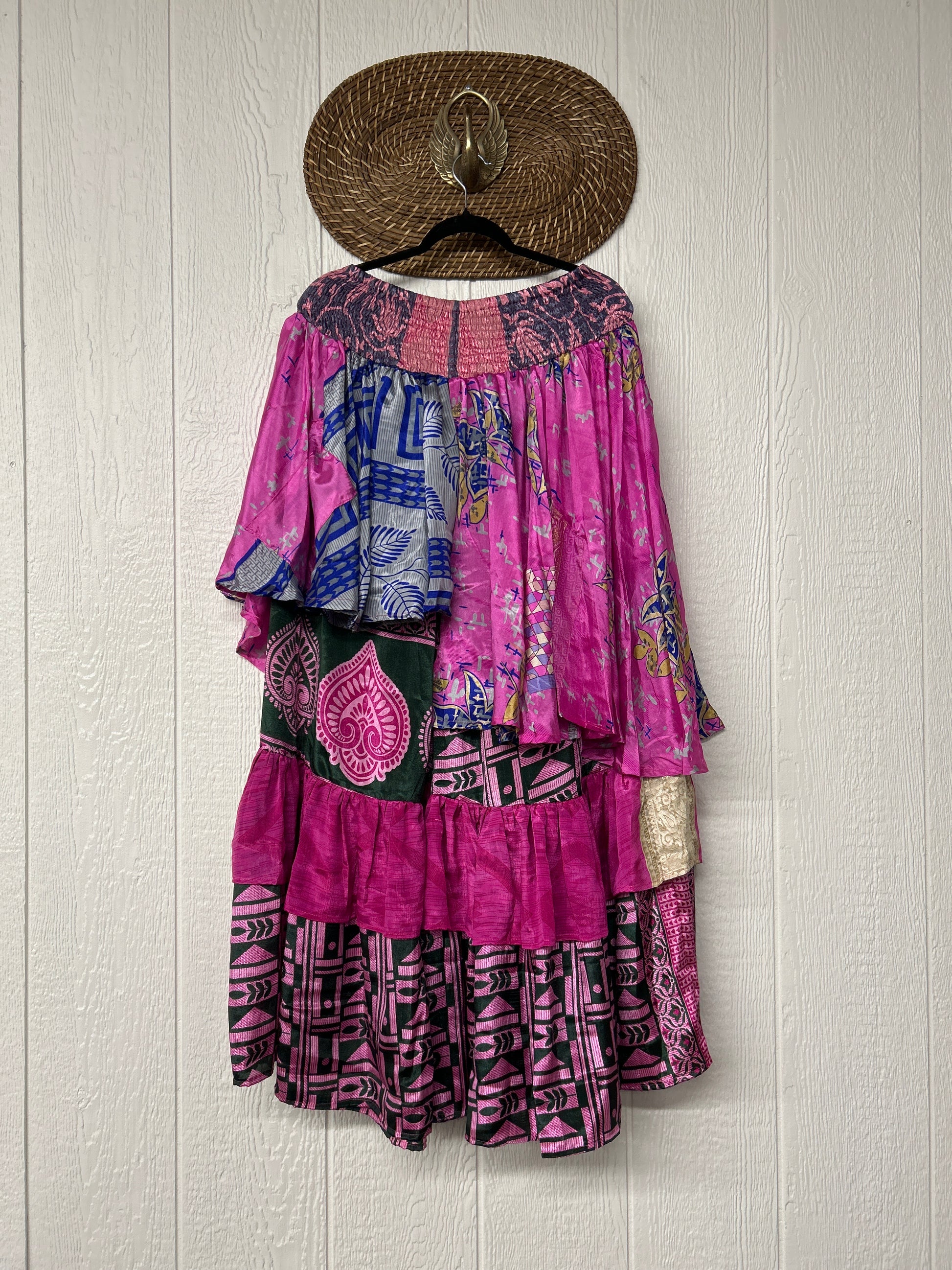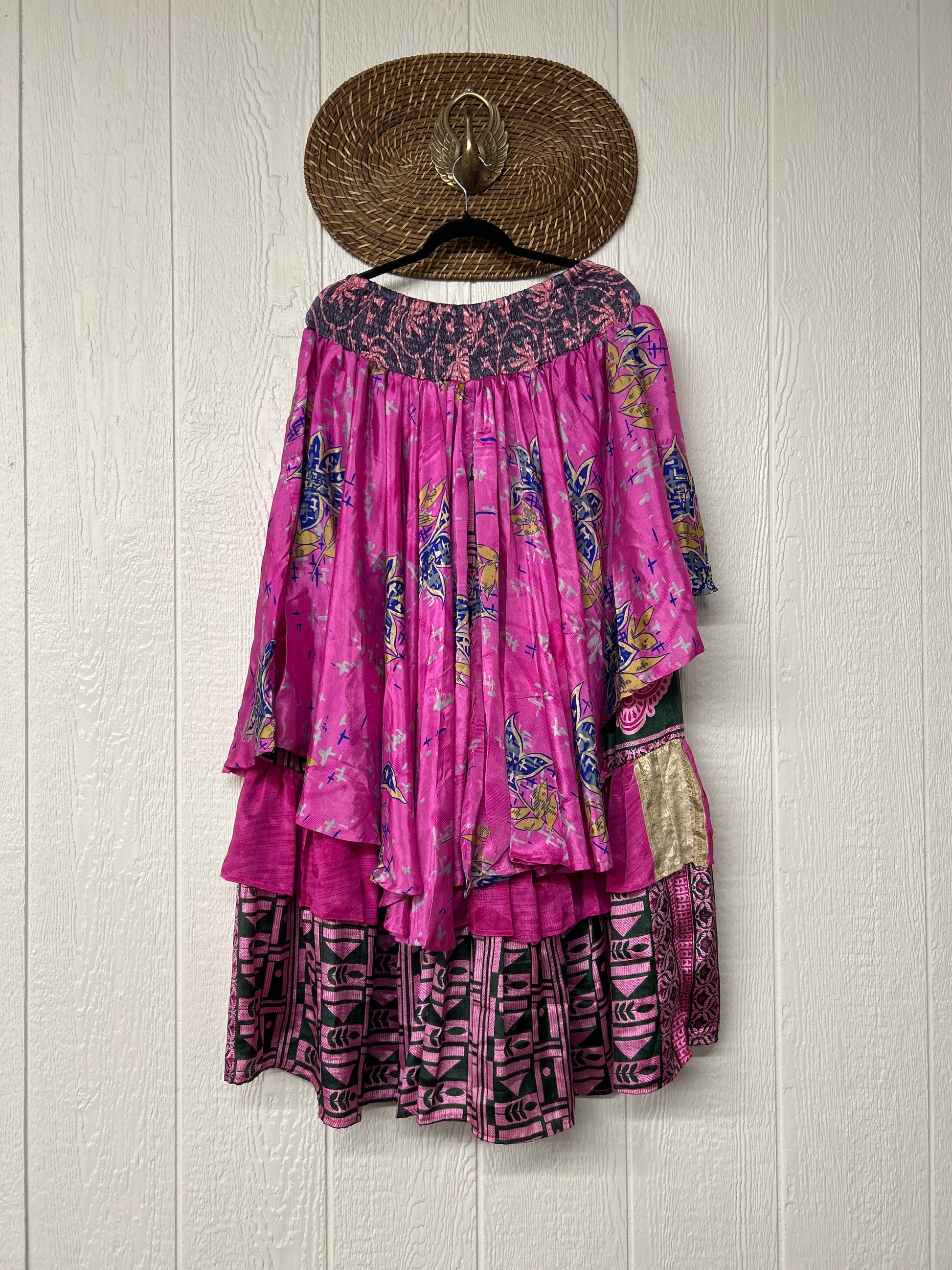 Crafted from vintage rasgulla sari these ethereal pants features stretchy waist, super wide legs, double tier hem and a skirt layer. these pants will make you want to dance! One size, recommended up to size 22/24 Crafted and sewn by families in a small village in Northern India providing work and a fair living. This product should be hand washed and line dried for longest life. For softness, fluff in the dryer on low heat after it has dried from hand washing. Disclosure: Our vintage styles have lived a full life before becoming the designs in our shop. Fabrics may have small threads or holes in the layers. Color inconsistency or small stains may be present. The saris are sewn together and extend the life of each design. Imperfections should be celebrated.